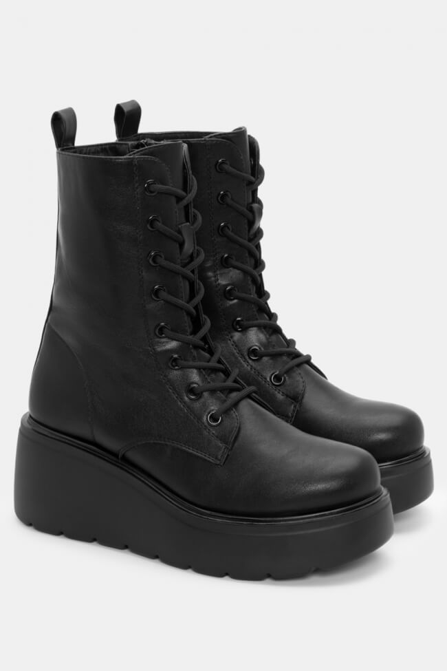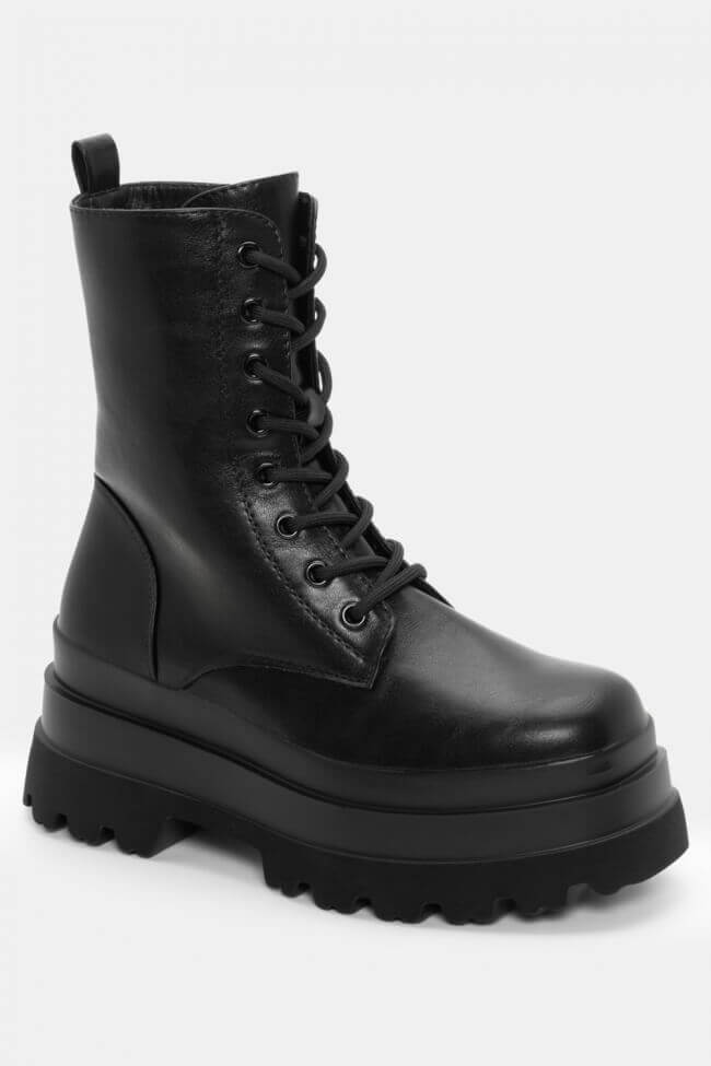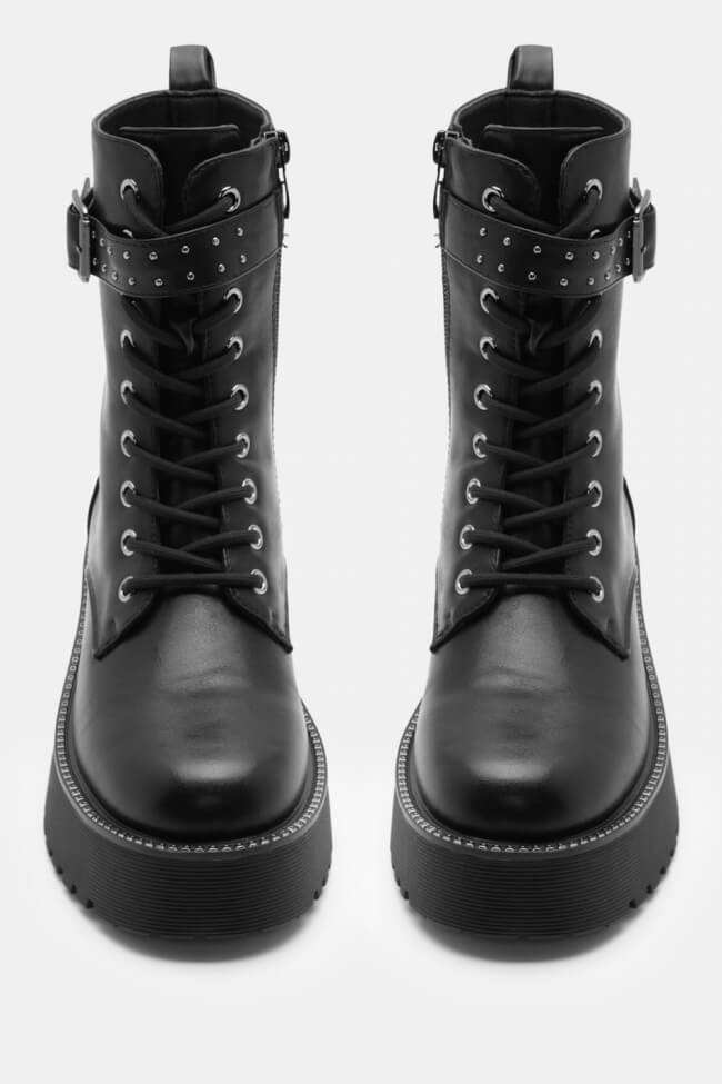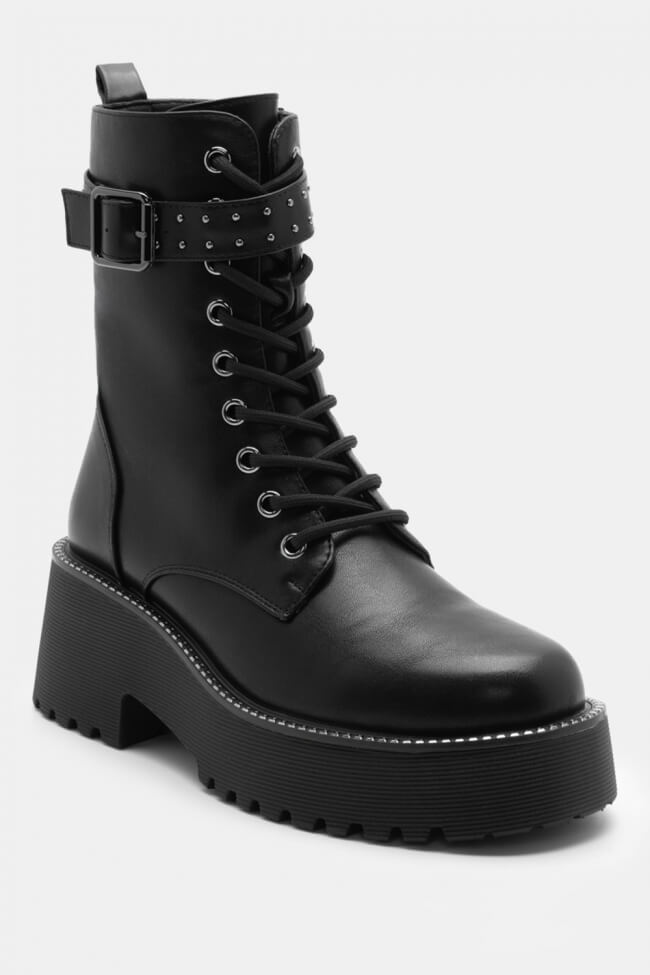 Boots cu talpă dublă cu șireturi