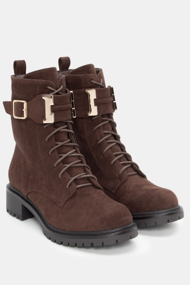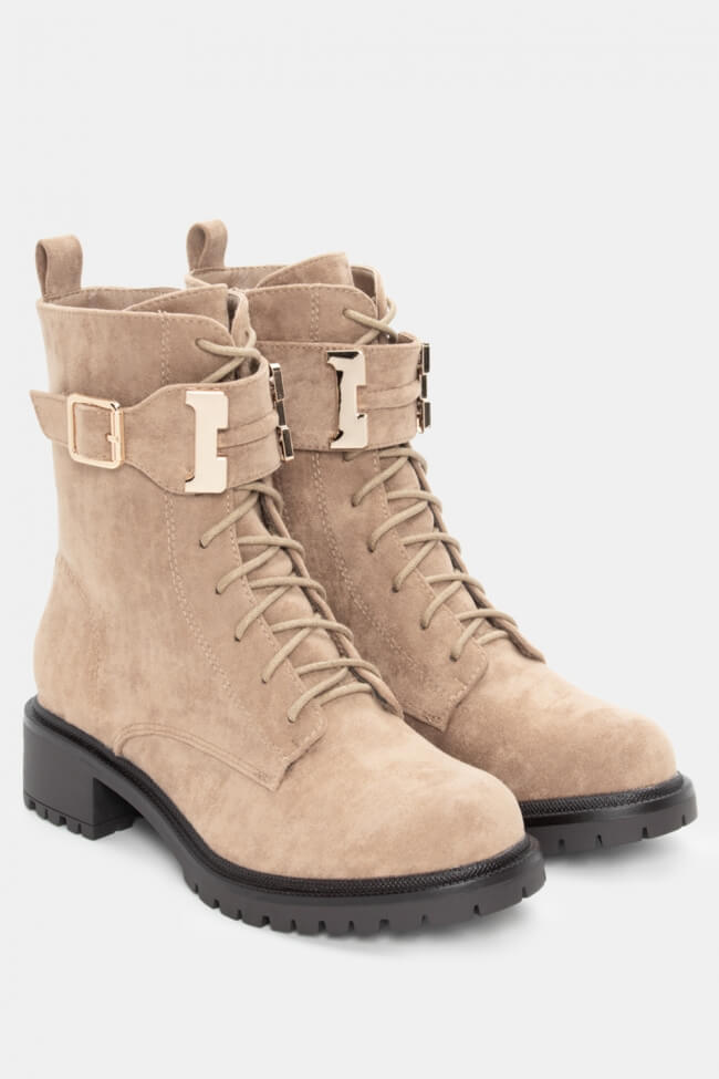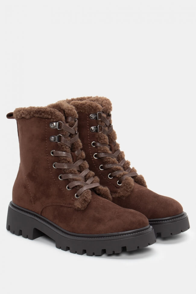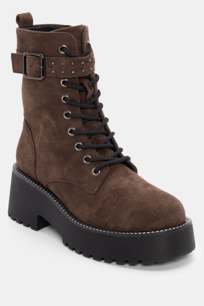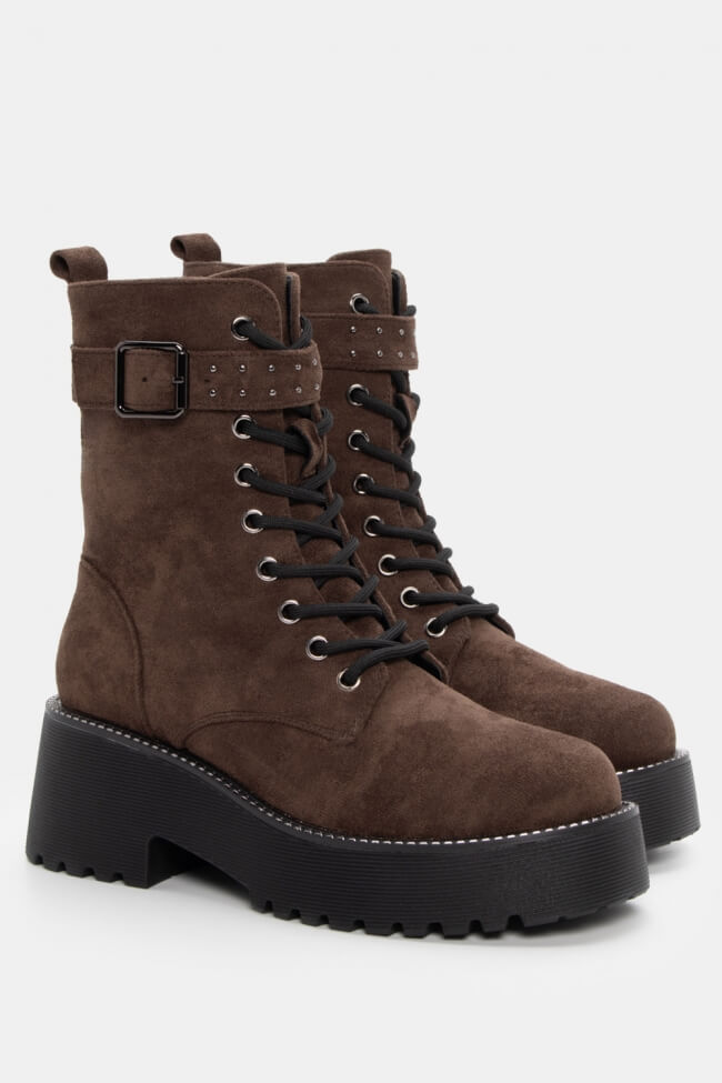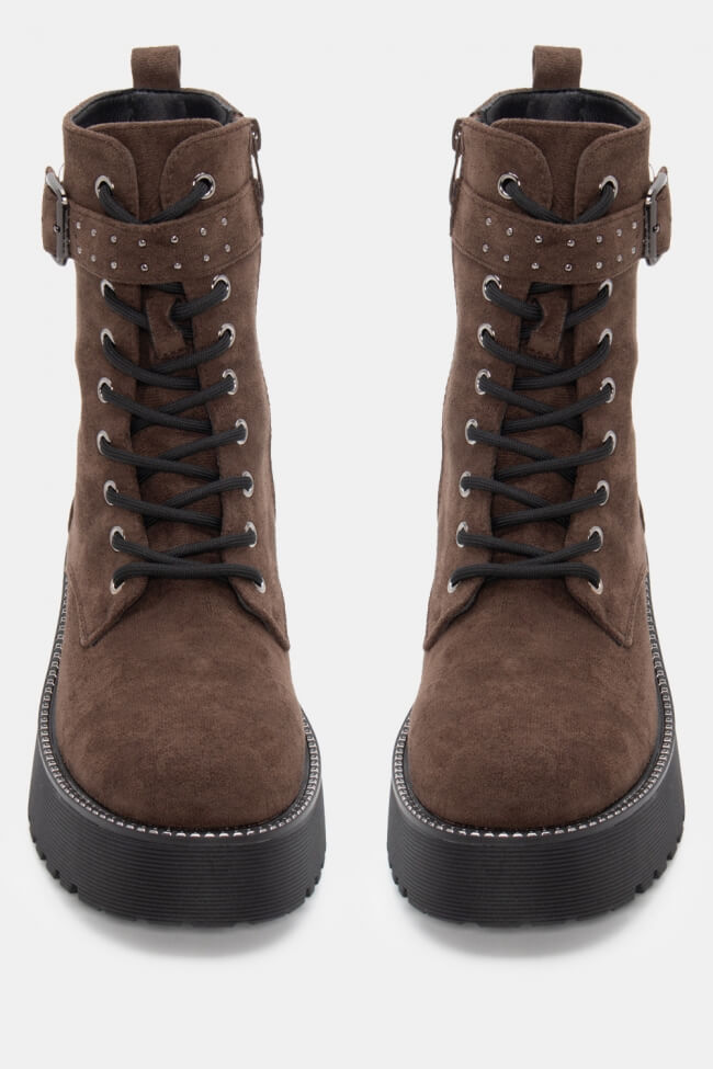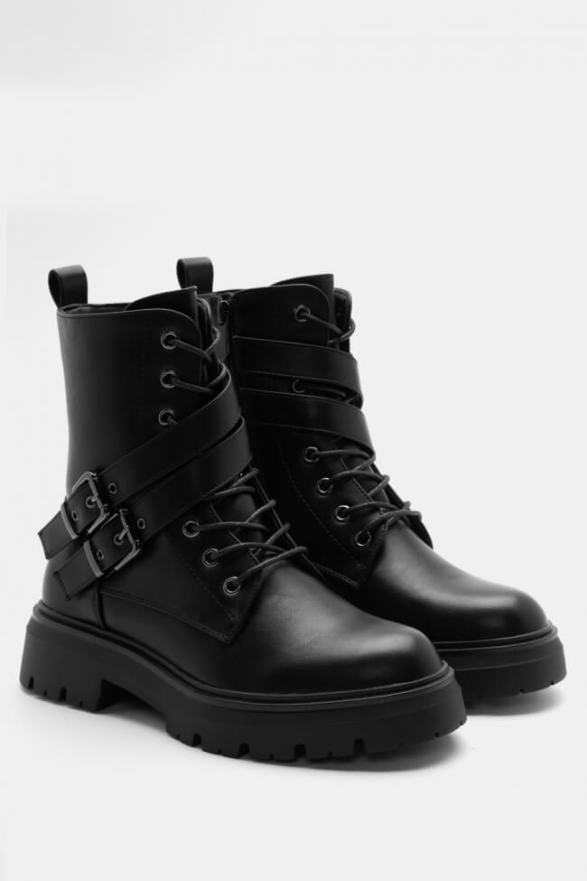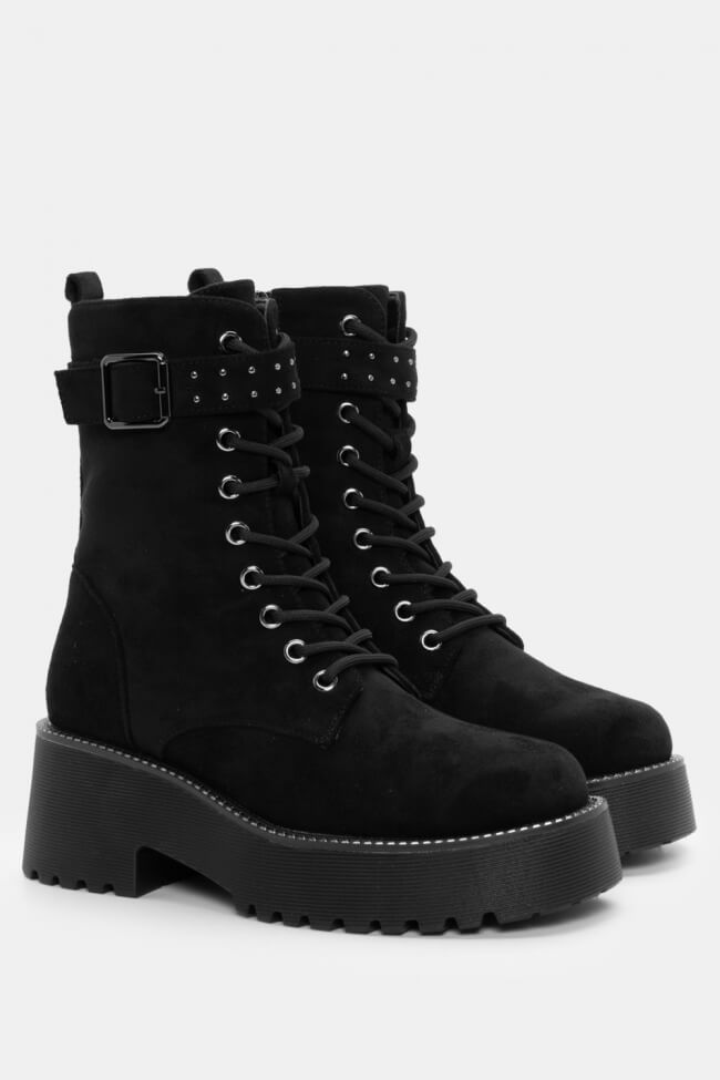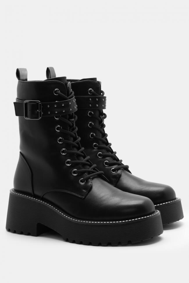 Botine cu talpă dublă cu șireturi