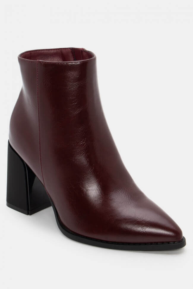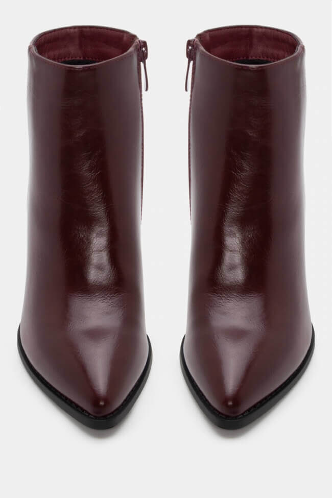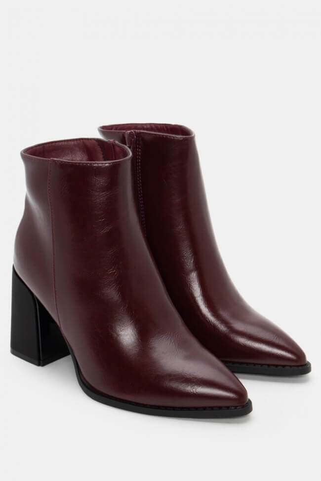Dominant colors and textures: Black and burgundy are classic choices for every occasion. For something different, see booties in warm earthy shades such as brown or beige suede or go for shiny textures like patent leather for more statement appearances.