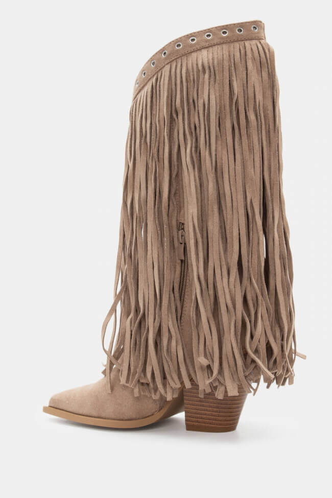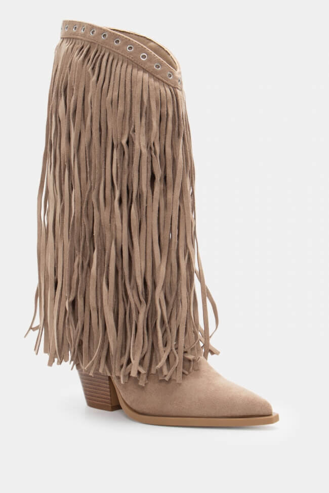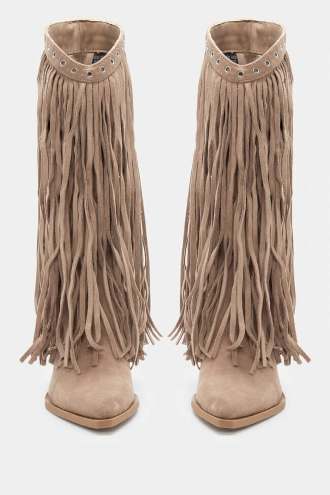 Μπότες Cowboy με Εφέ Αναδιπλούμενης Φάσας & Κρόσσια
