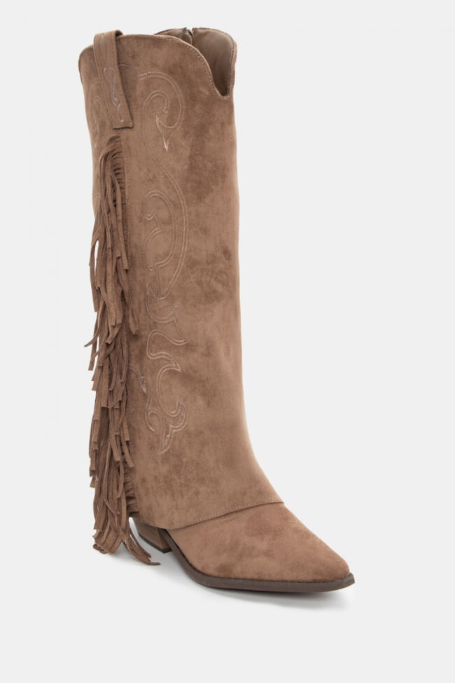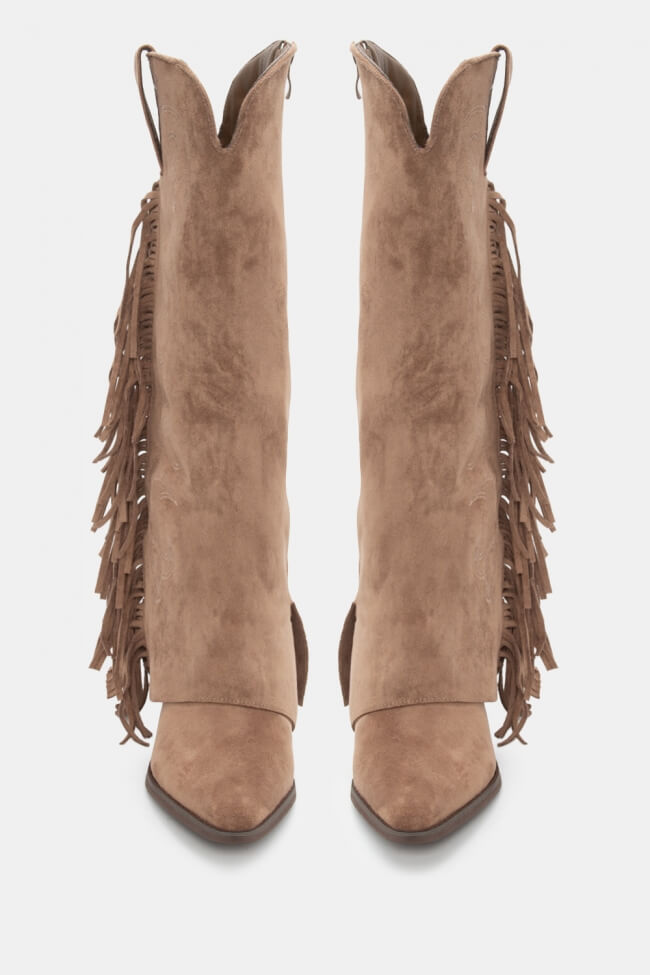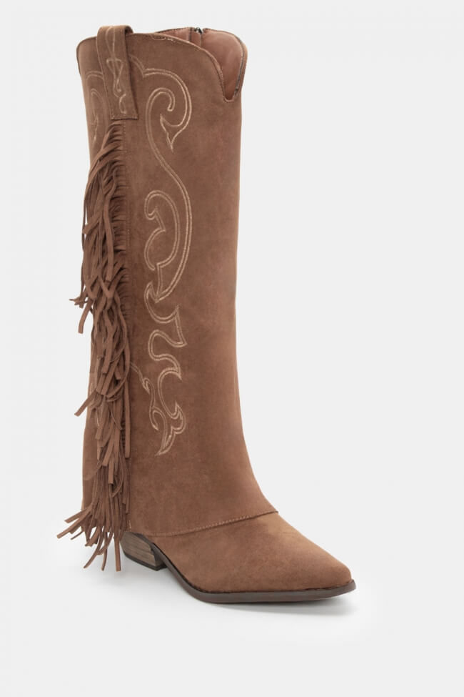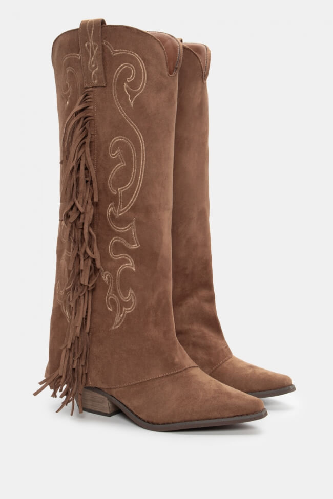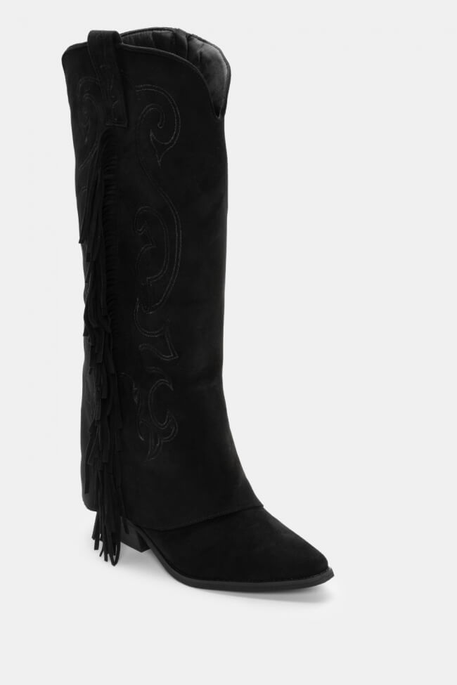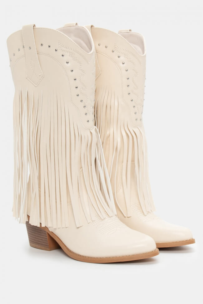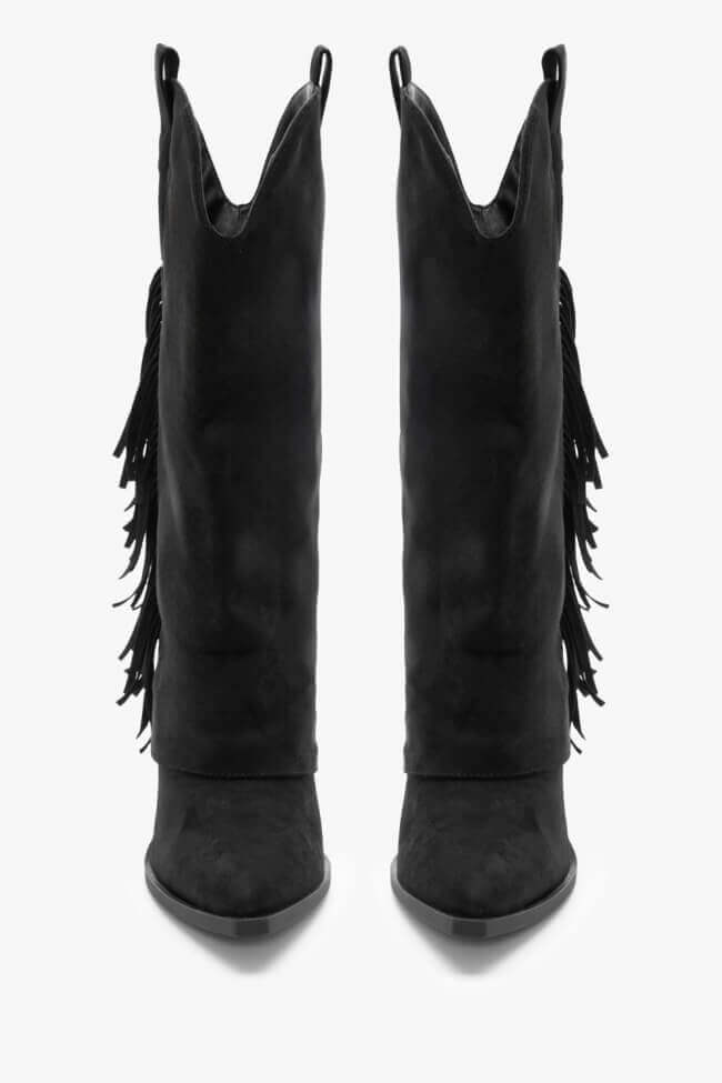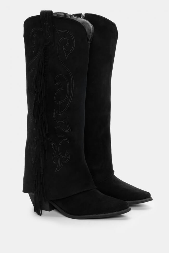 Каубойски ботуши с ефект на сгъваема облицовка и ресни