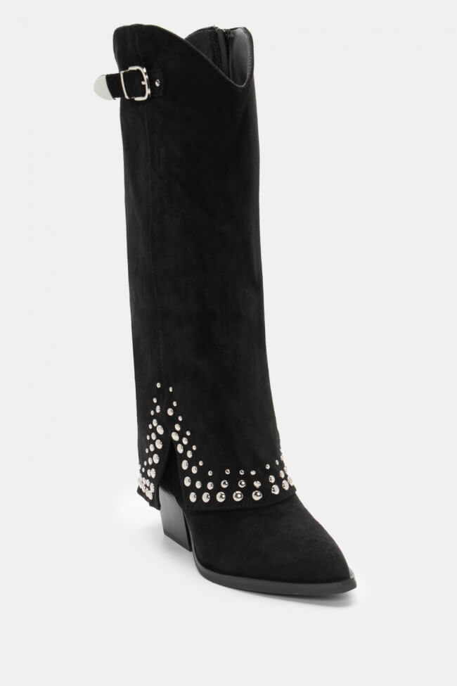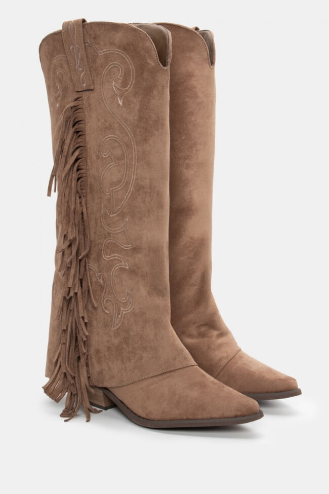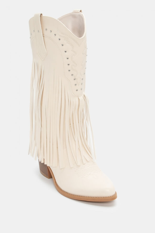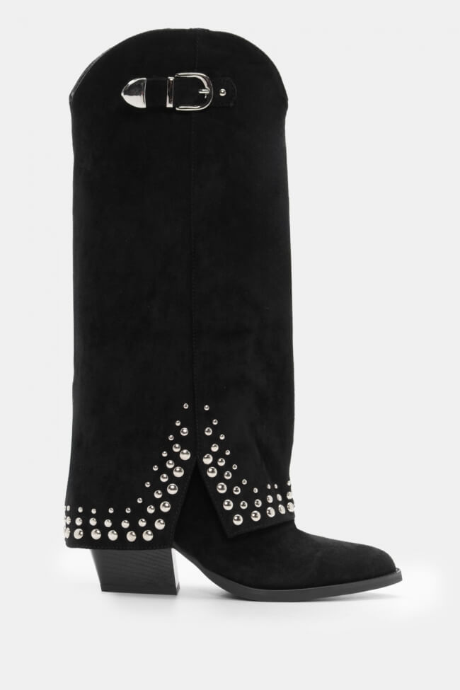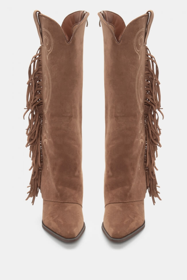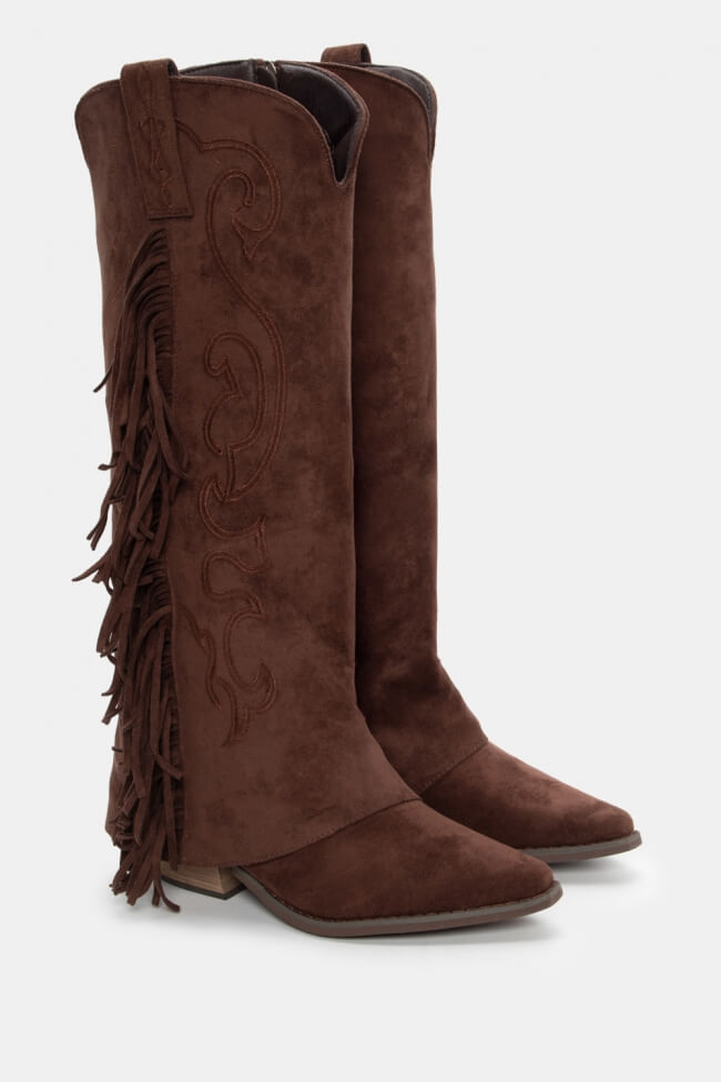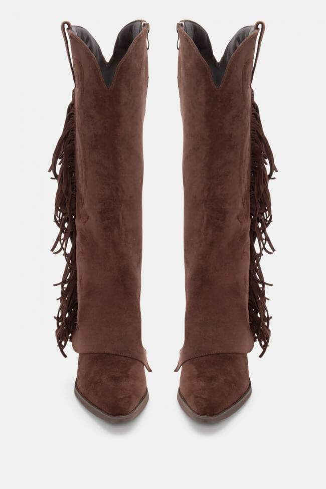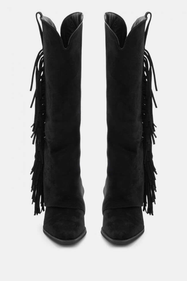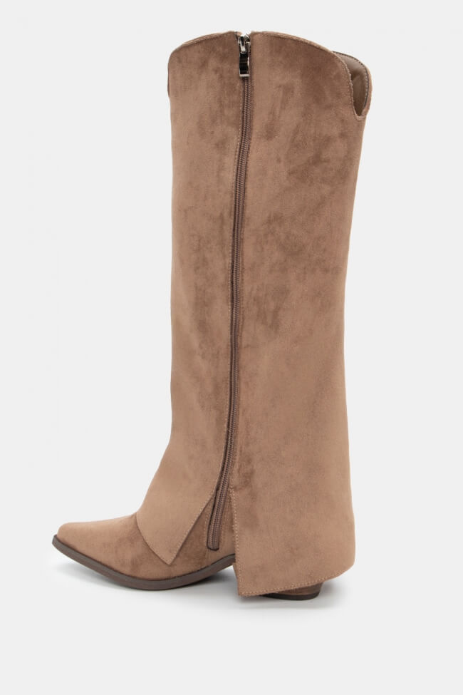 Каубойски ботуши с ефект на сгъваема облицовка и ресни
