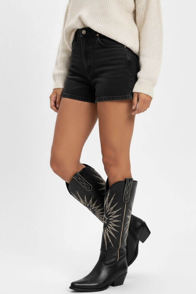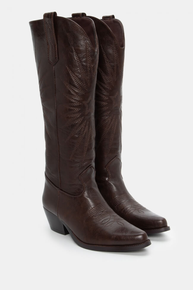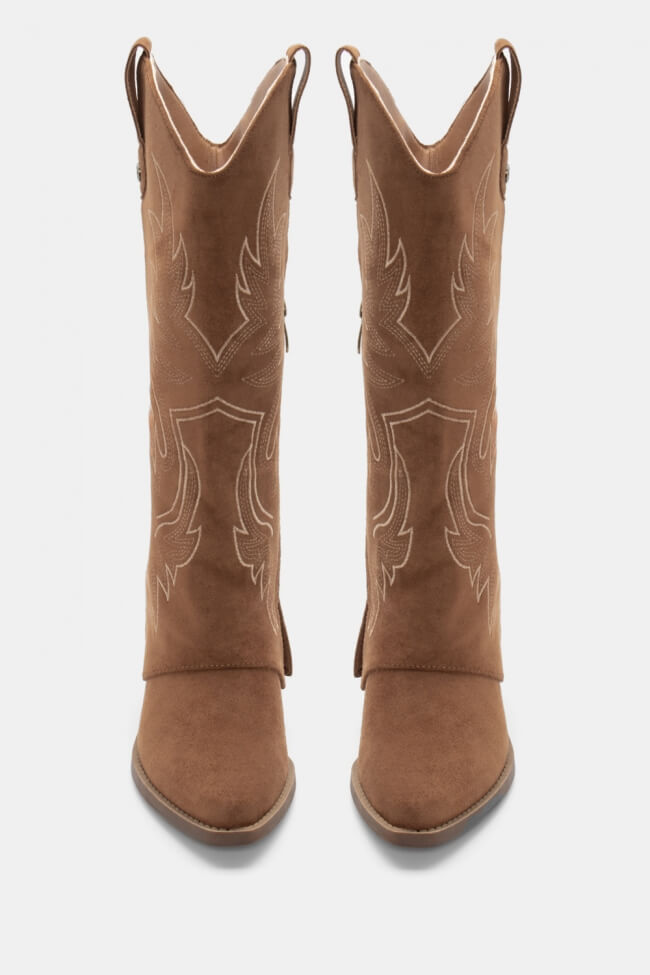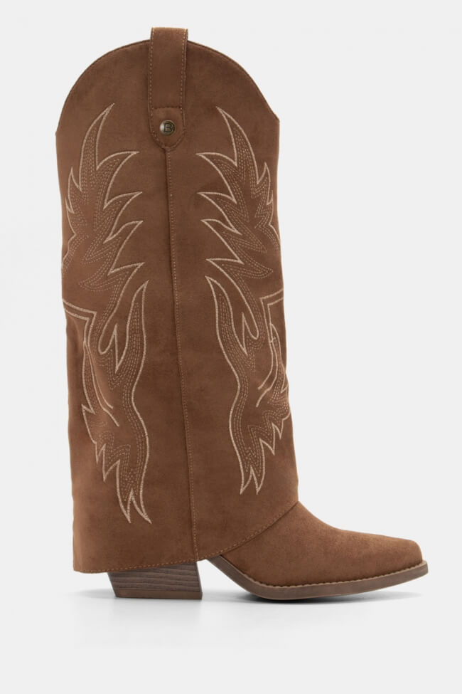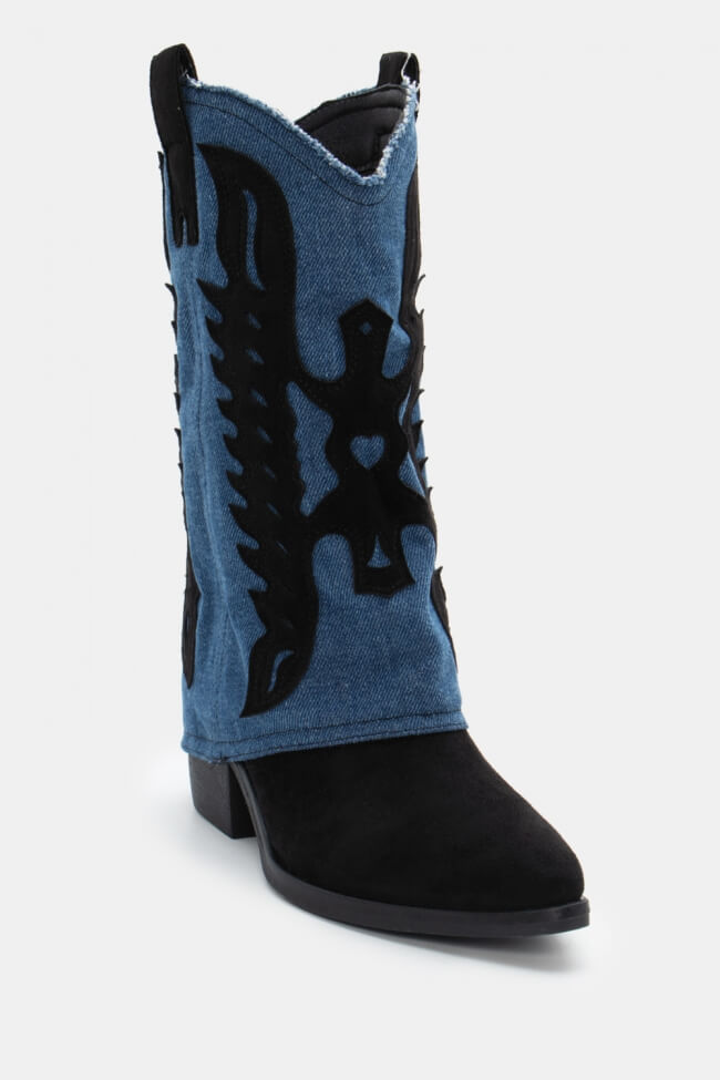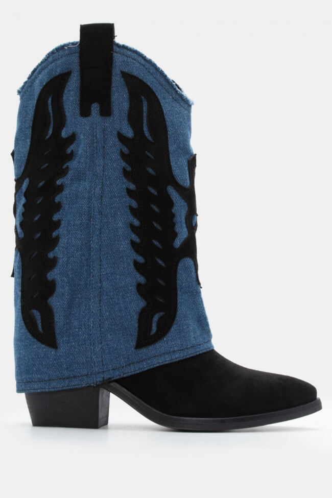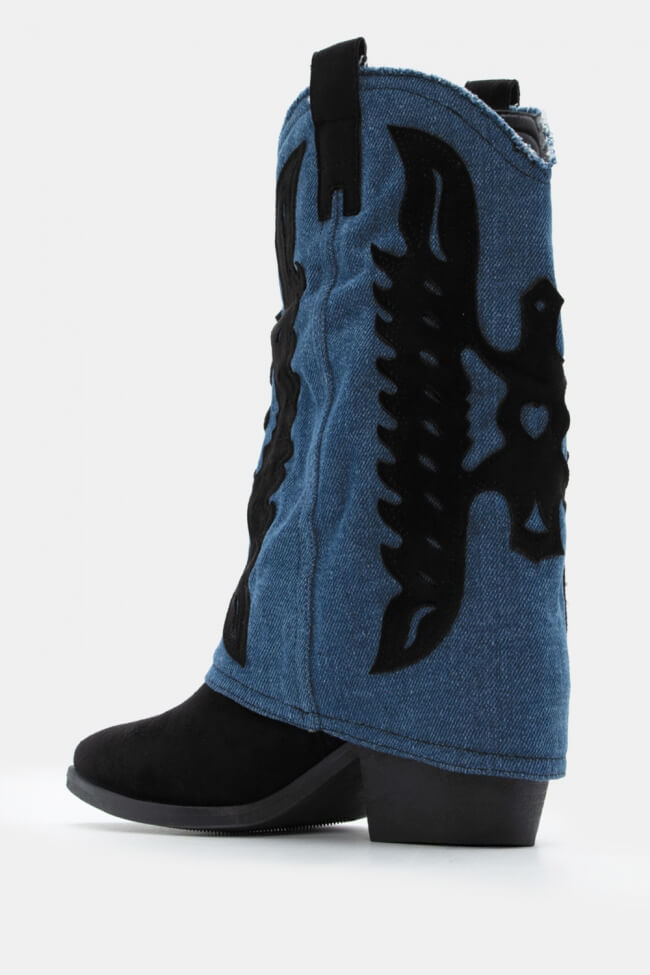 Ковбойски ботуши с ефект на прегънат маншет и бродерия