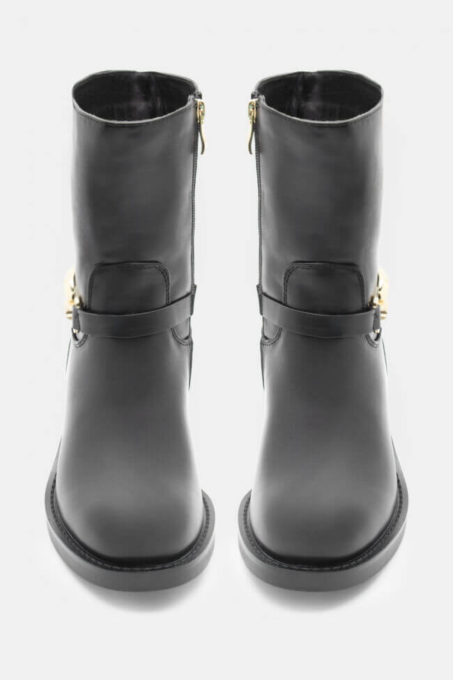- Αν αγαπάς τα minimal κομμάτια, μπορείς να επιλέξεις πιο κλασικά σχέδια όπως biker boots σε μονόχρωμη παλέτα, που ταιριάζουν με τα πάντα.