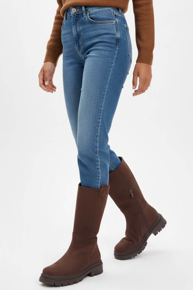 Cizmele flat pot fi purtate cu blugi sau chiar și cu fuste pentru un look mai chic & confortabil.