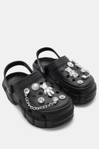 Pantofi Sabot cu Ornamente din Strass & Lanț
