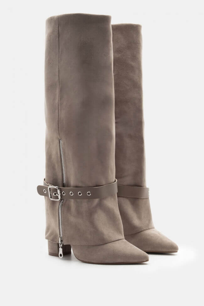 Μπότες με Εφέ Αναδιπλούμενης Φάσας & Διακοσμητικό Φερμουάρ
