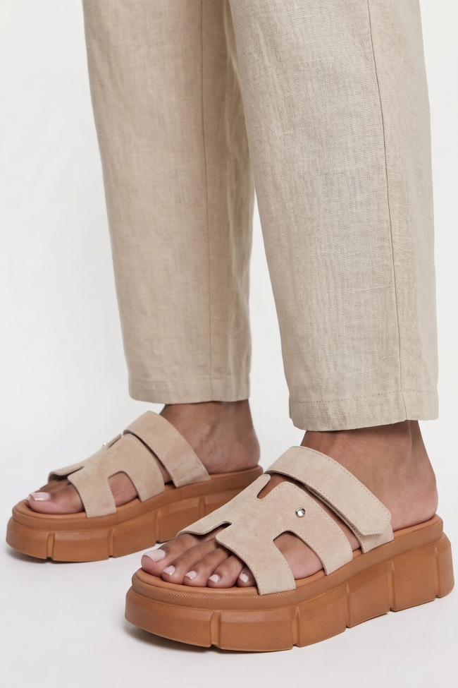 Σανδάλια Flatform με Διπλές Τόκες & Λουράκι Scratch