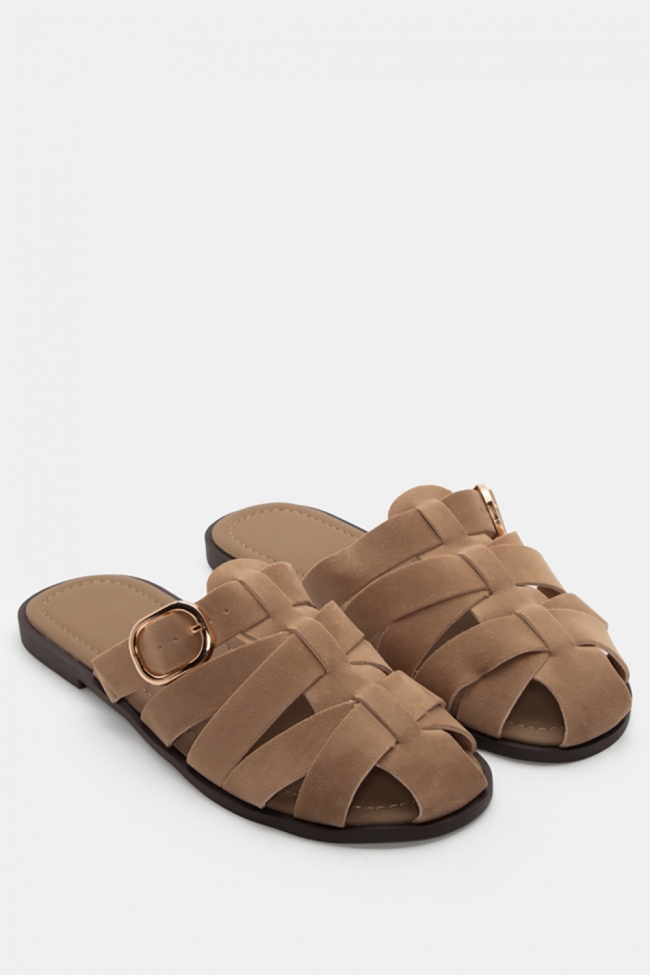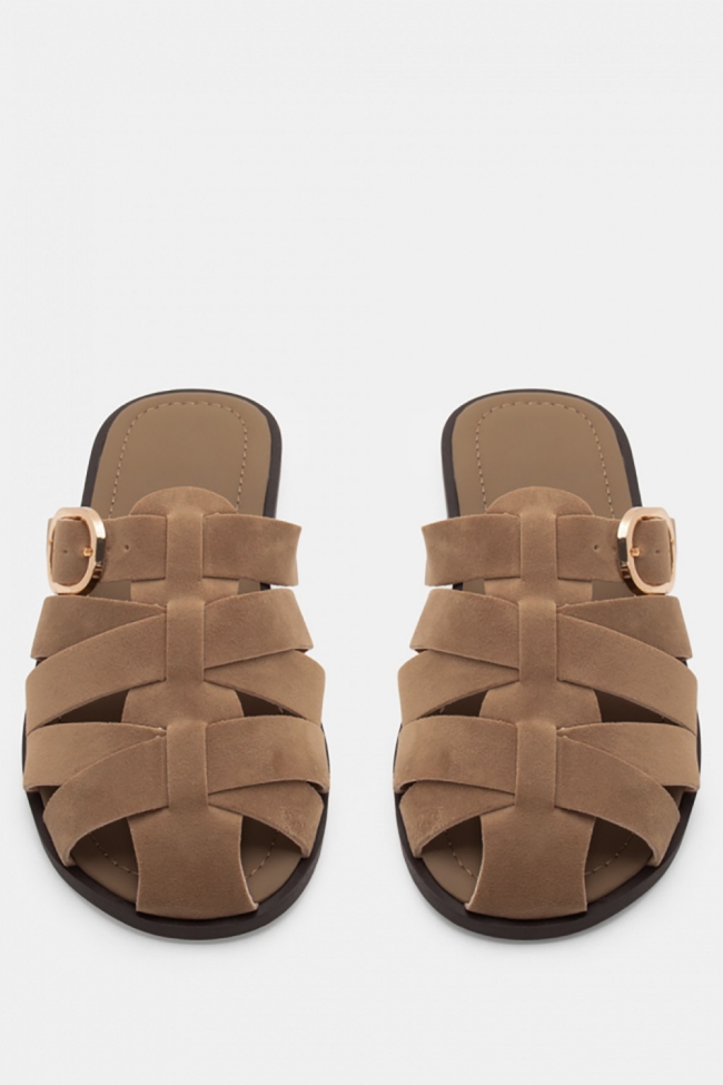 Плоски сандали с изящни каишки и тока