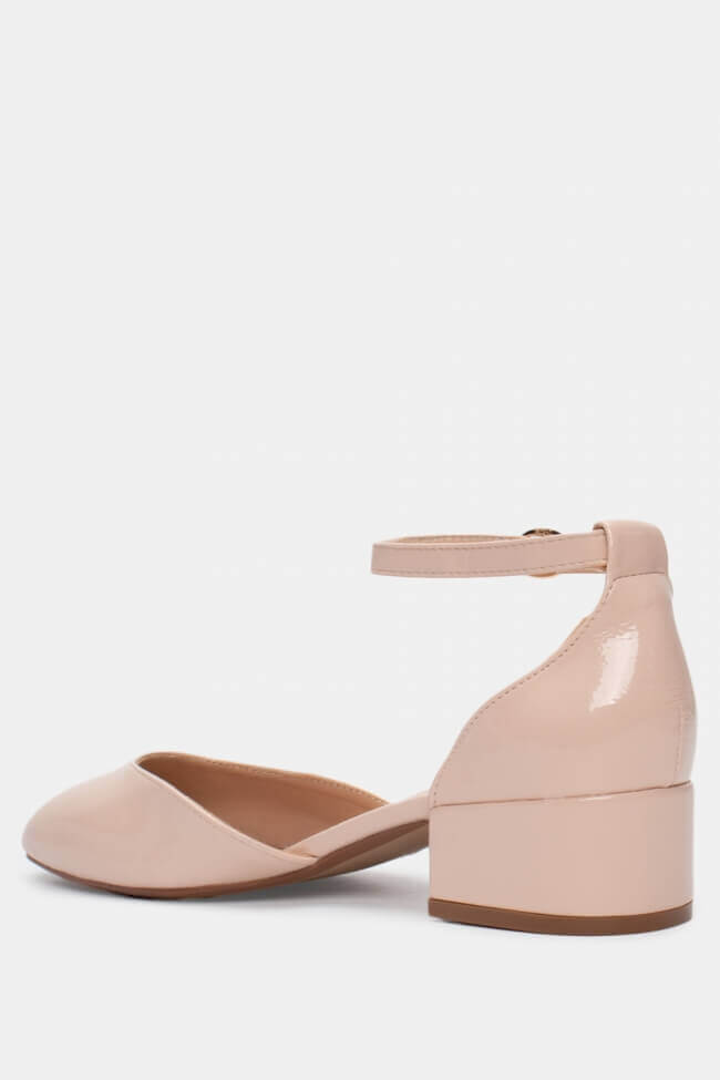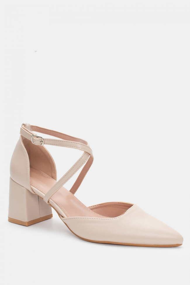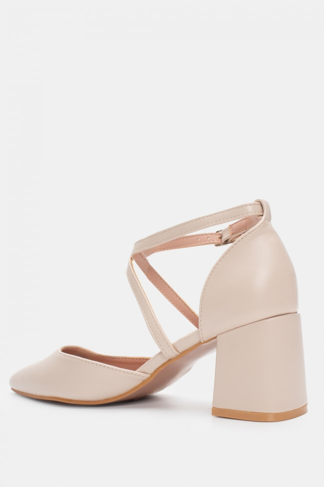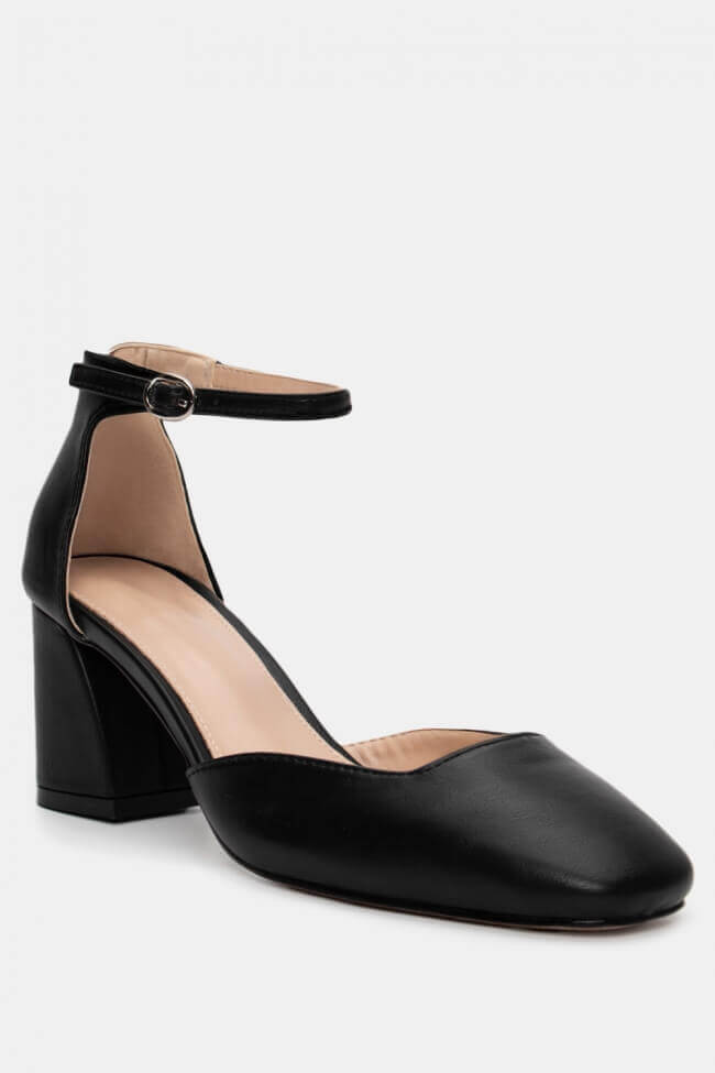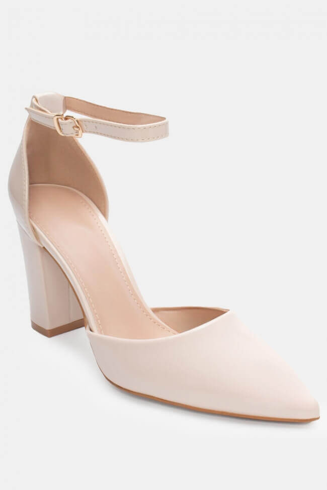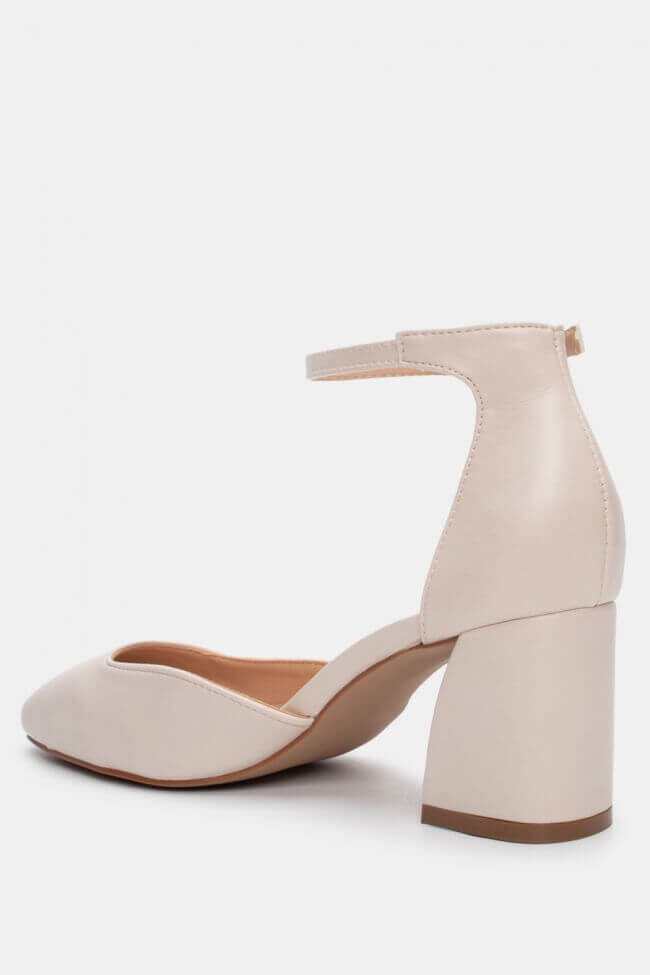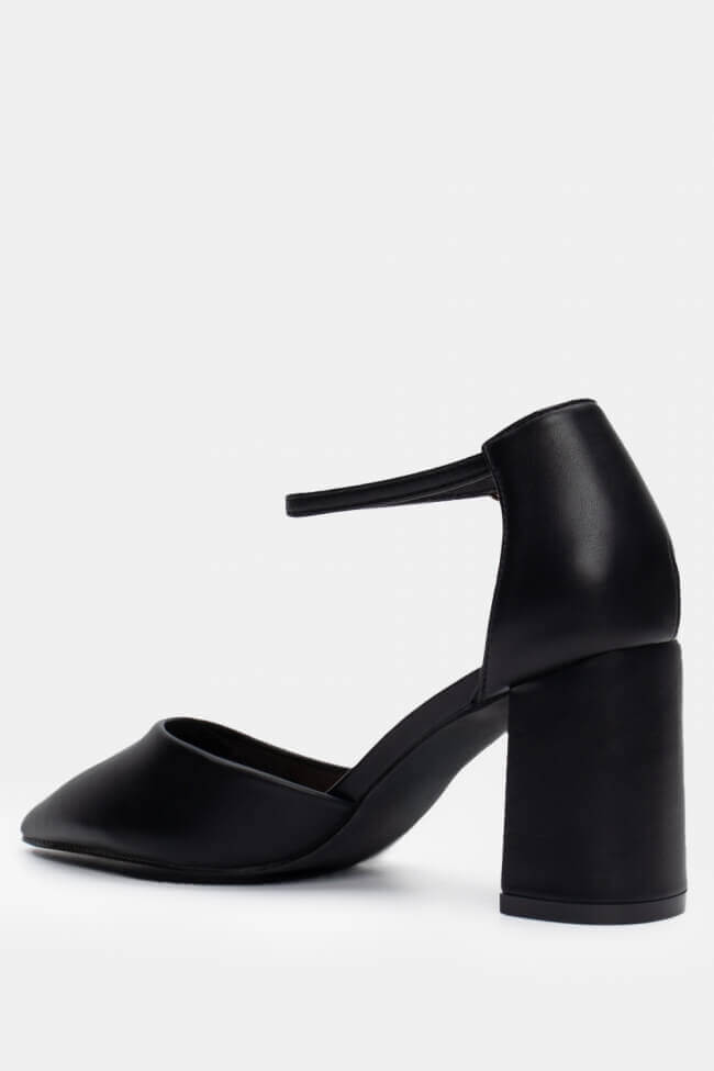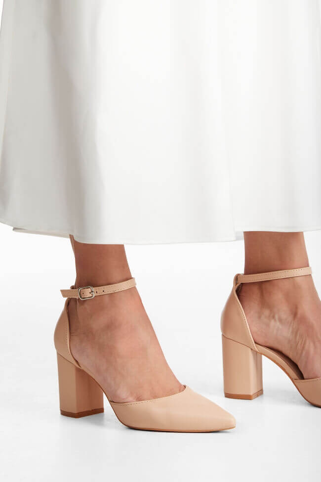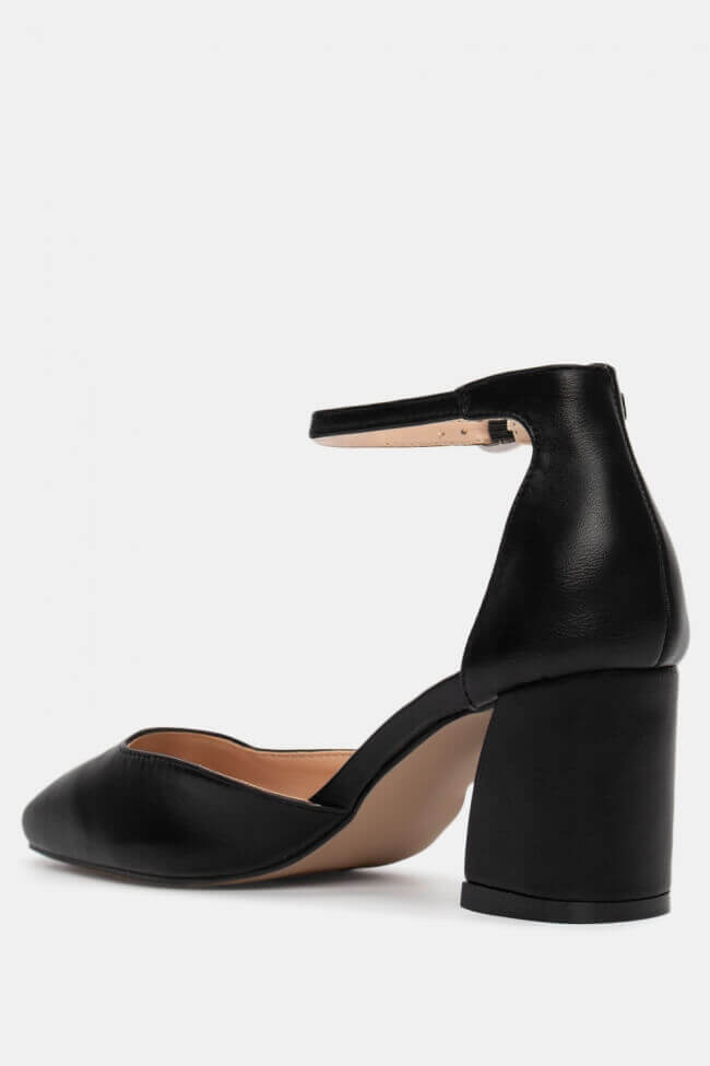 With pants: Combine the pumps with cropped pants for a modern contemporary look. The elegant cut of the pants highlights the strap detail and creates an elegant appearance.