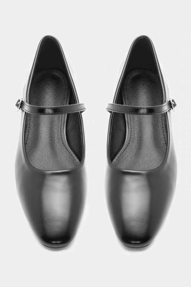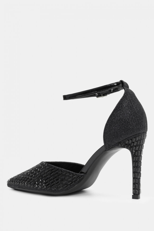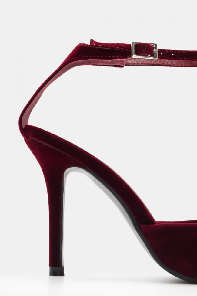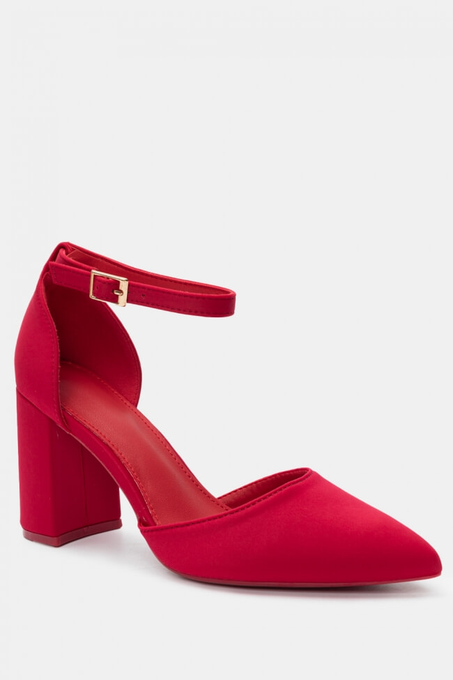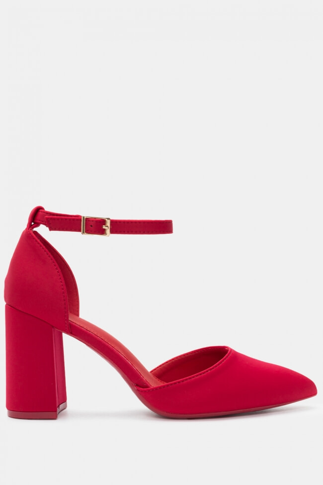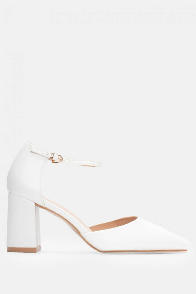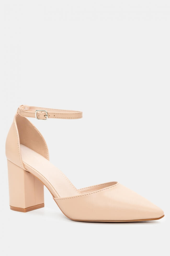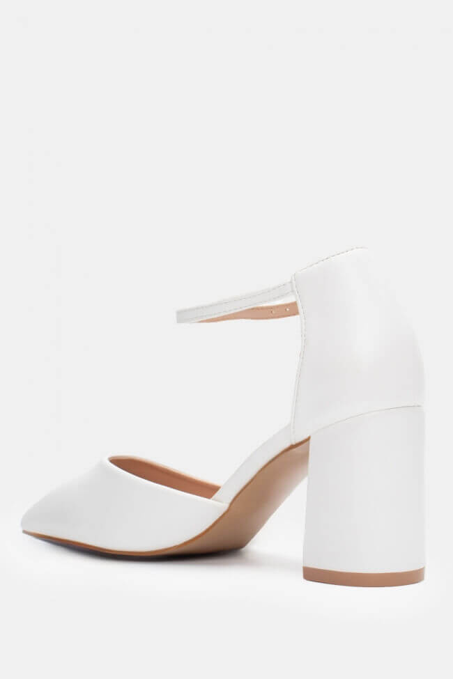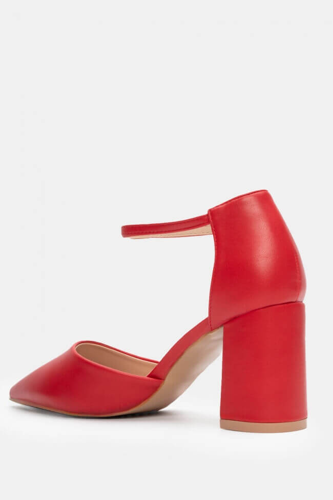 With pants: Combine the pumps with cropped pants for a modern contemporary look. The elegant cut of the pants highlights the strap detail and creates an elegant appearance.