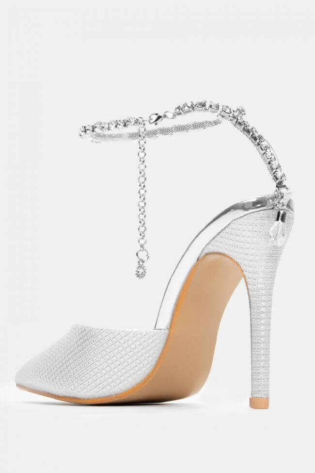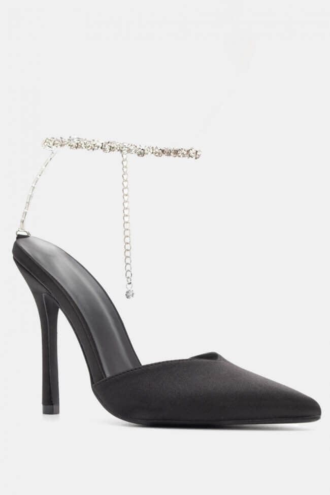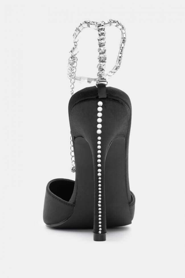 Plus, their pointed line elongates the leg, creating a more aristocratic appearance, while the strap keeps the foot stable all day. Find the pointed pumps with rhinestones and a decorative chain of stones and pair them with a cocktail dress - expect the most "wow" looks.