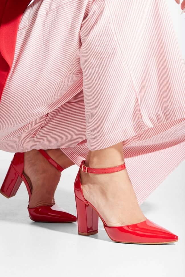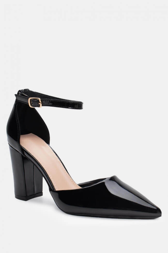 - If you don\'t hesitate to dare, choose patent leather pumps with strap. They are the ultimate choice for a glam and chic look. The shiny finish of the patent leather adds that sparkle and elegance you desire.