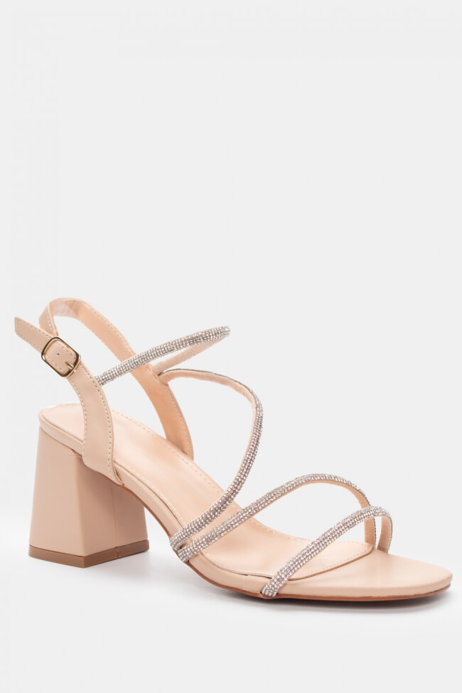 Сандали с Косо Подредени Каишки От Strass & Цип