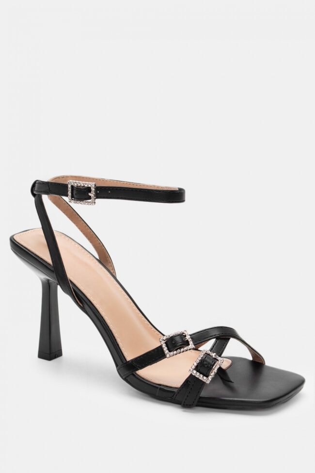 Сандали с кръстосани каишки и катарами с декорирани шипове Strass