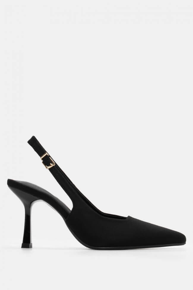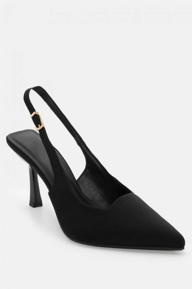 Pointed Toe Slingback Pumps with Decorative Buckle