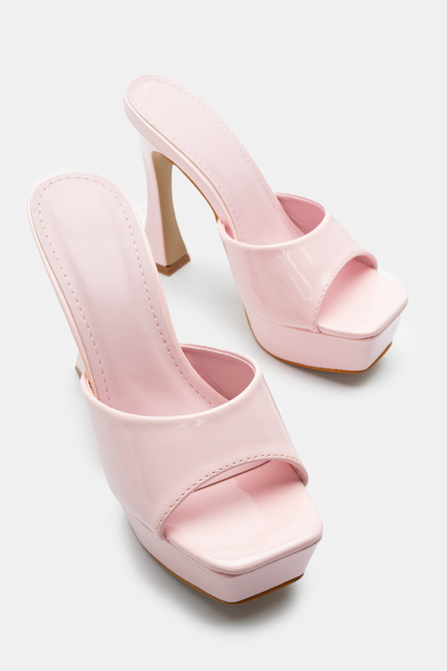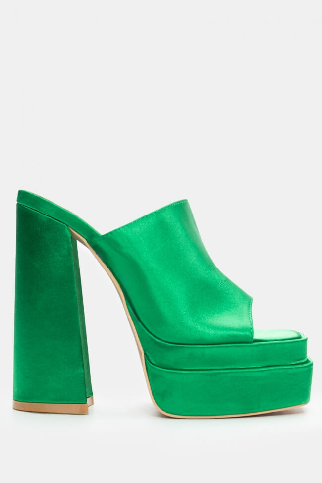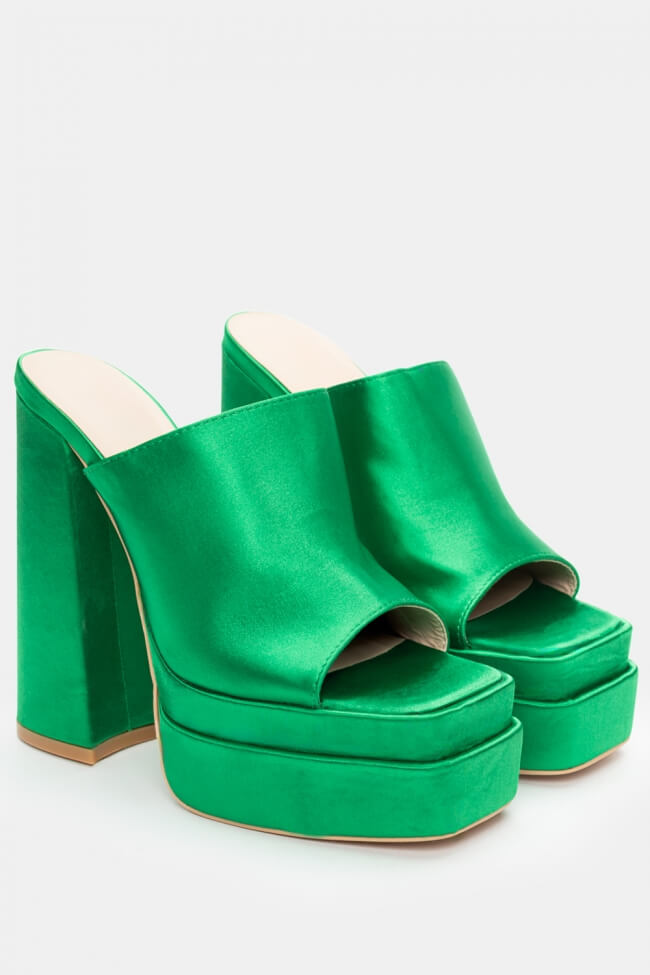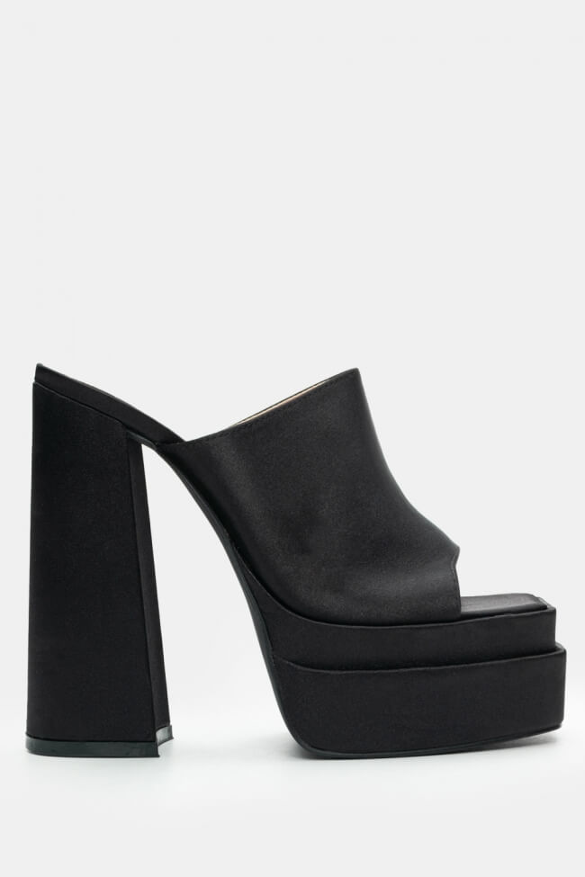 - Високи чехли с дебел ток за екстра стабилност, в който и да е цвят.