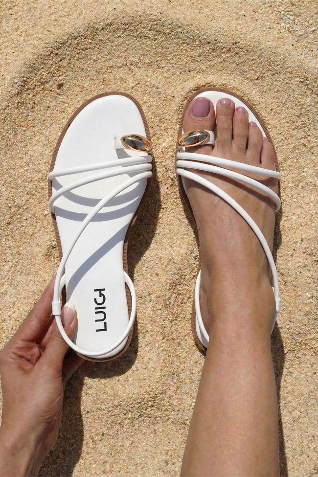 LUIGI DESIGN - Flat Σανδάλια με Λοξό Λουράκι με Μεταλλική