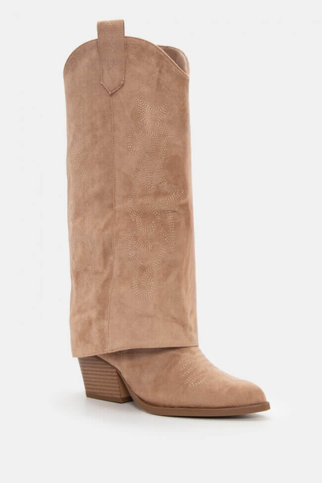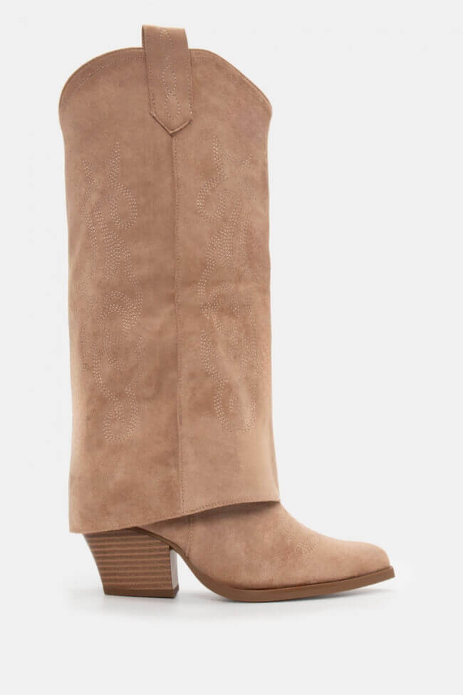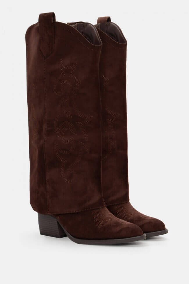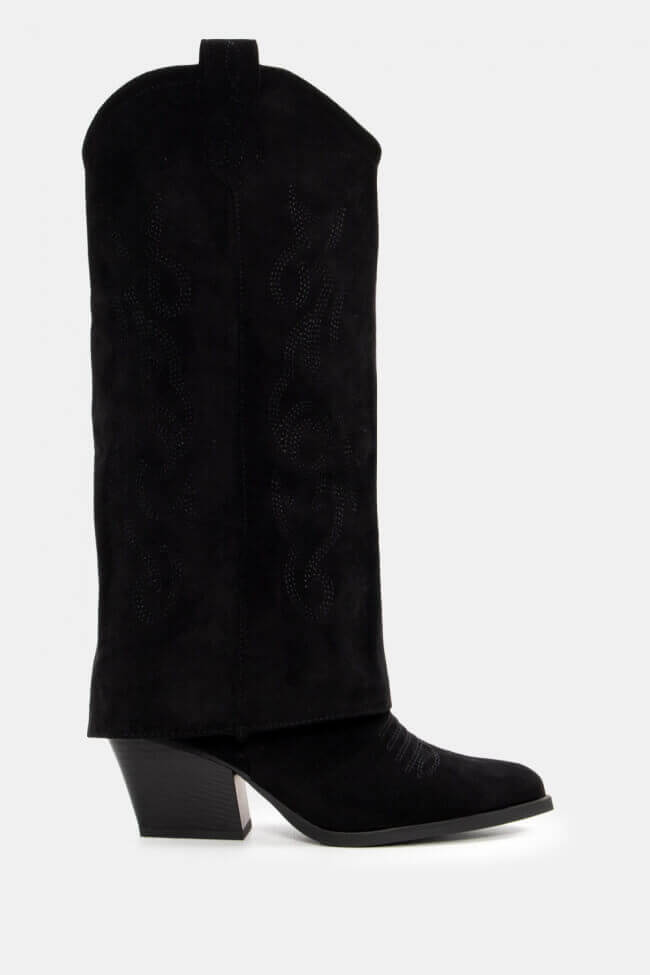 Cowboy Boots with Foldable Flap Effect & Decorative Flames