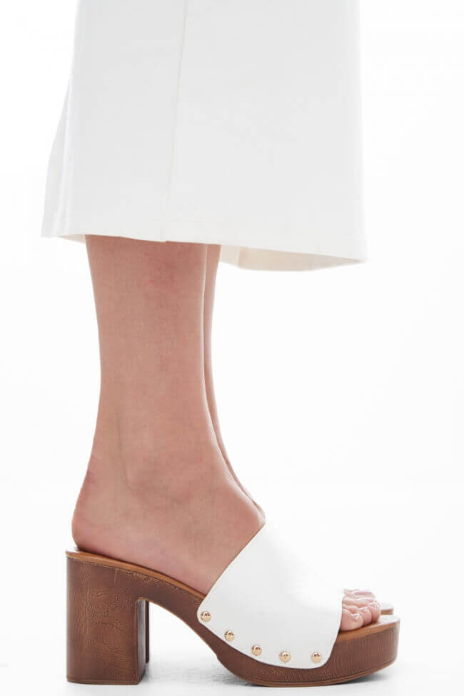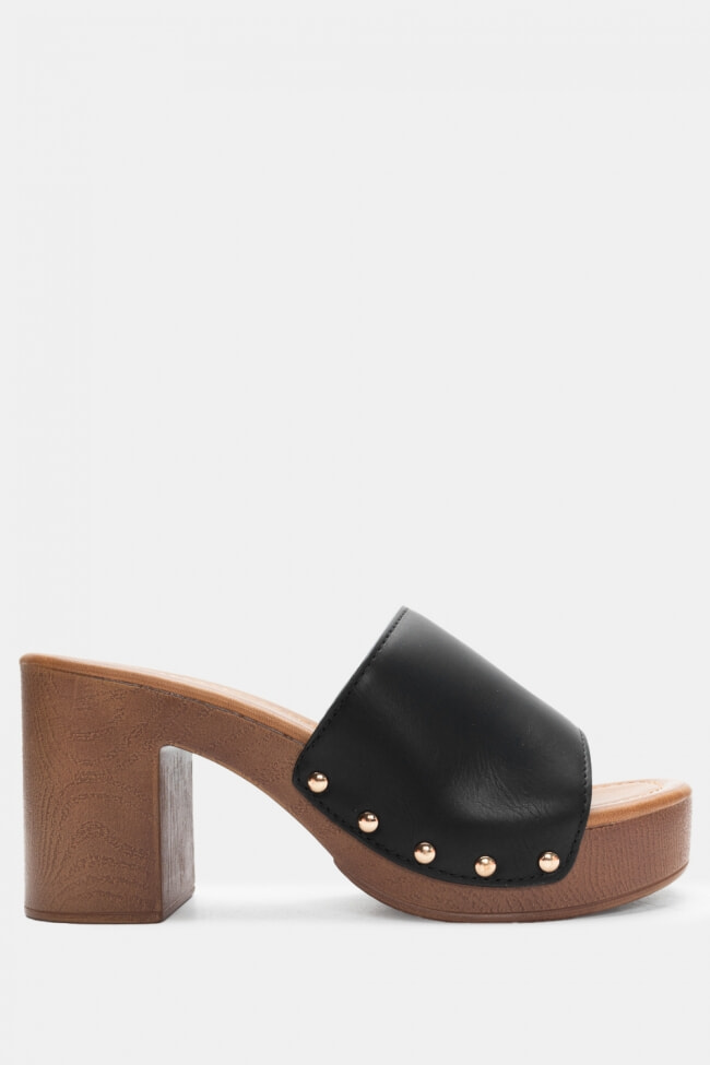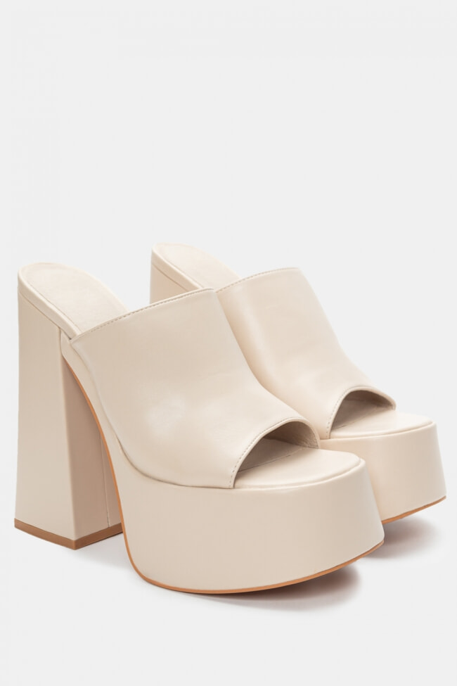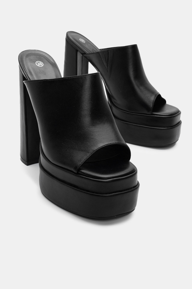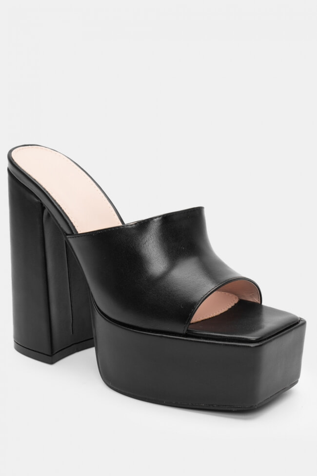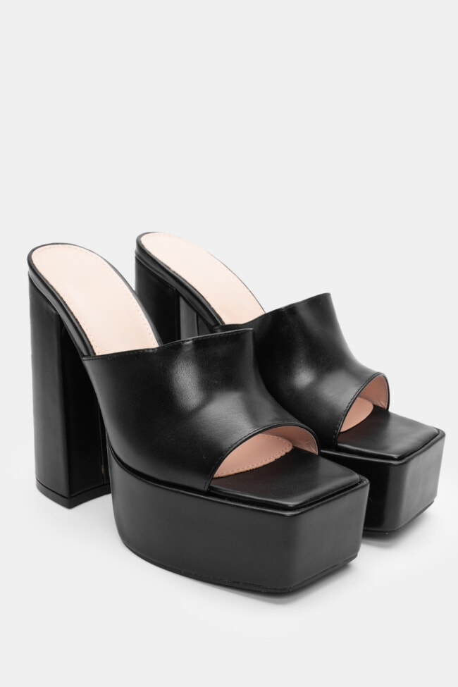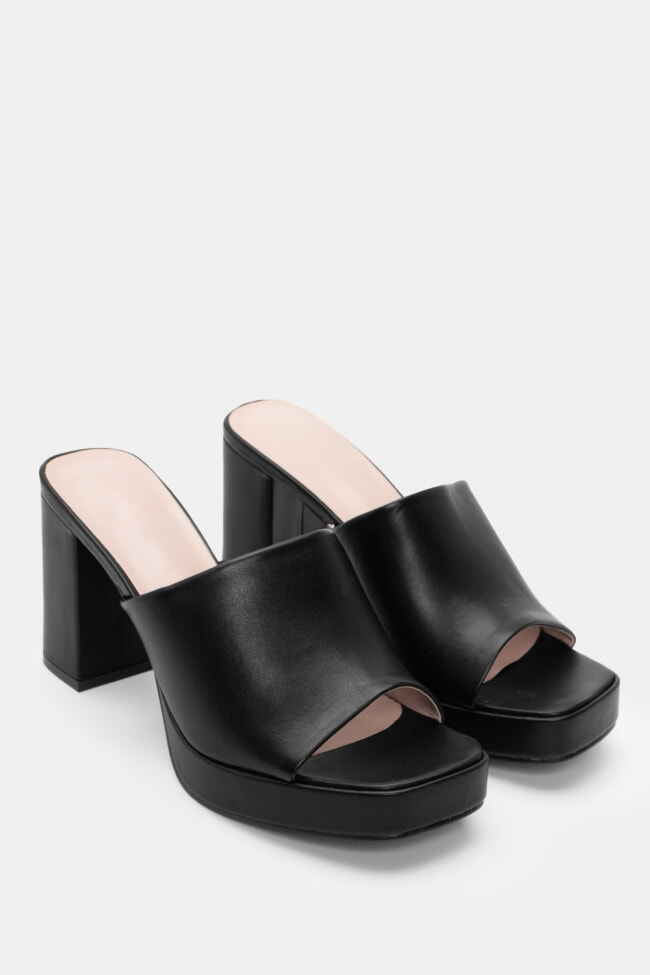 - Mules înălțate cu toc gros pentru stabilitate extra, în orice culoare.
