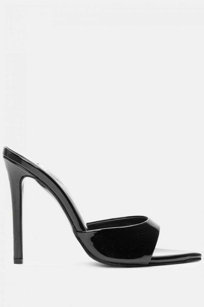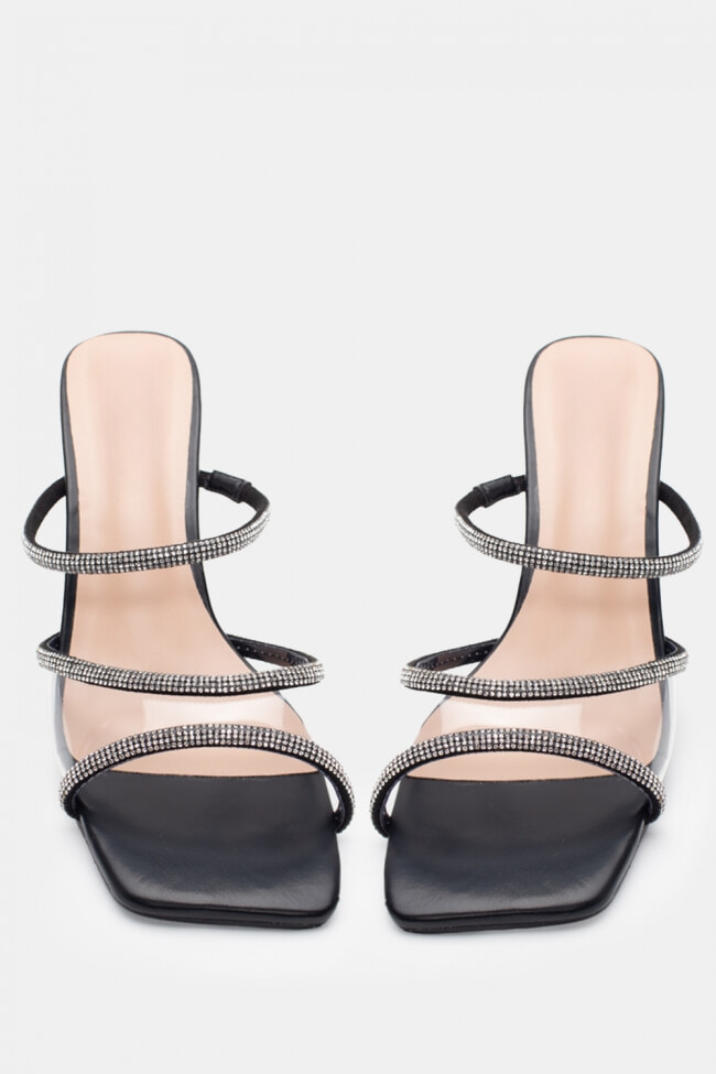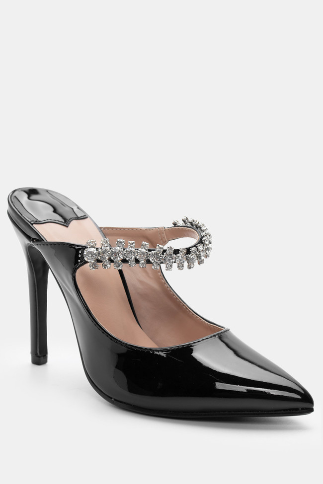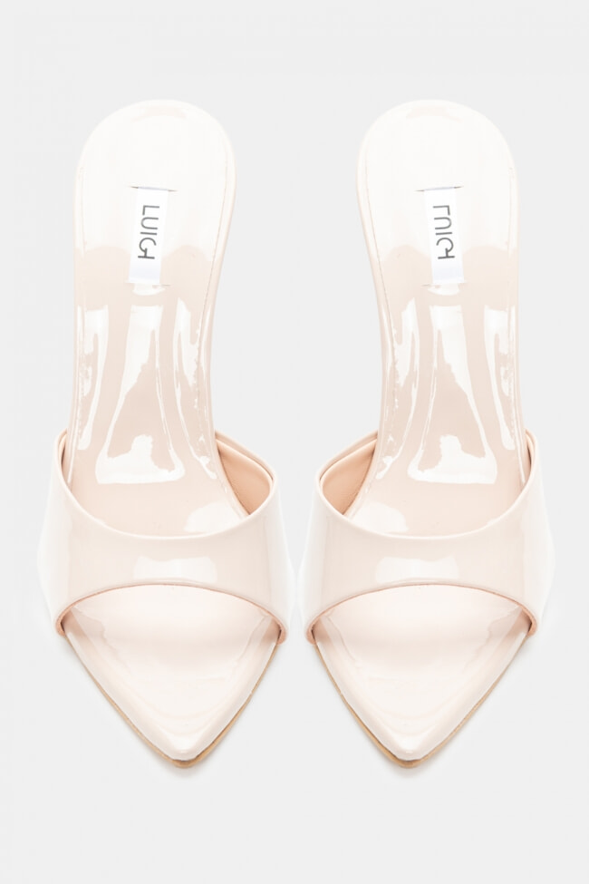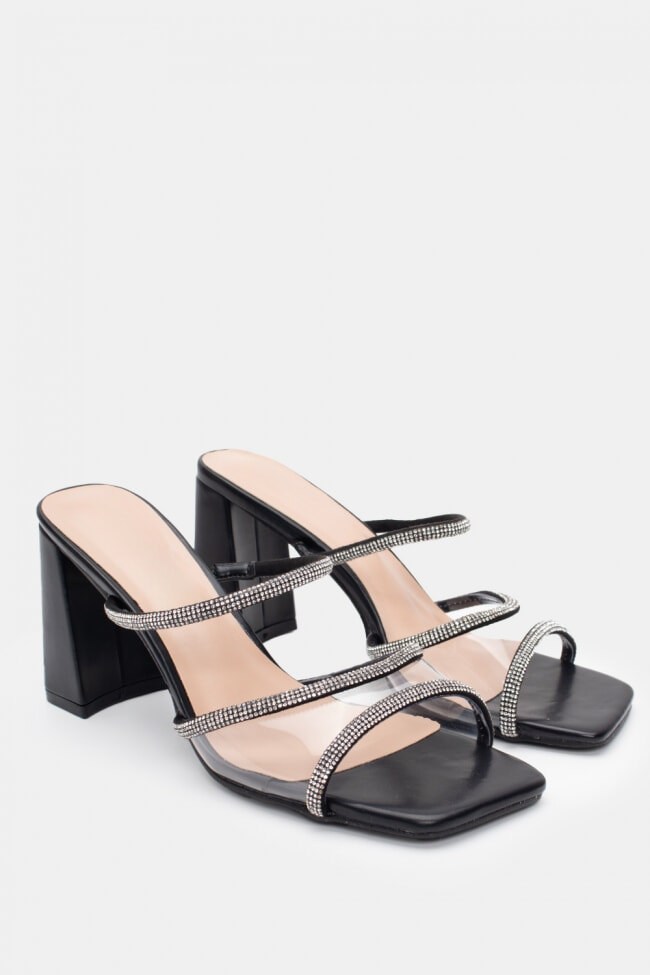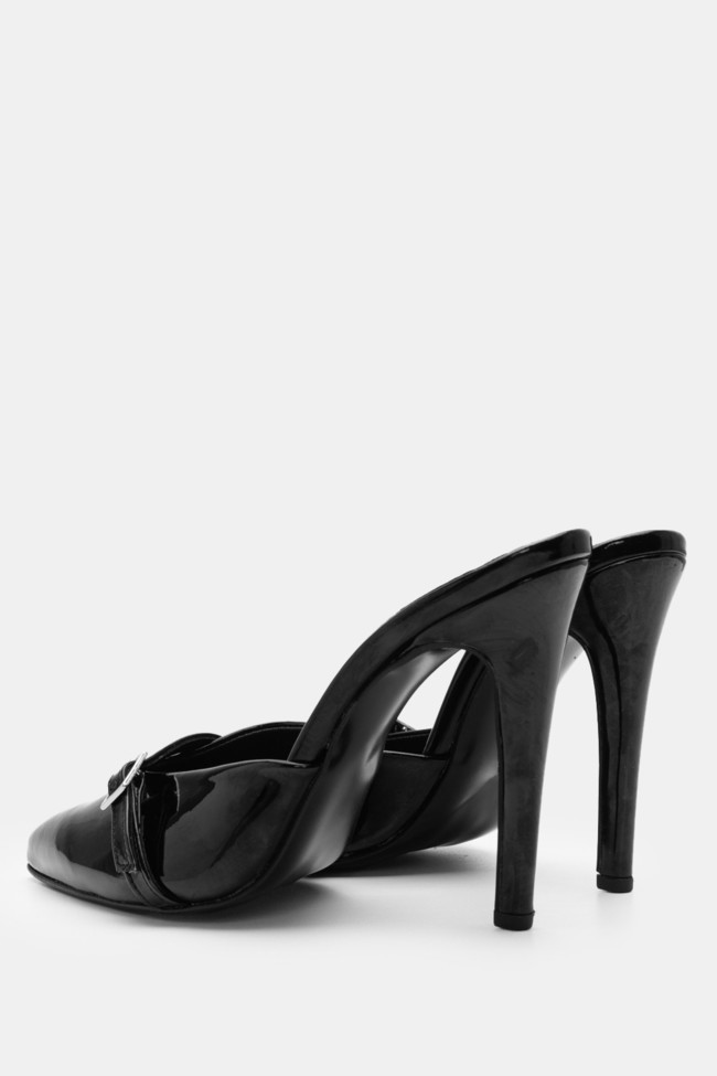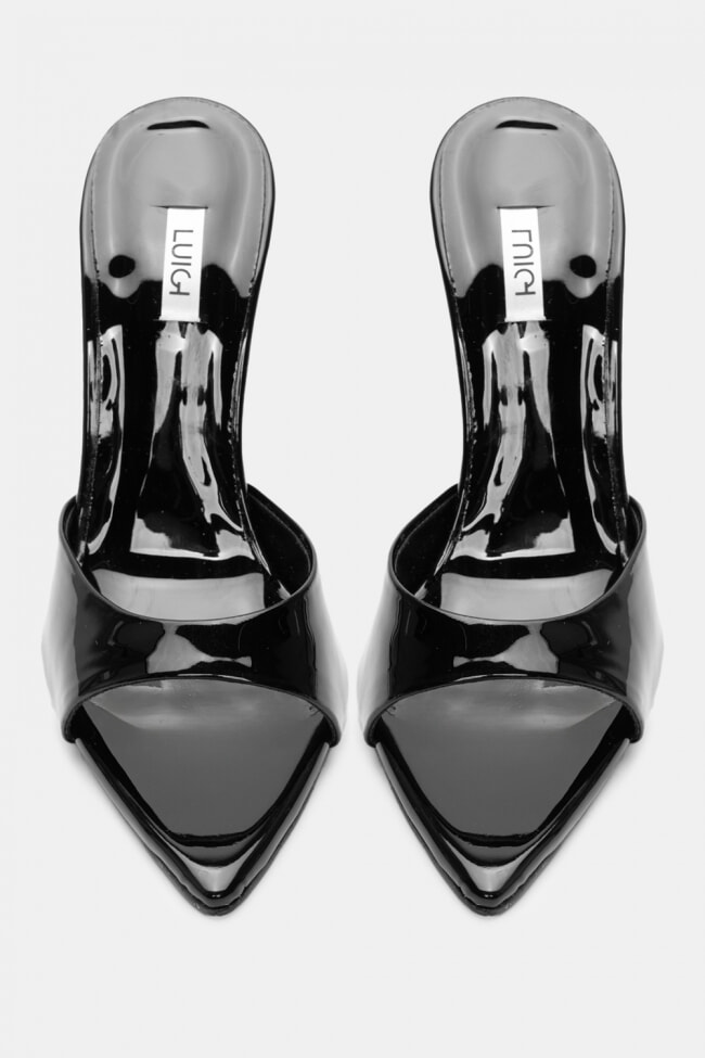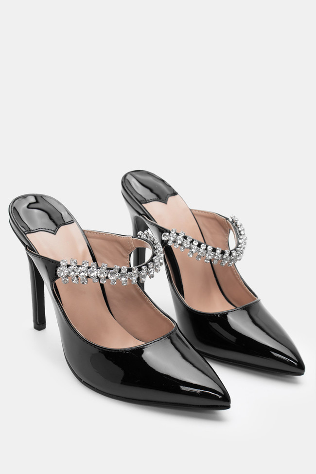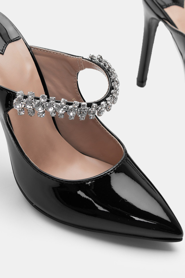 - Mules pentru femei înălțate cu finisaj lăcuit și strasuri pentru nopți fără sfârșit!