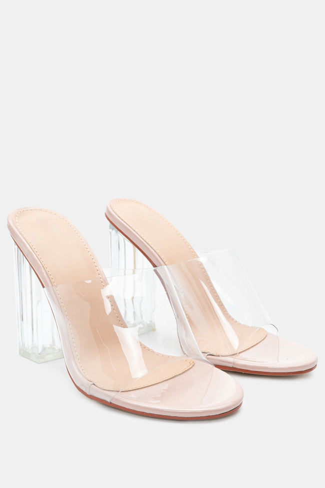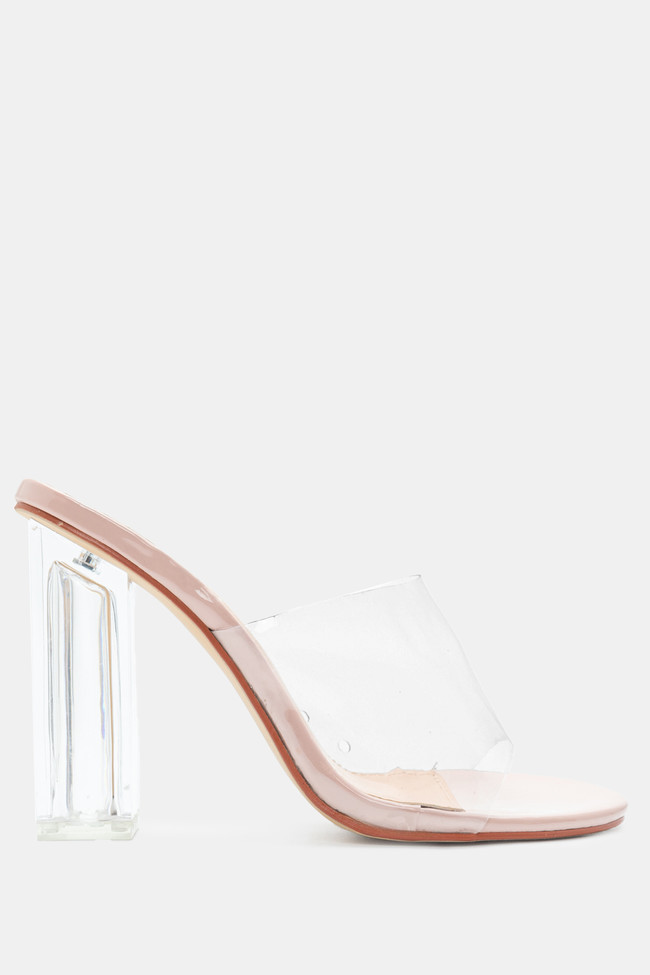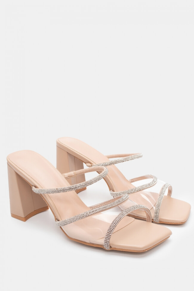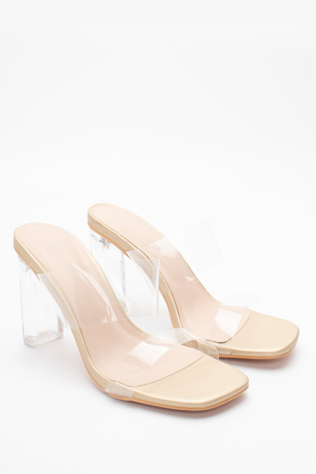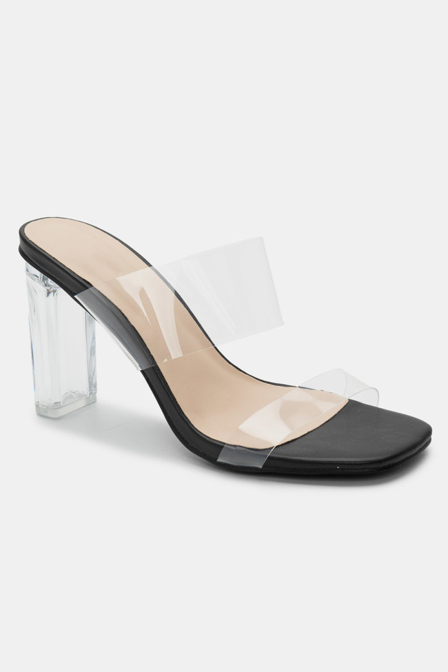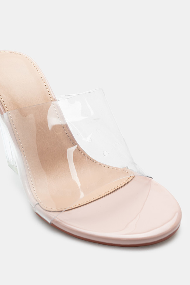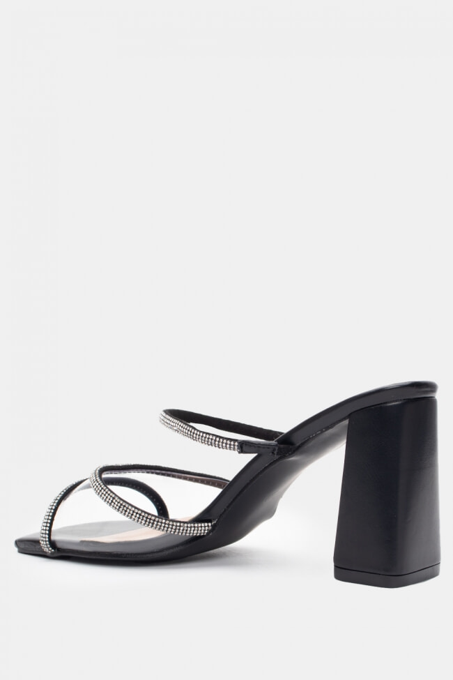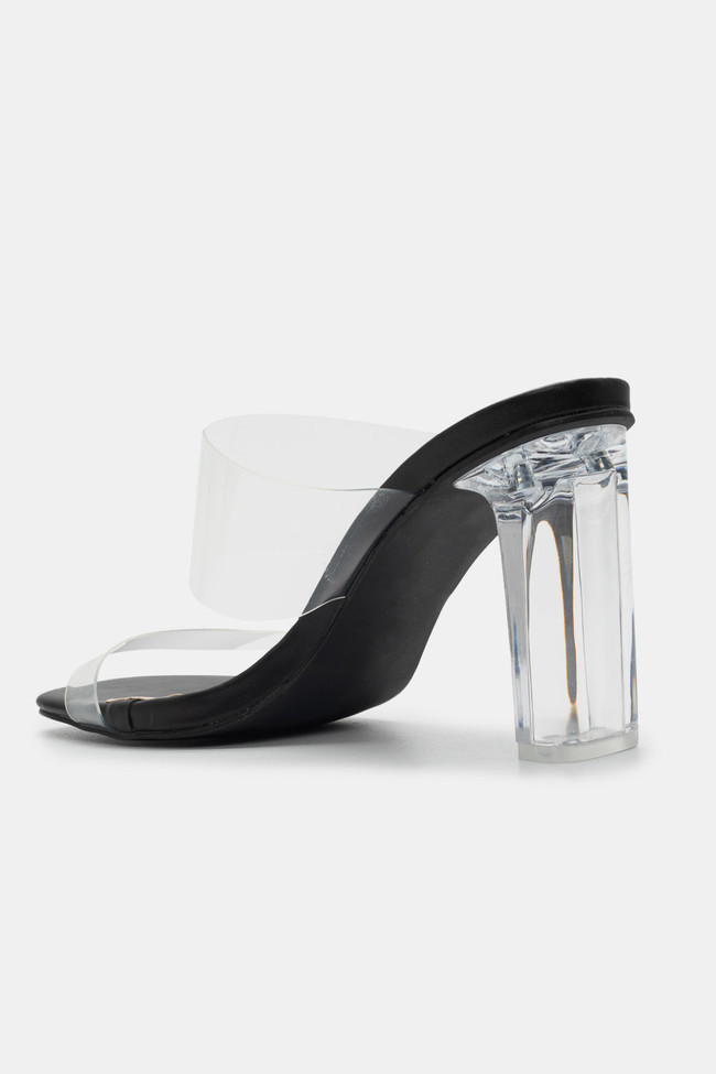 Mules cu Bandă Transparentă & Toc Transparent
