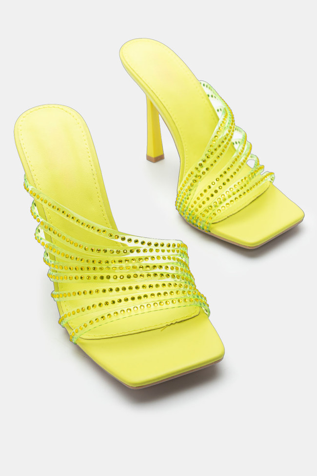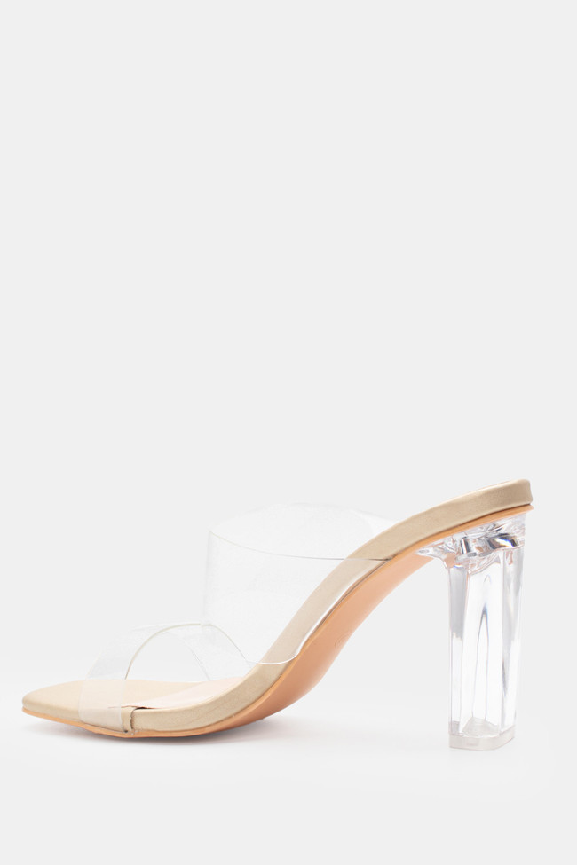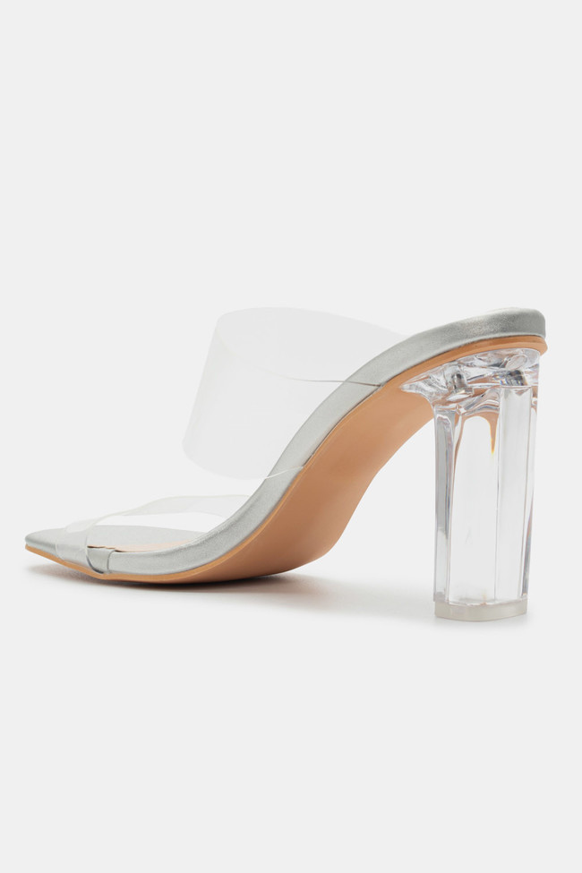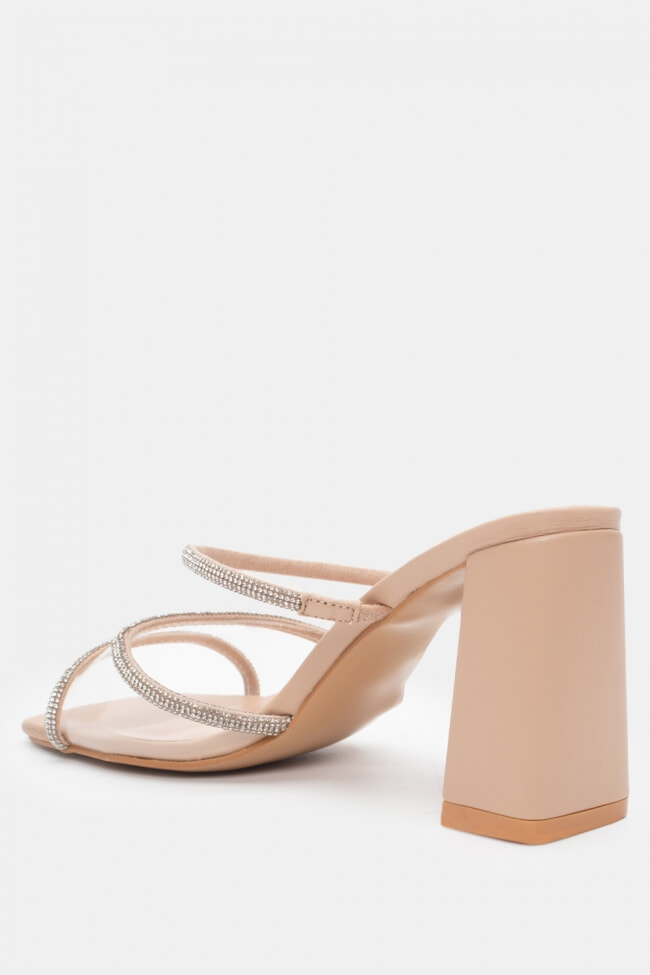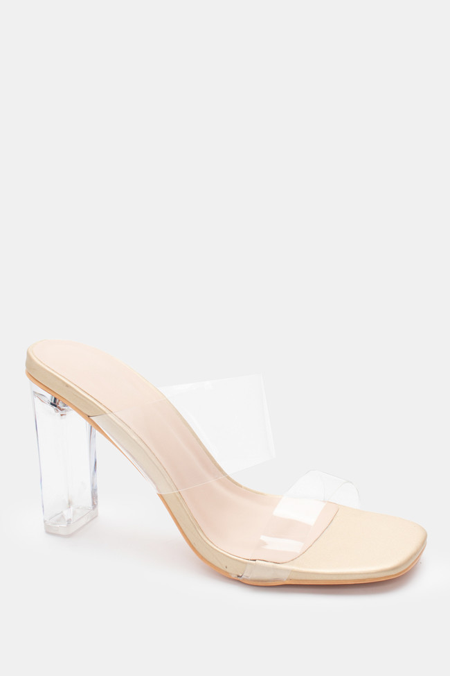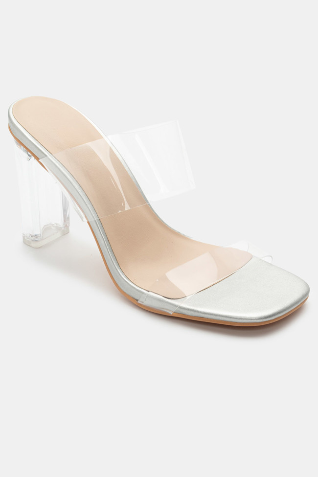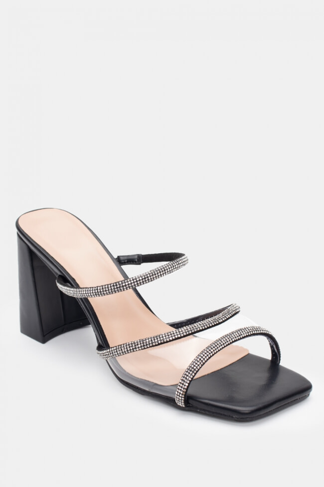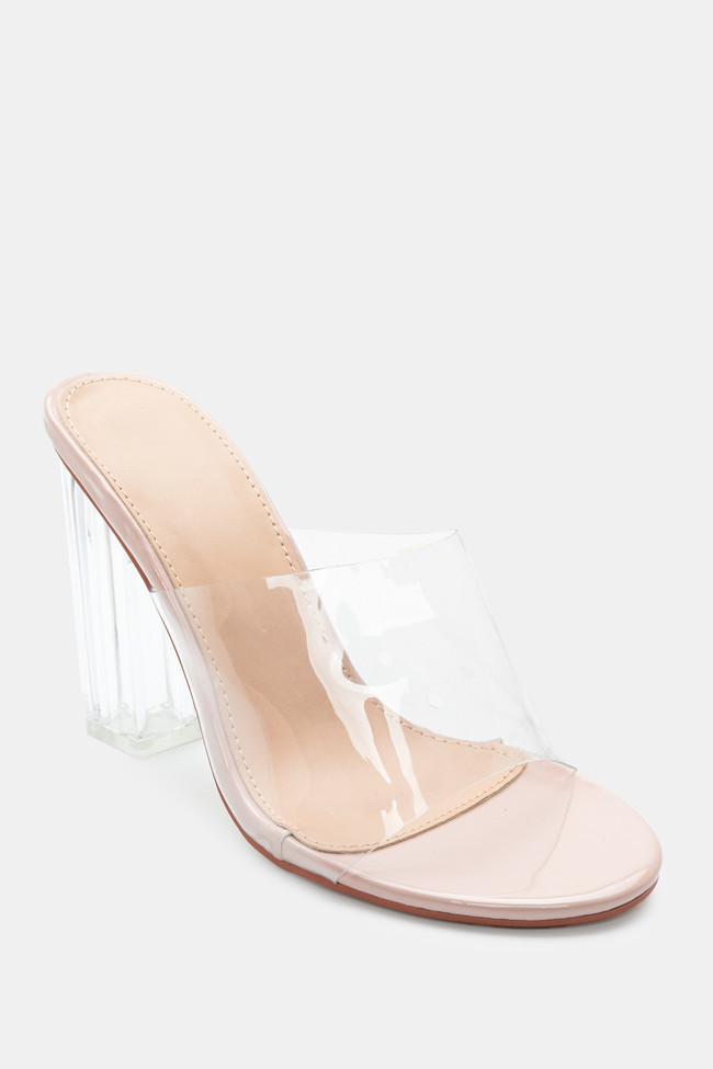 Mules cu Bandă Transparentă & Toc Transparent
