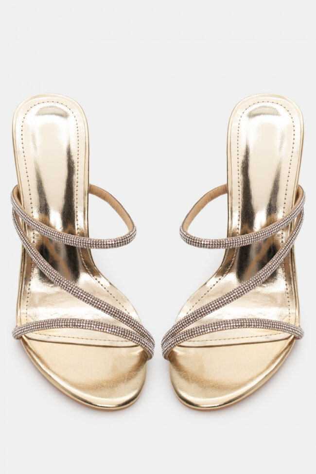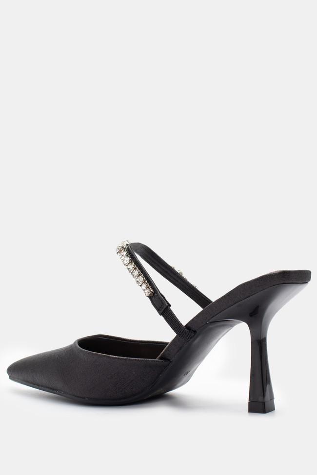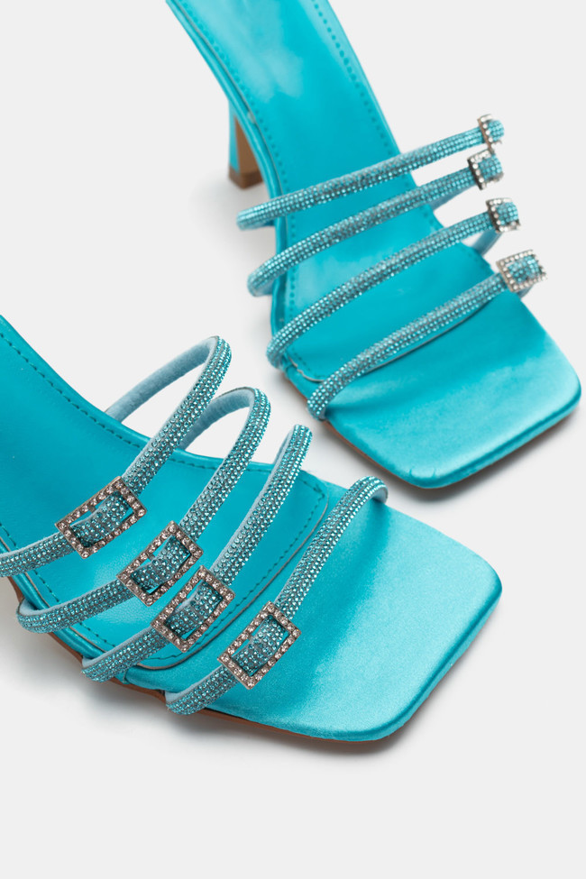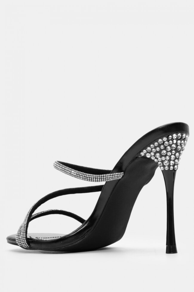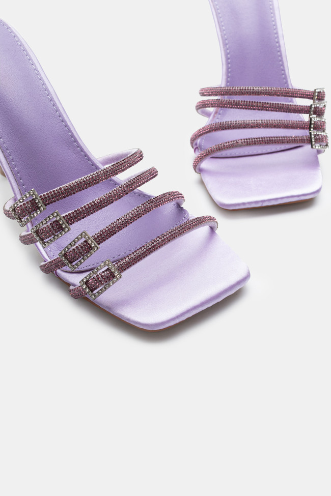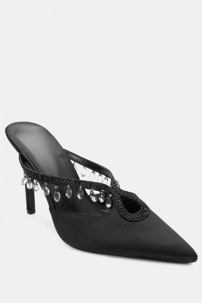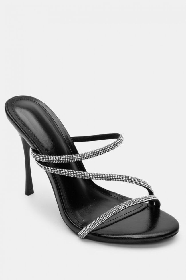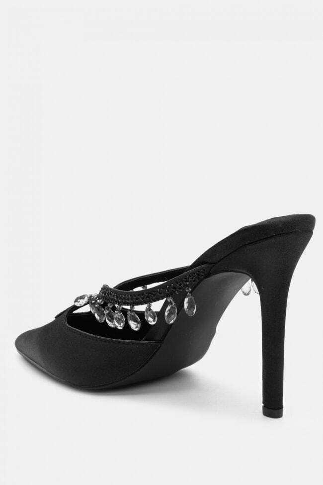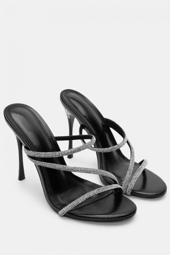 Mules din satin cu barete multiple din stras
