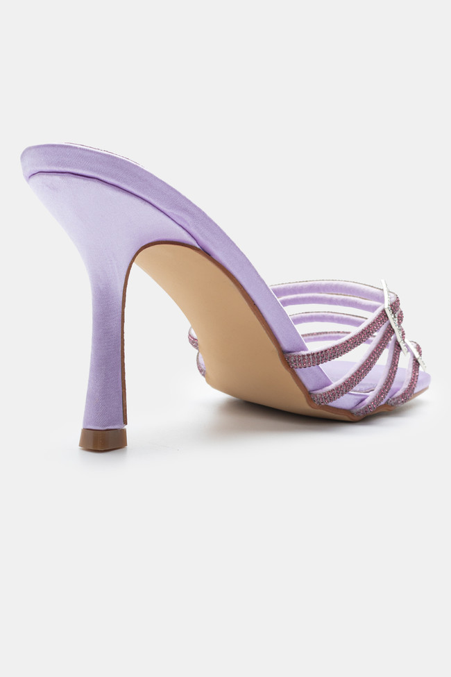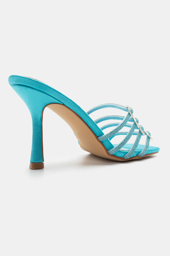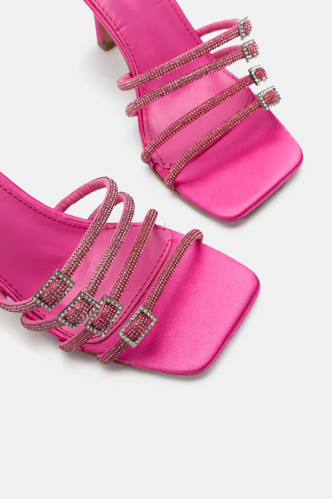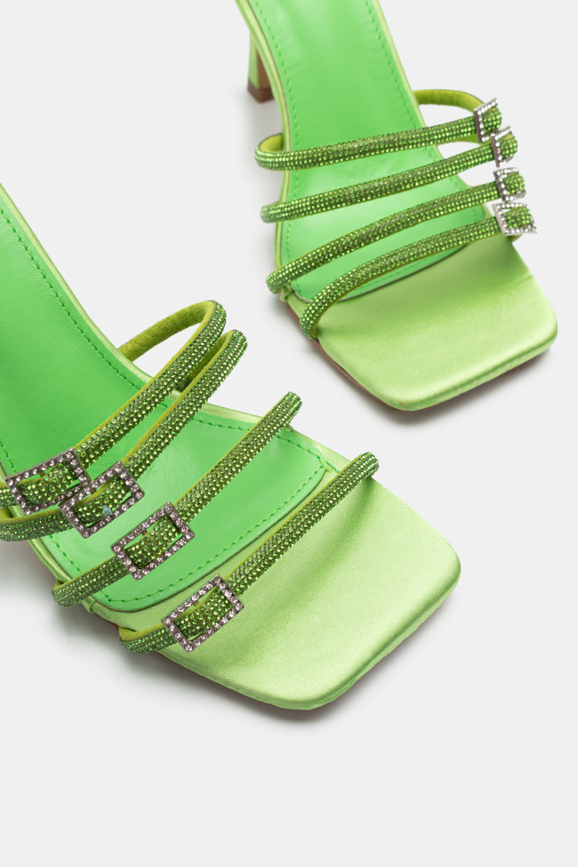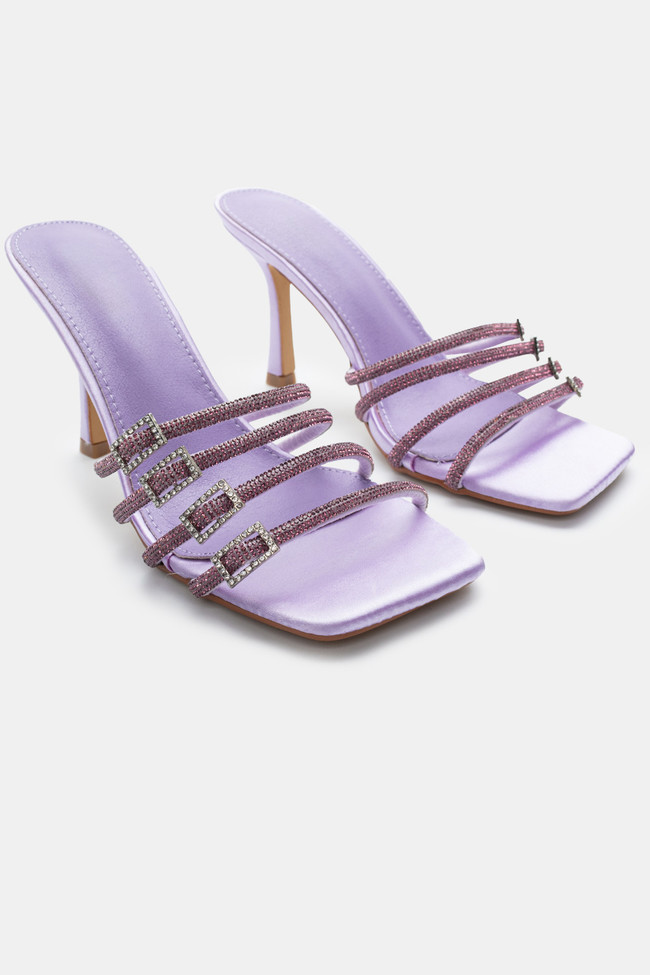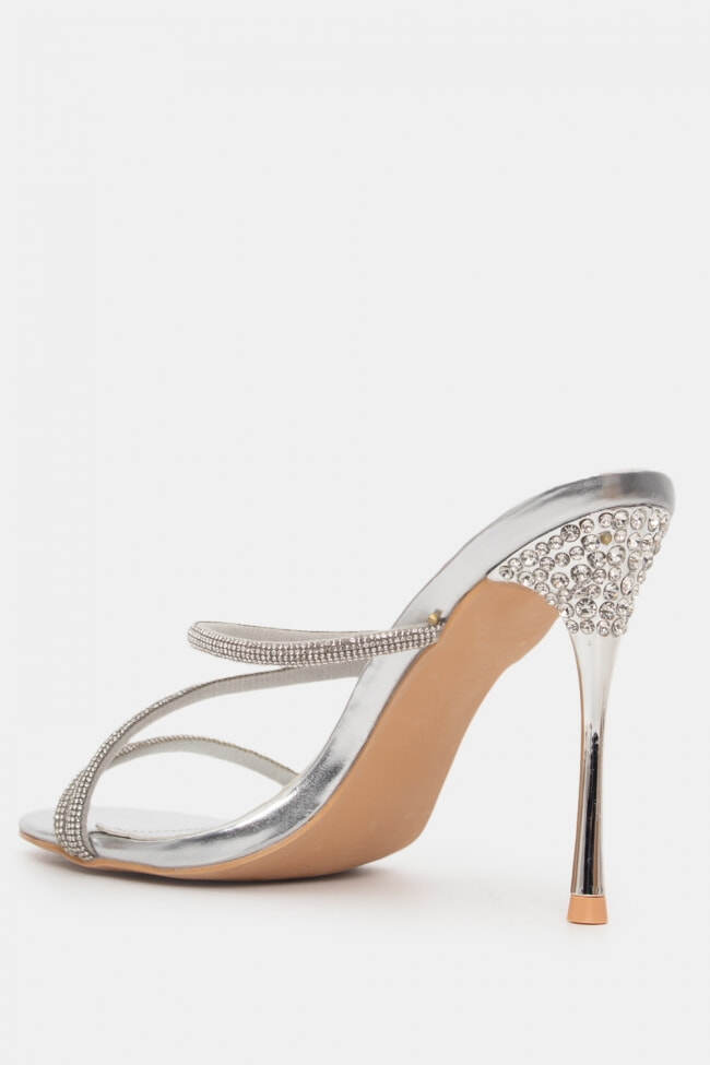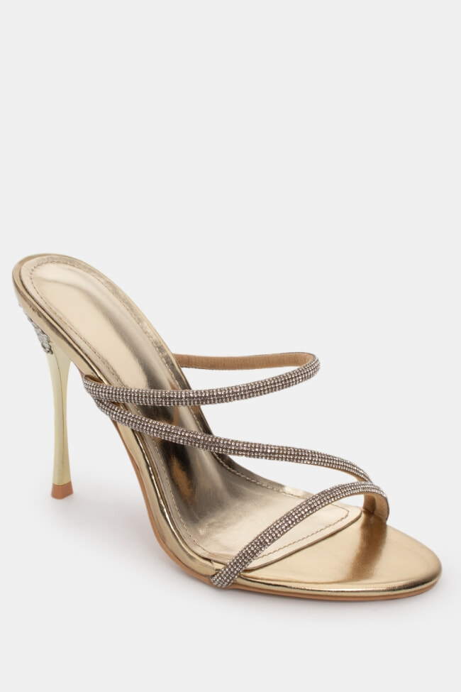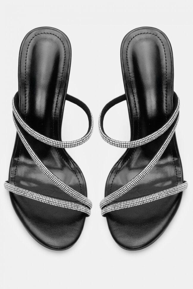 Mules din satin cu barete multiple din stras
