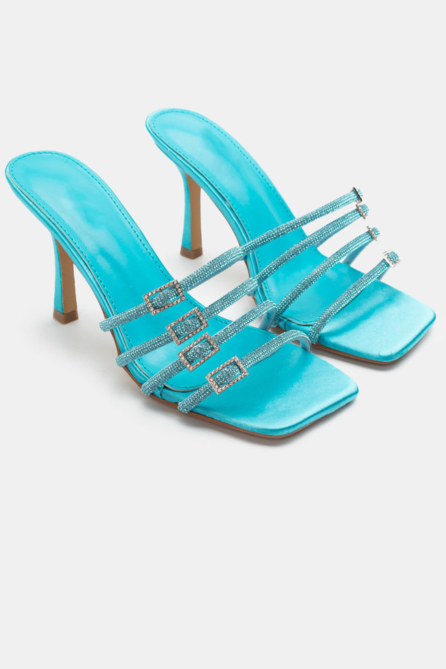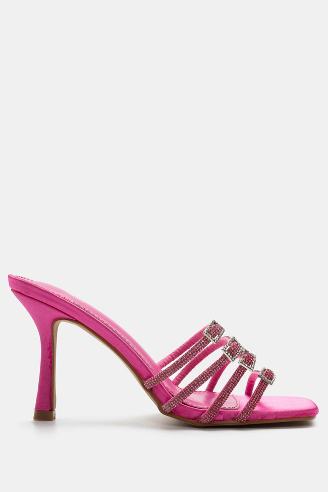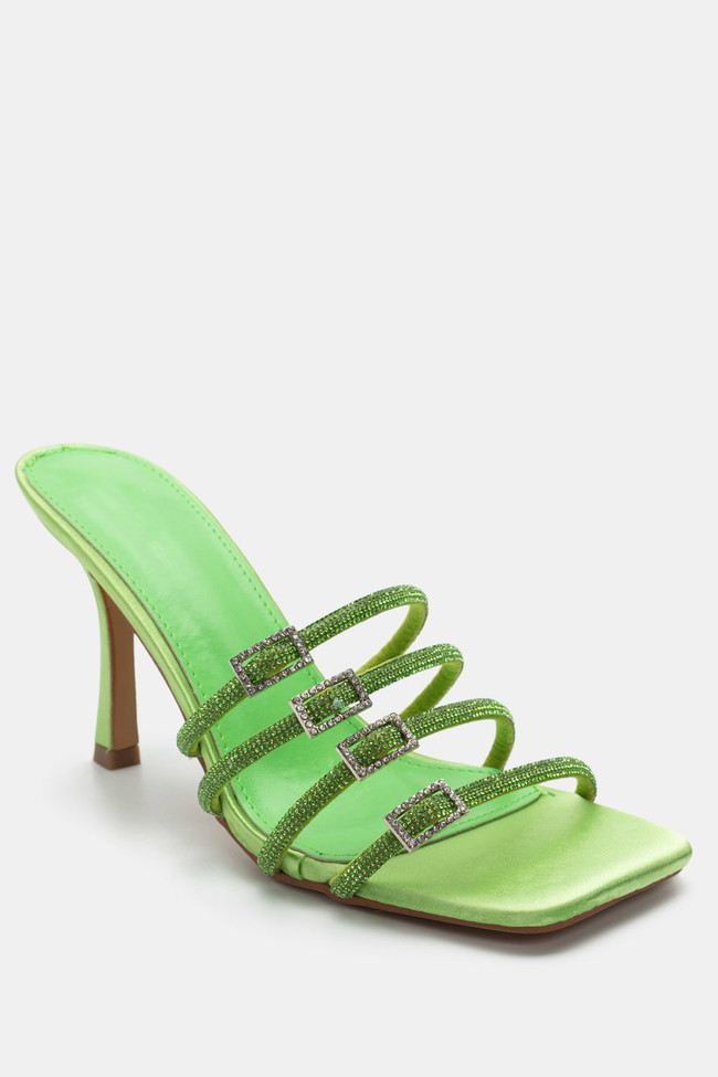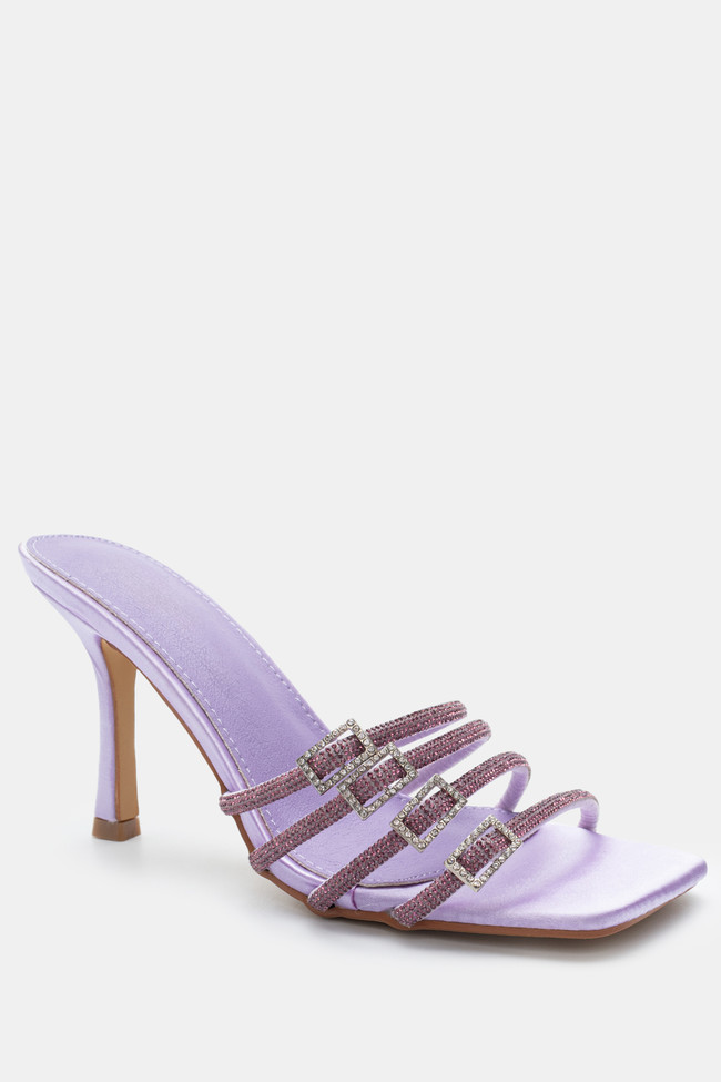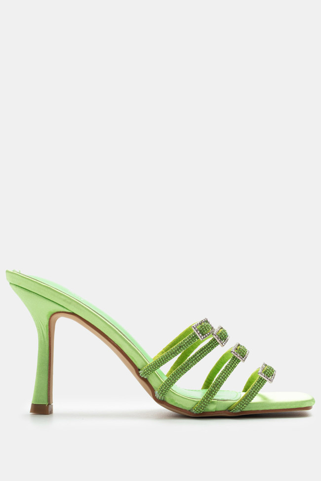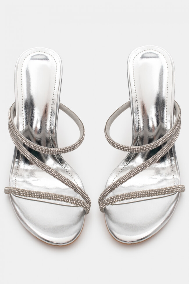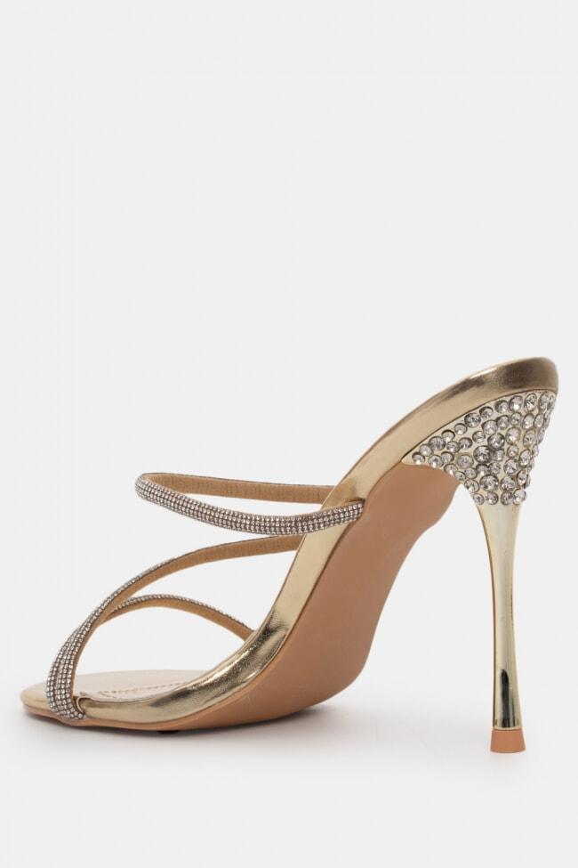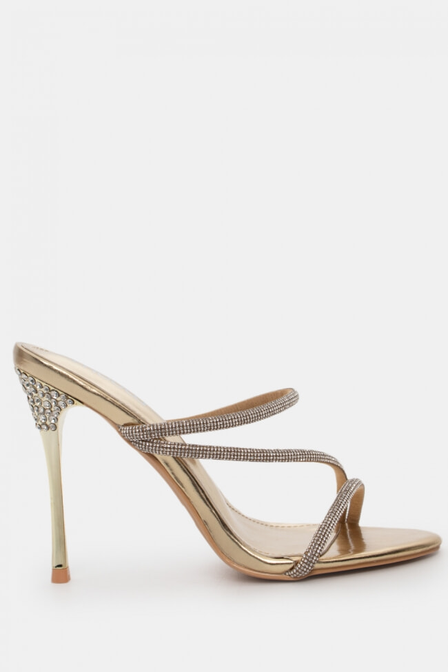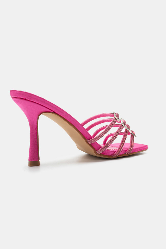 Mules din satin cu barete multiple din stras