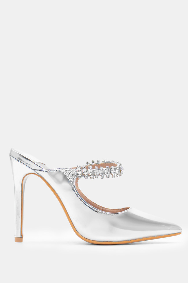 Mules Ascuțite cu Strass și Curea cu Pietre
