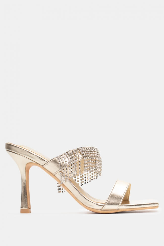- Mules pentru femei înălțate cu finisaj lăcuit și strasuri pentru nopți fără sfârșit!