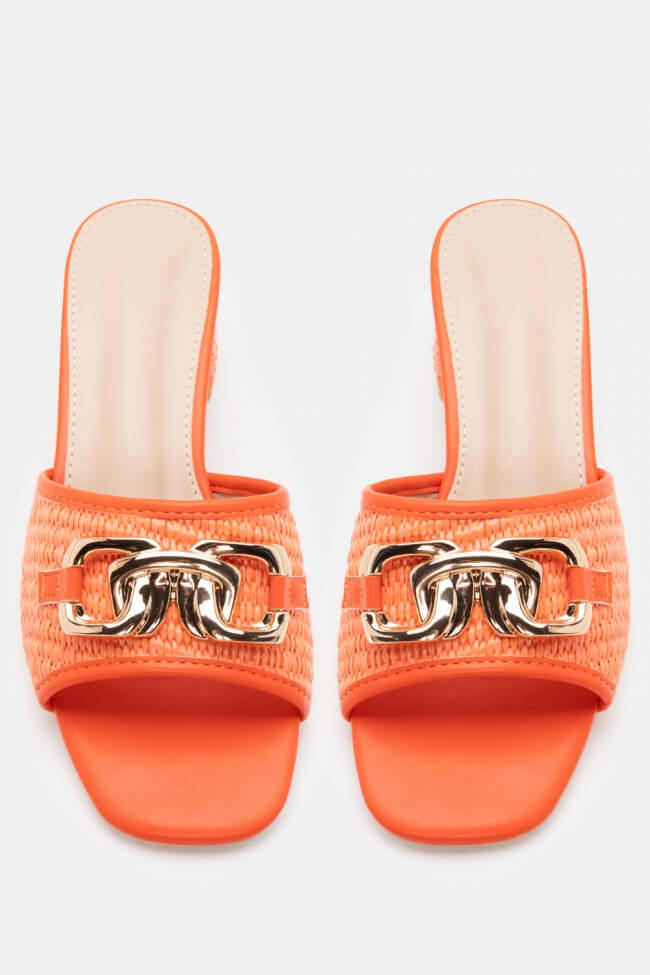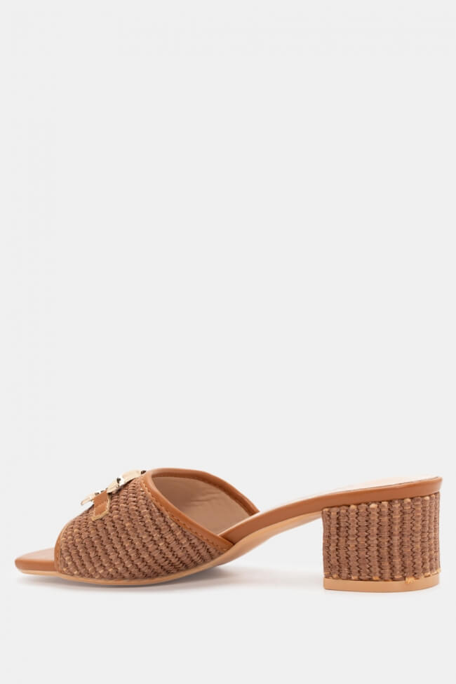 Mules with Metallic Ornament