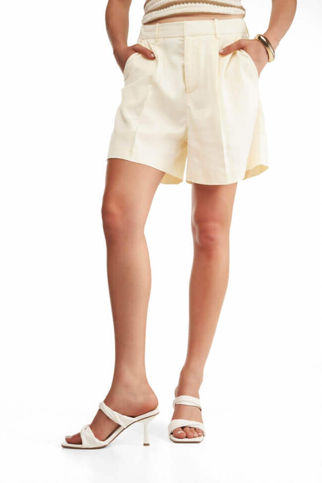 - Linen co-ord set in pastel colors & bold bag for minimal glam.