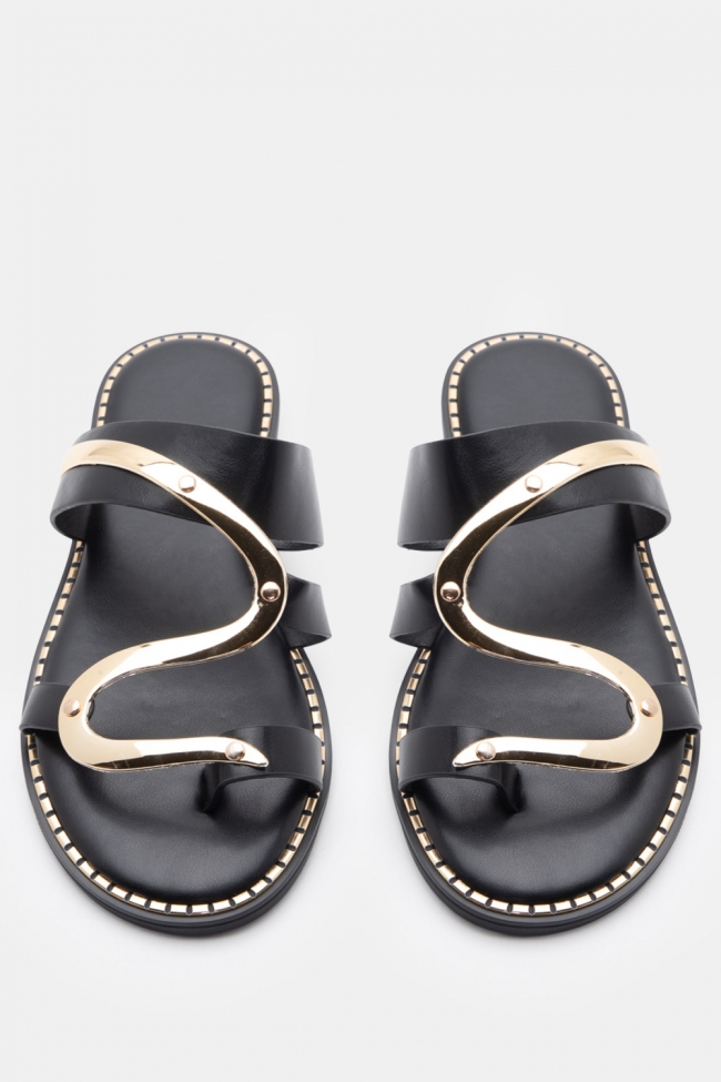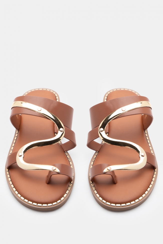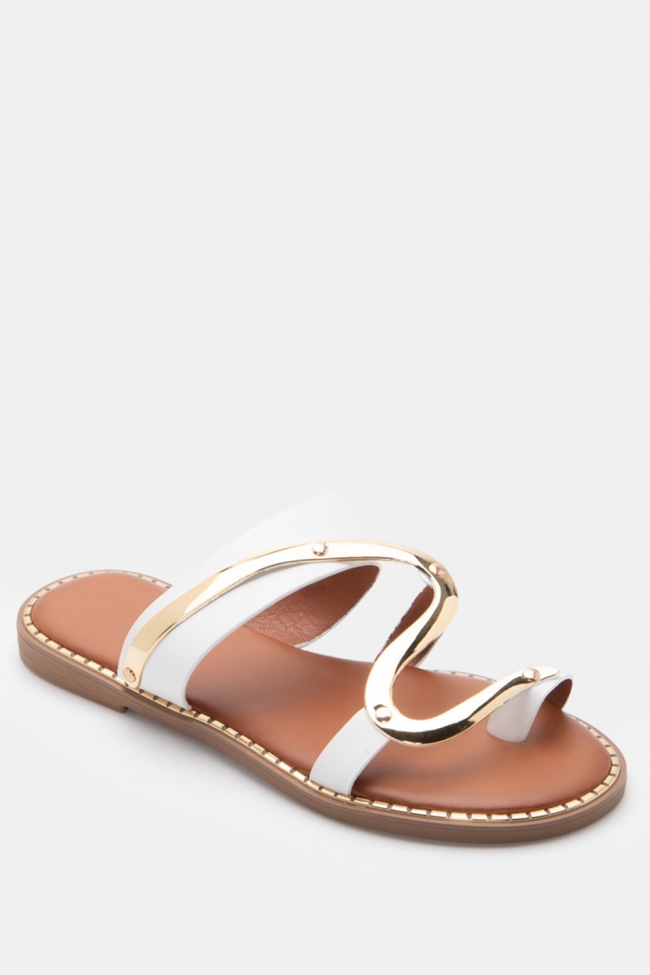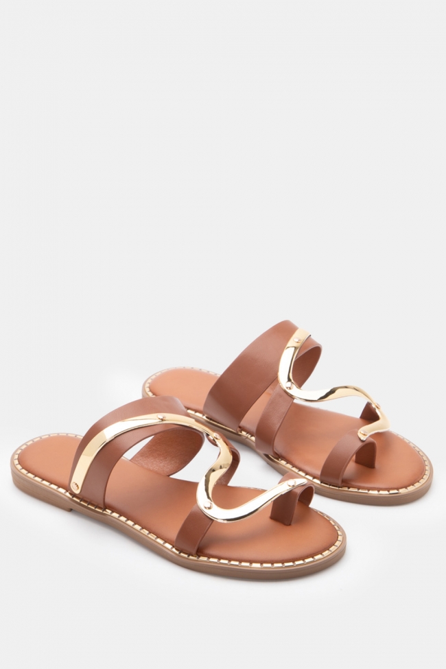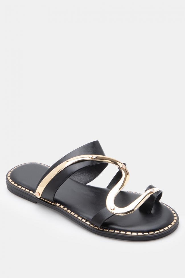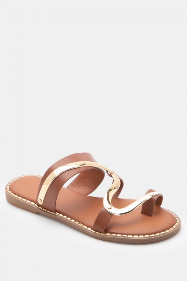 Flat Sandals with Metallic Detail