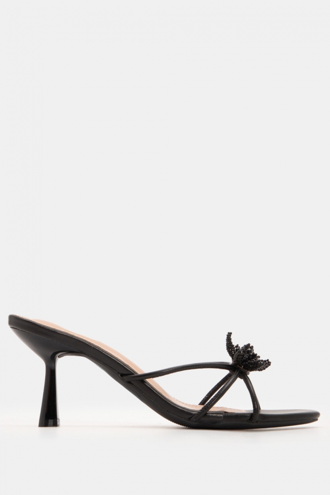 Mules with Transparency & Decorative Rhinestone Bow