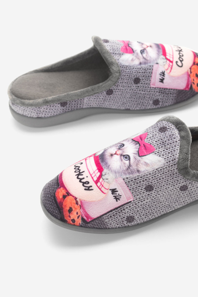 Pantofole Pelose con Disegno Gattino