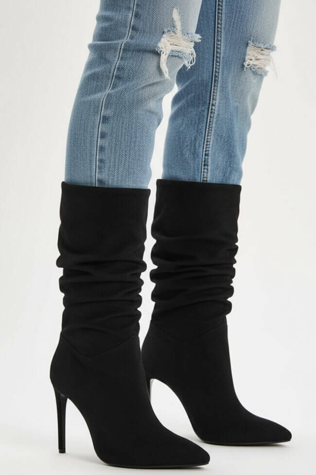 Sharp-Toed Boots with Ruching