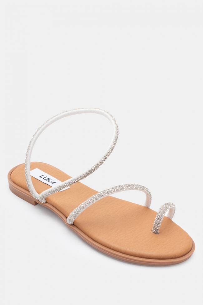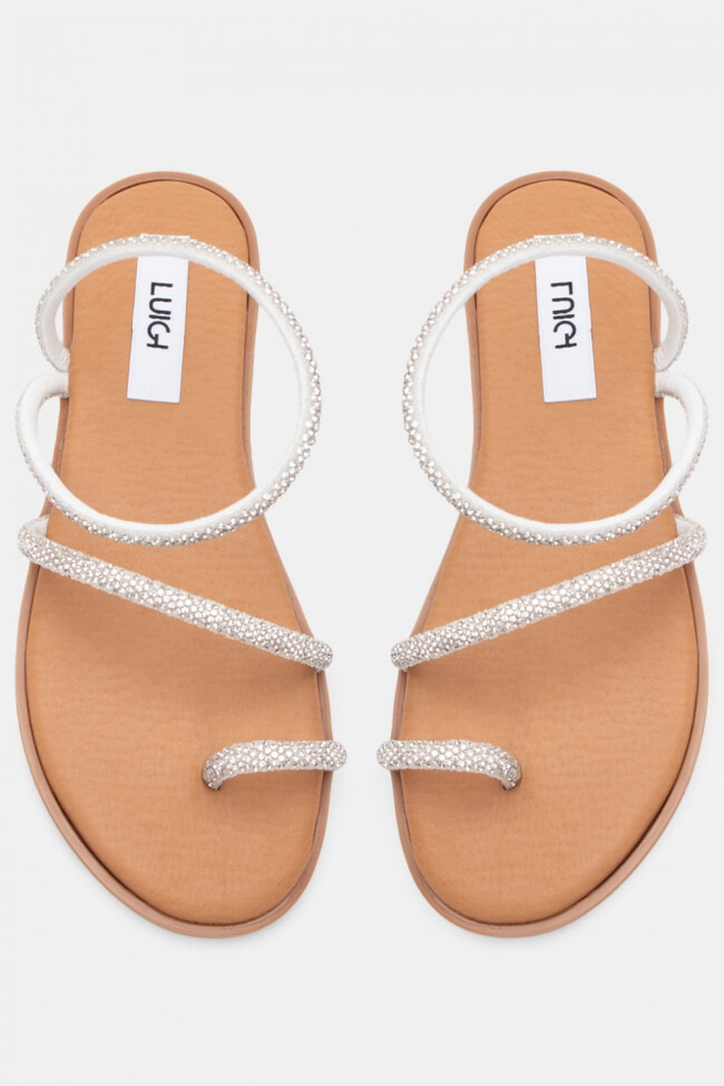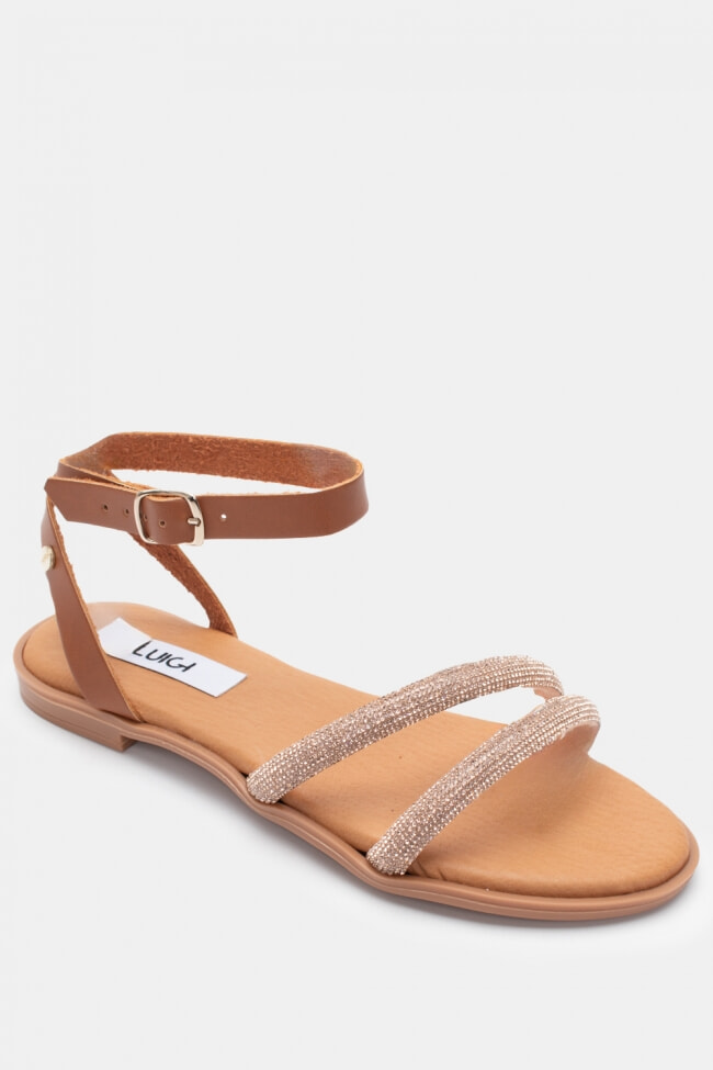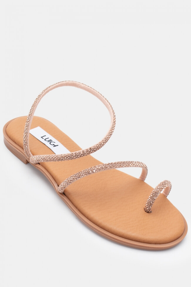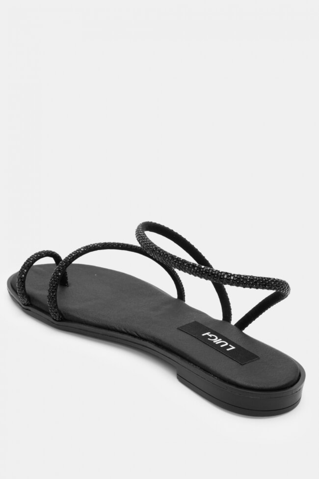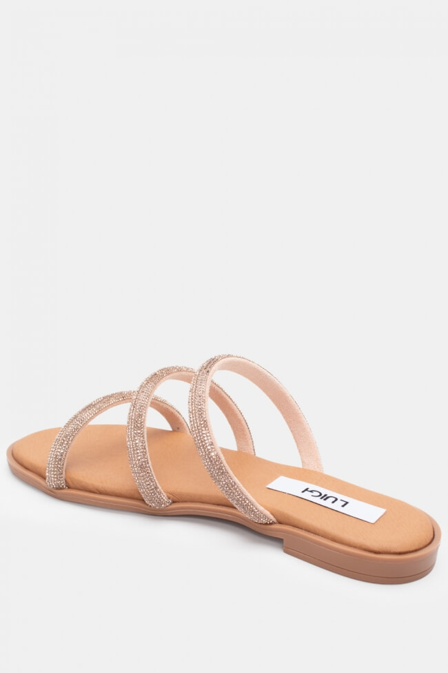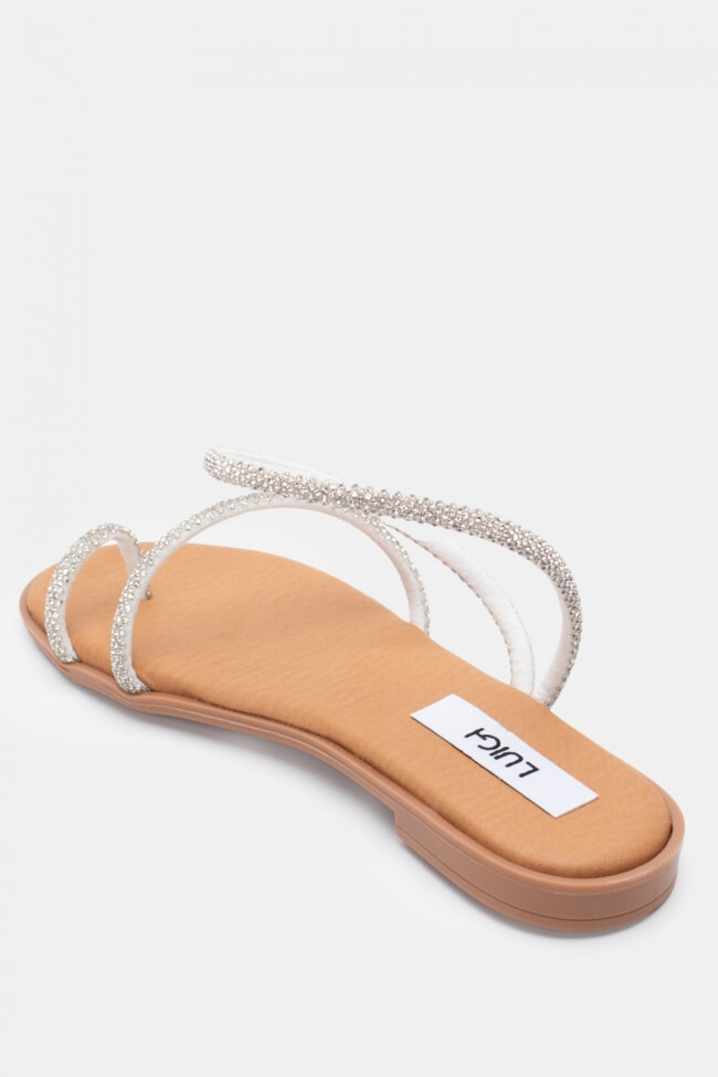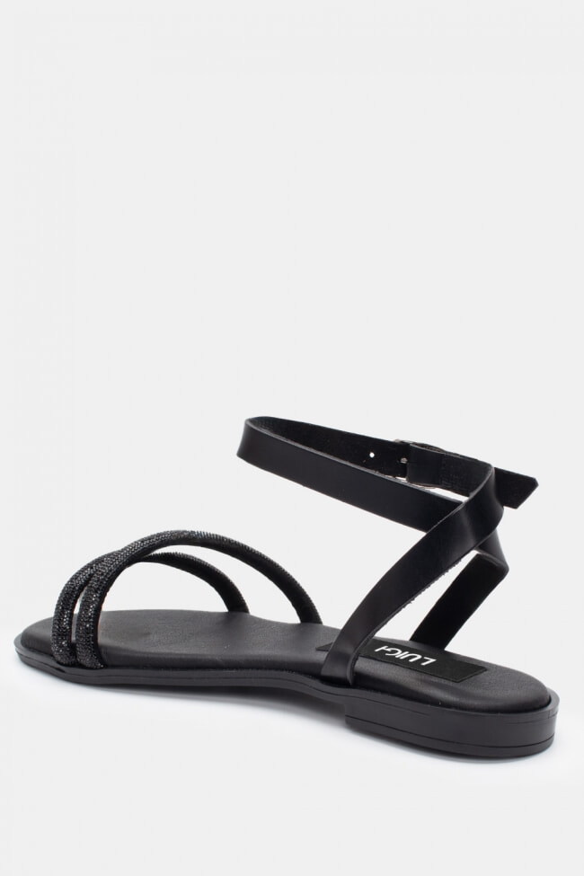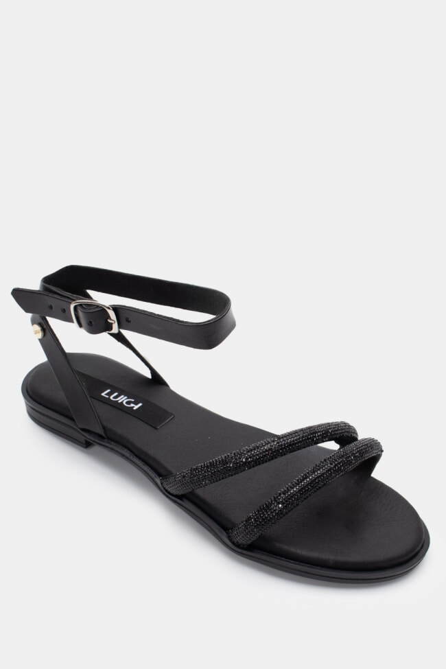 LUIGI DESIGN- Flat Sandals with Diagonal Strap & Strass