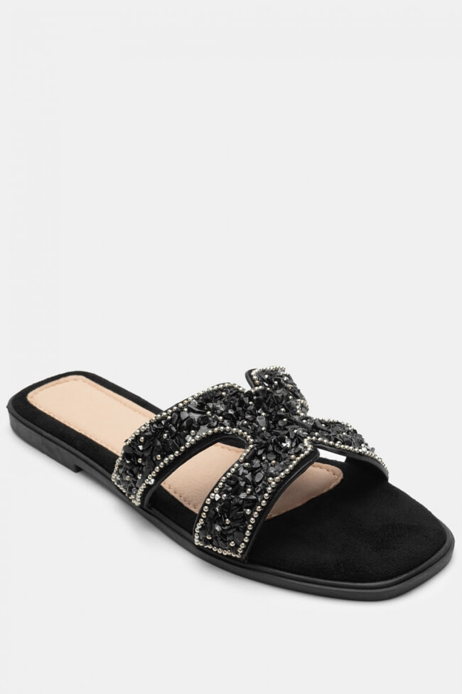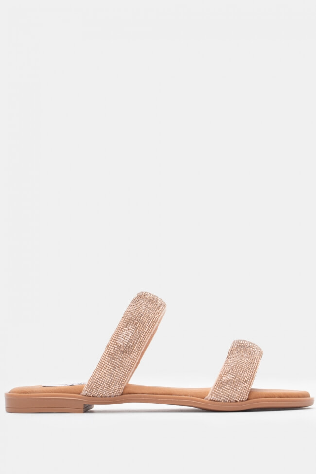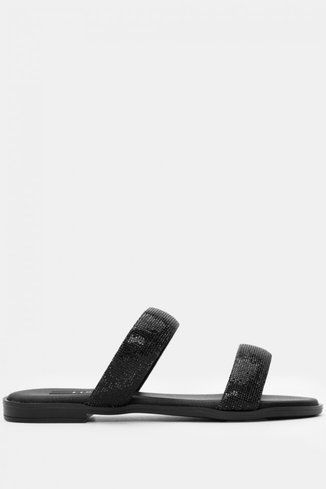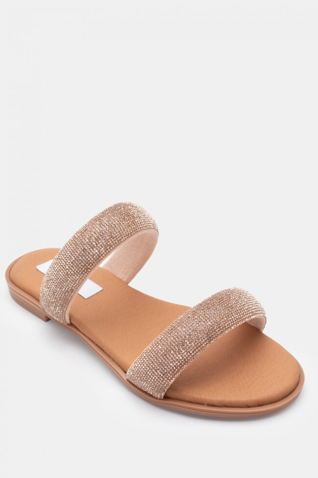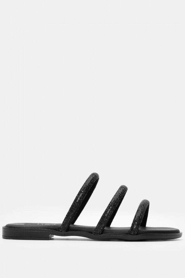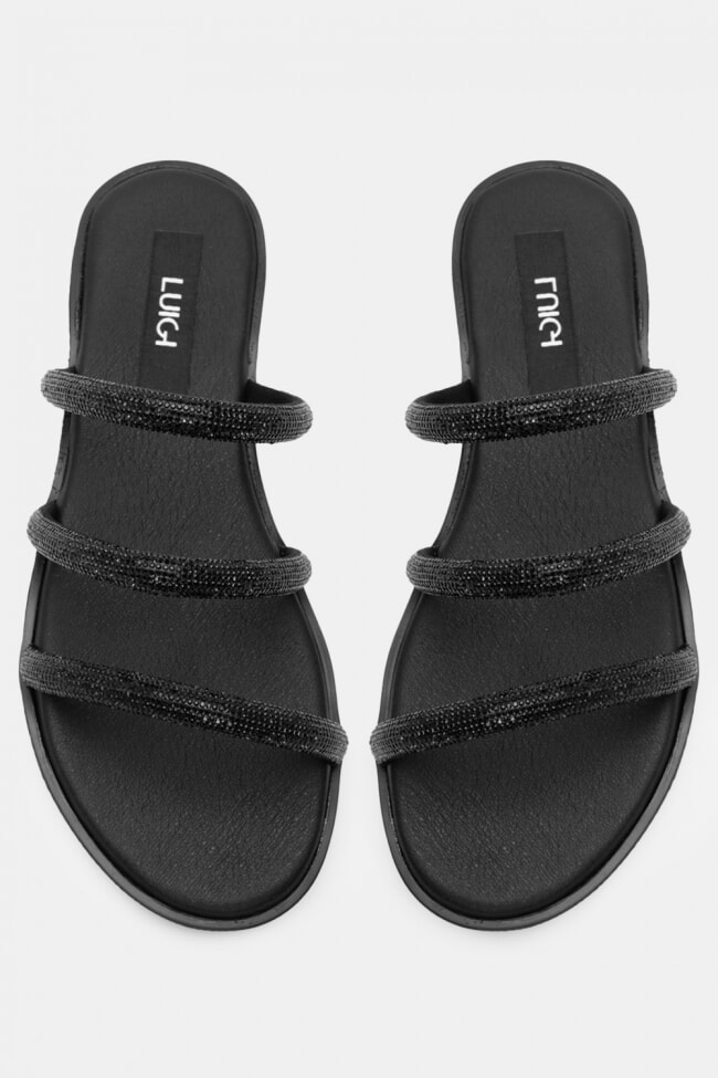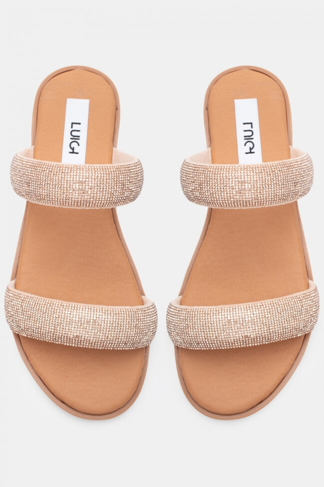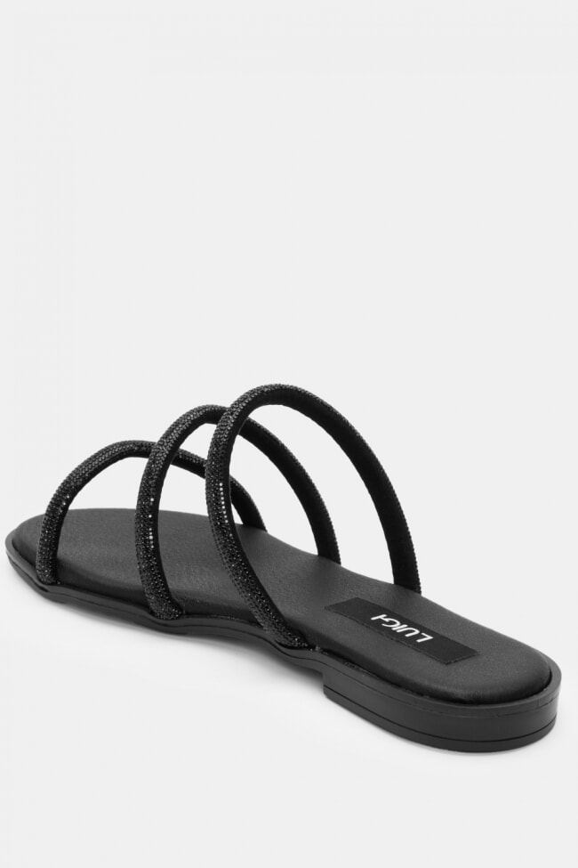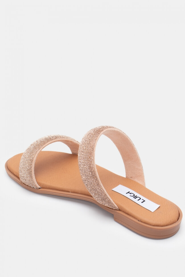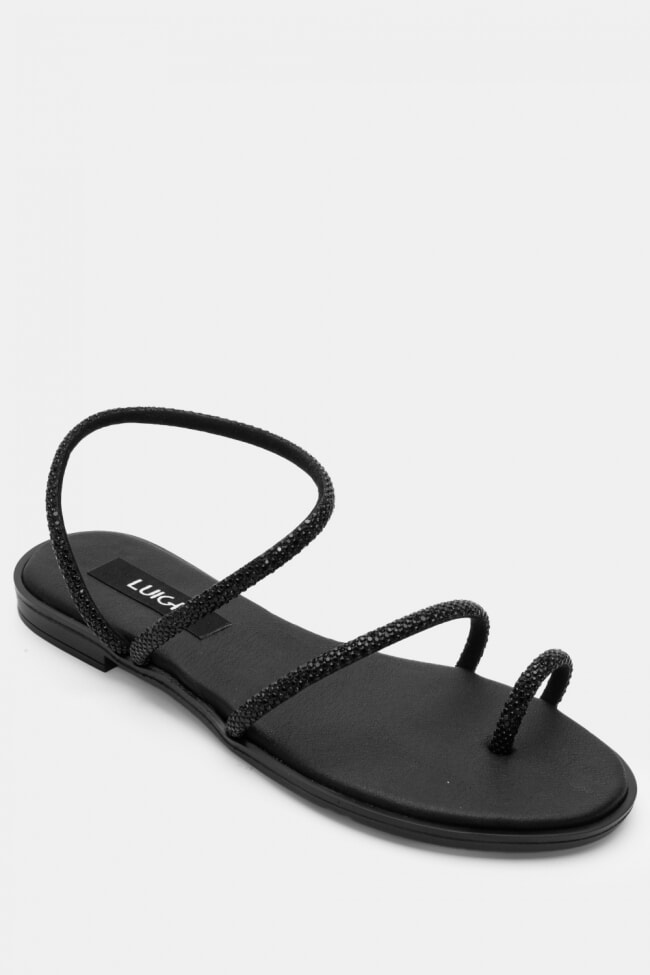 LUIGI DESIGN- Flat Sandals with Diagonal Strap & Strass