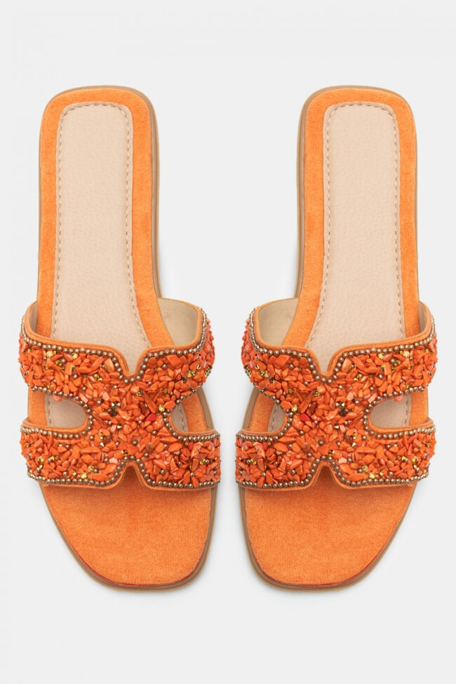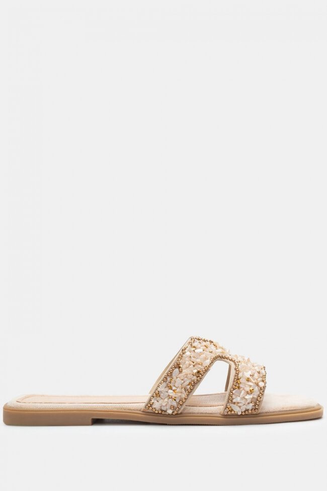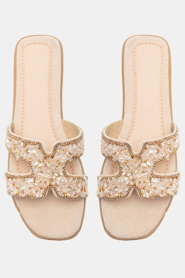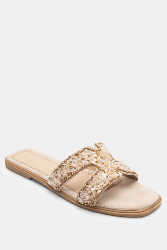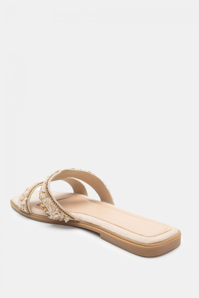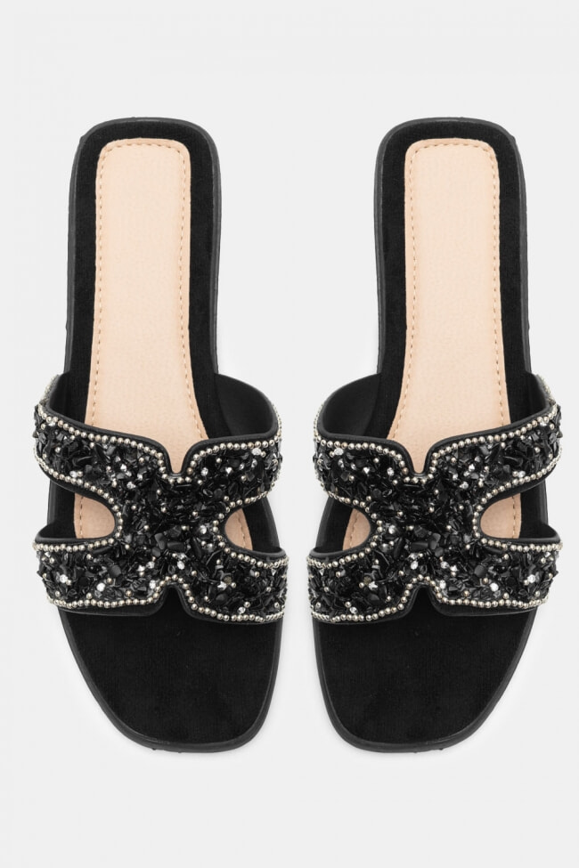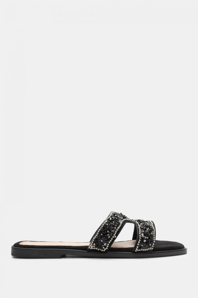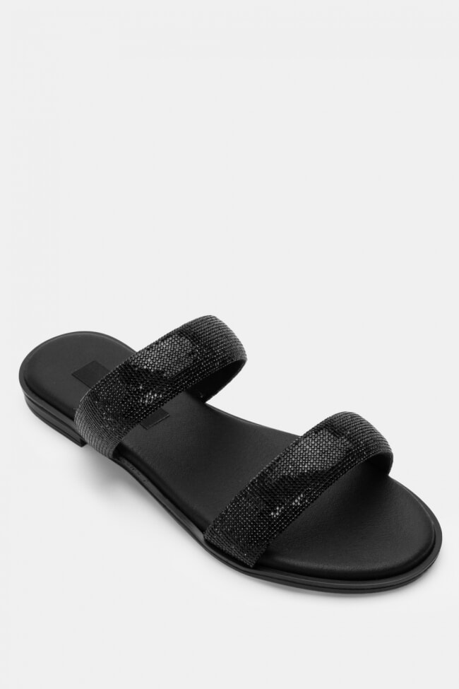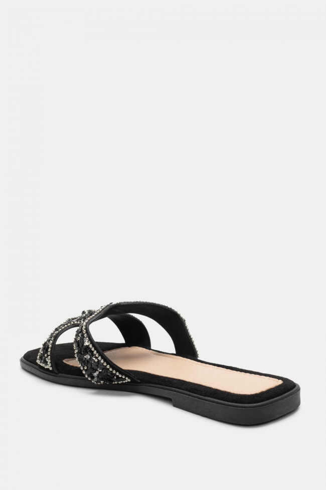 LUIGI DESIGN- Flat Sandals with Diagonal Strap & Strass