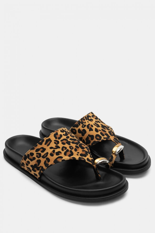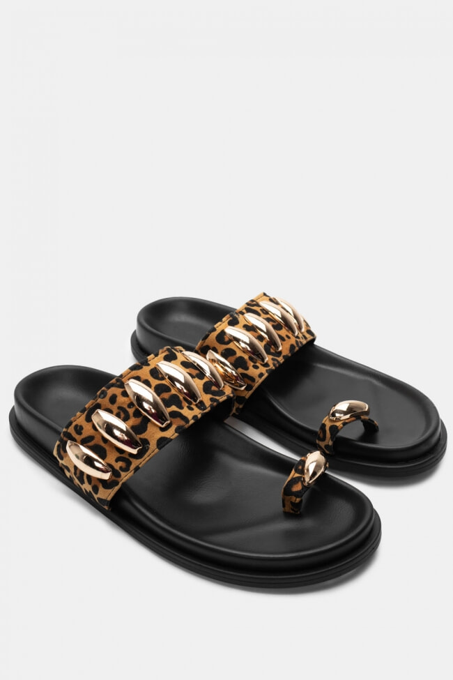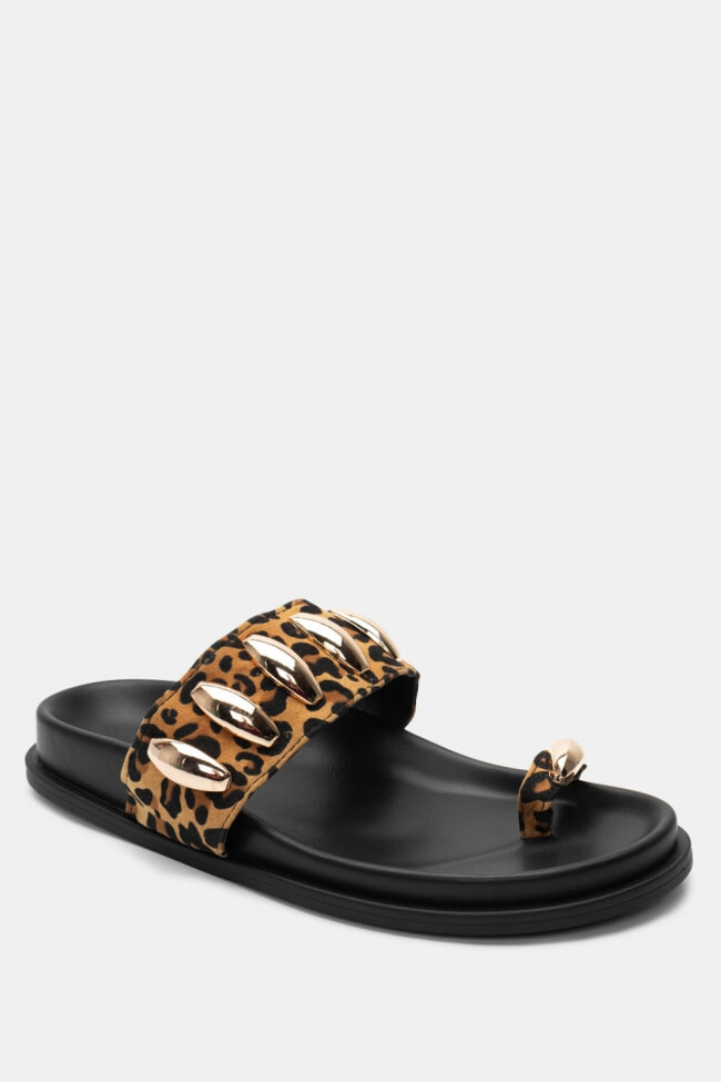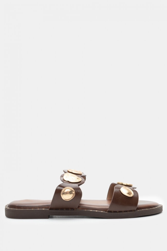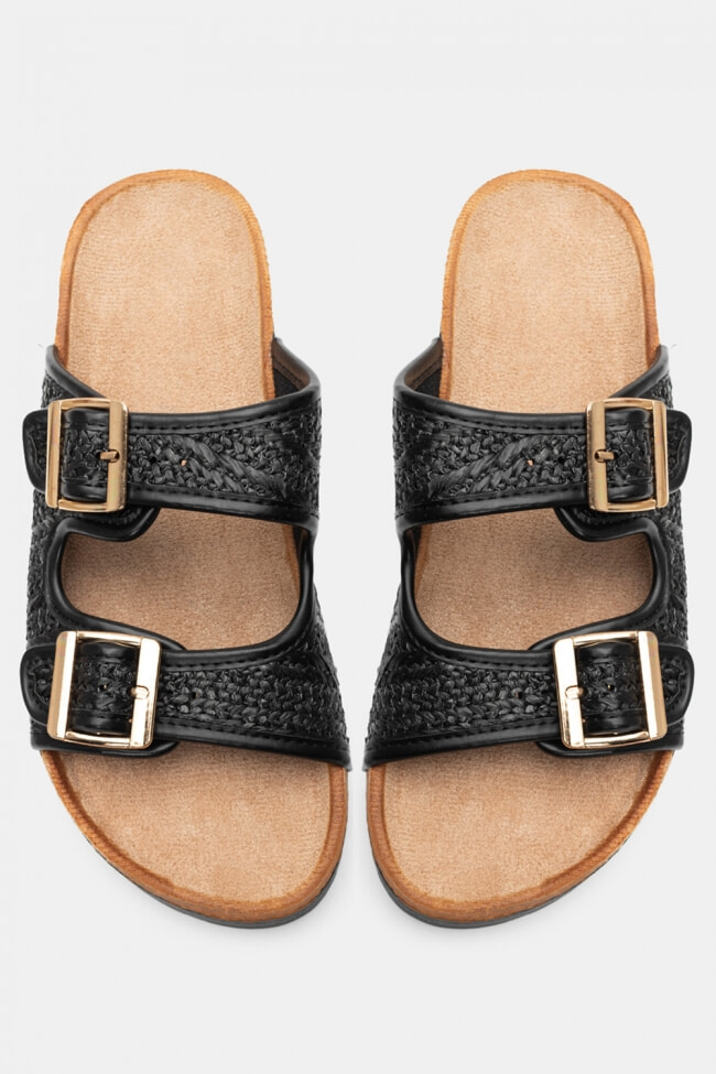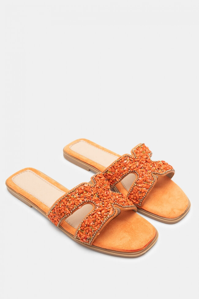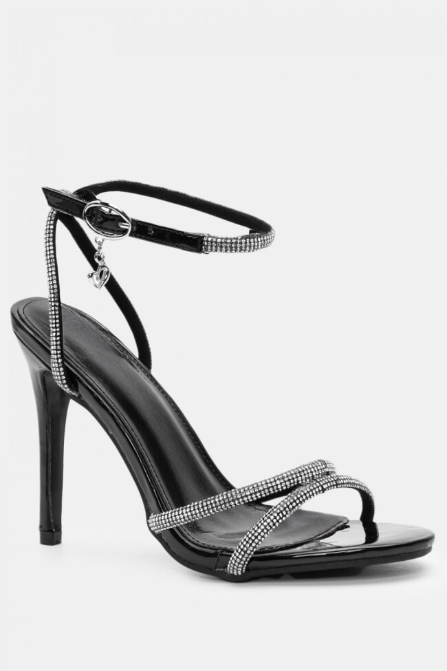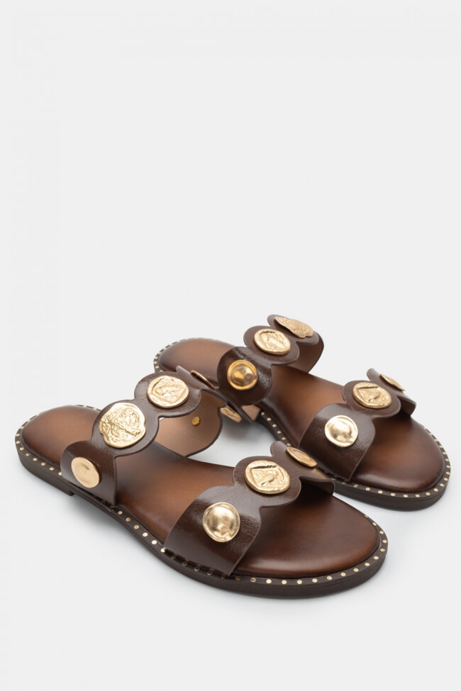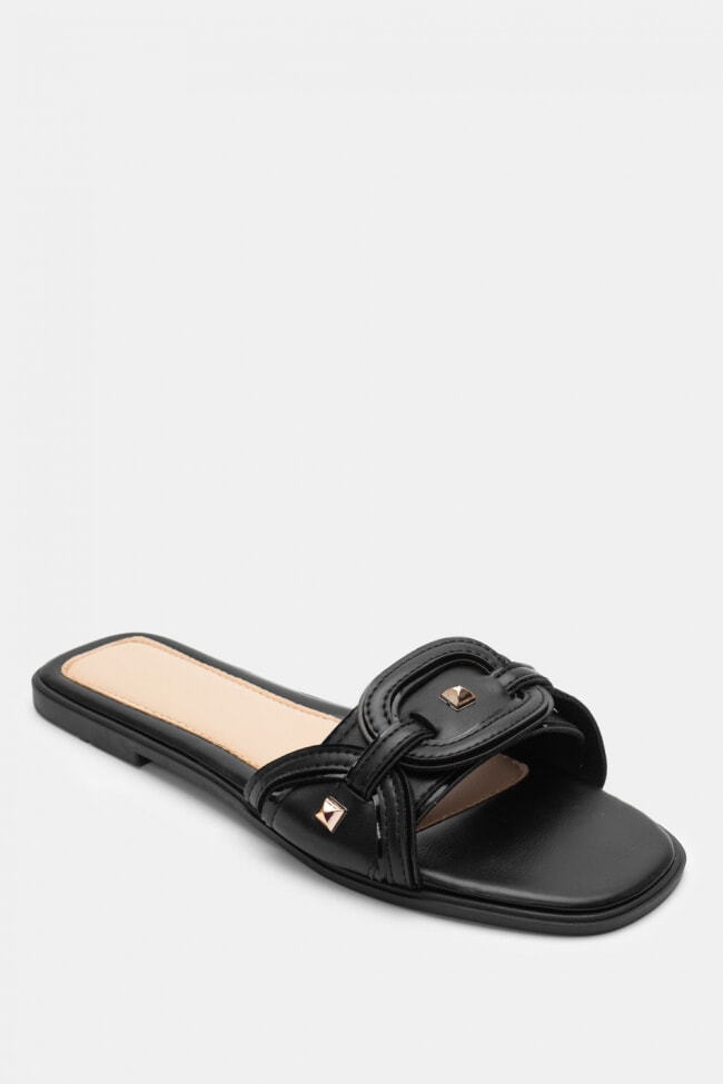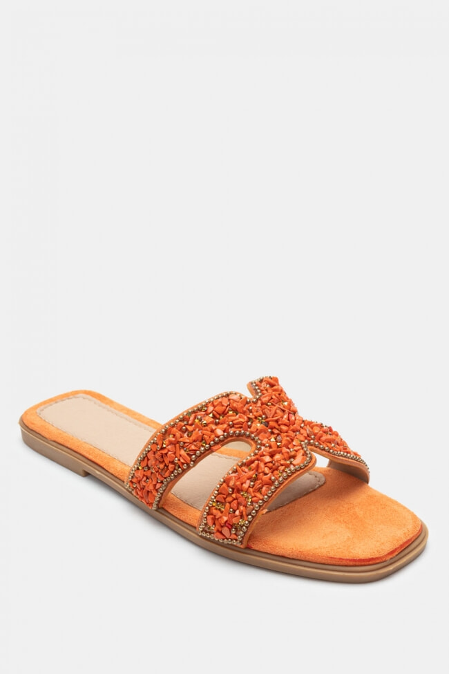 LUIGI DESIGN- Flat Sandals with Diagonal Strap & Strass