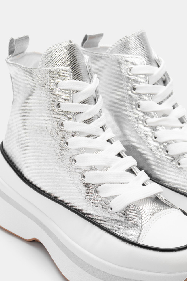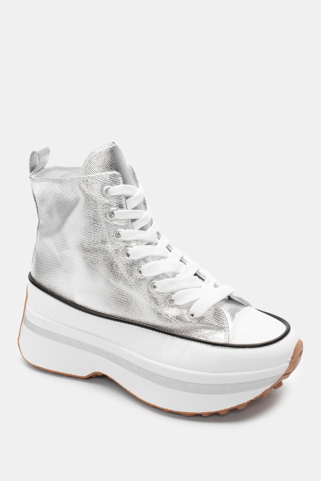 Sneakers Bicolore con Rete di Paillettes Decorate