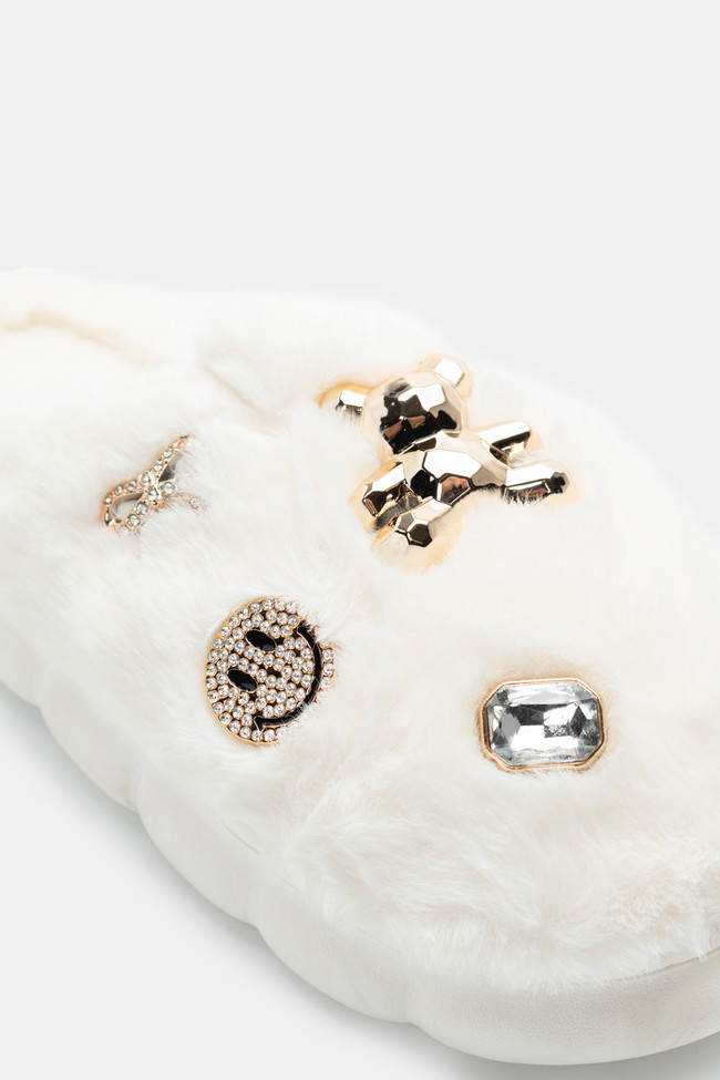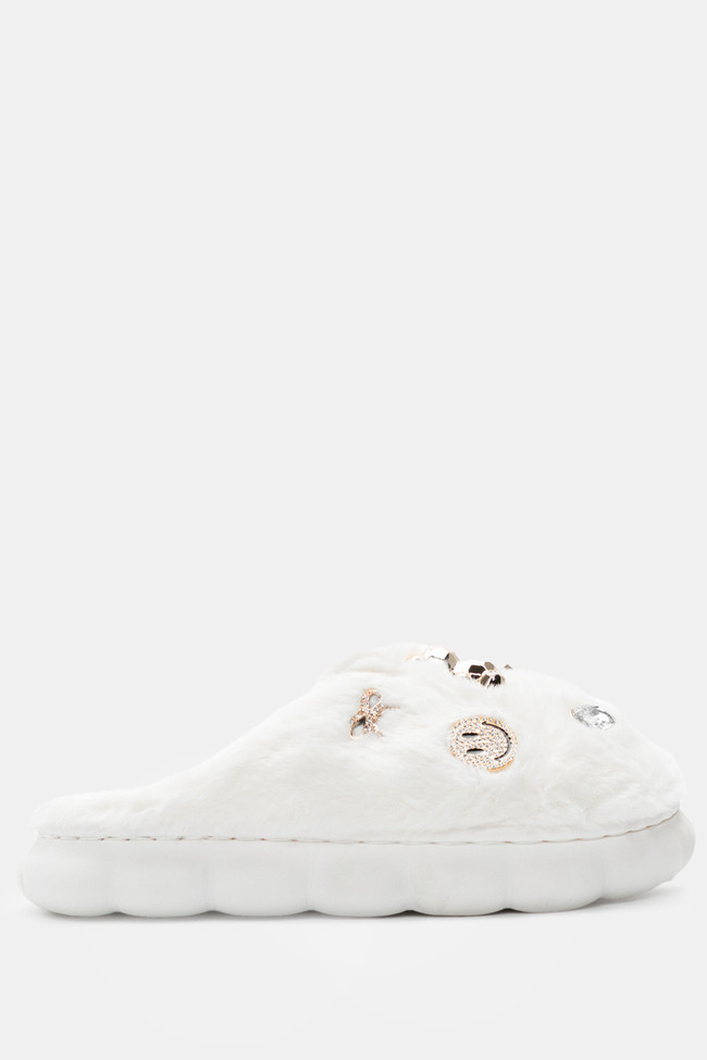 Остри обувки на висок ток с отворена пета, прозрачни елементи и страсс
