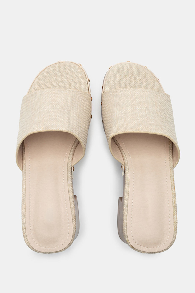 Mules con Paglia & Fibbia Decorativa di Strass