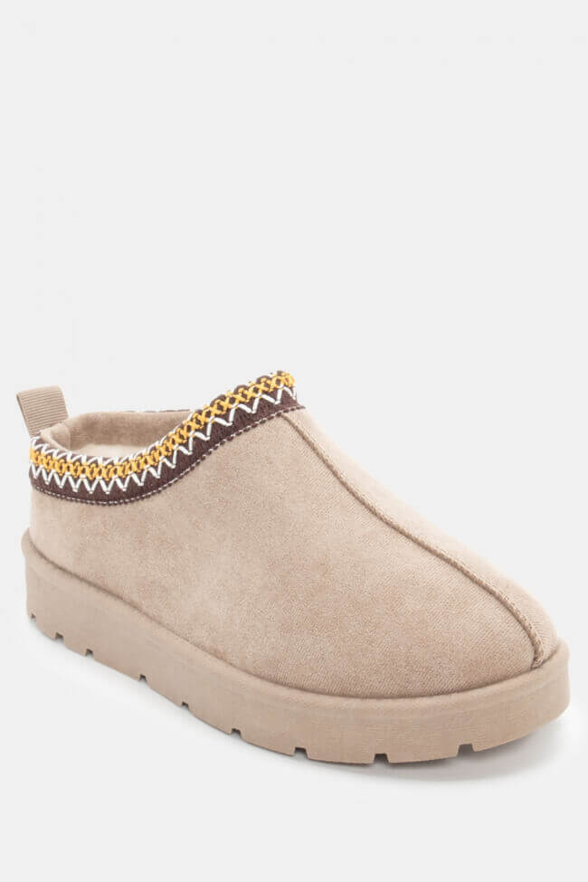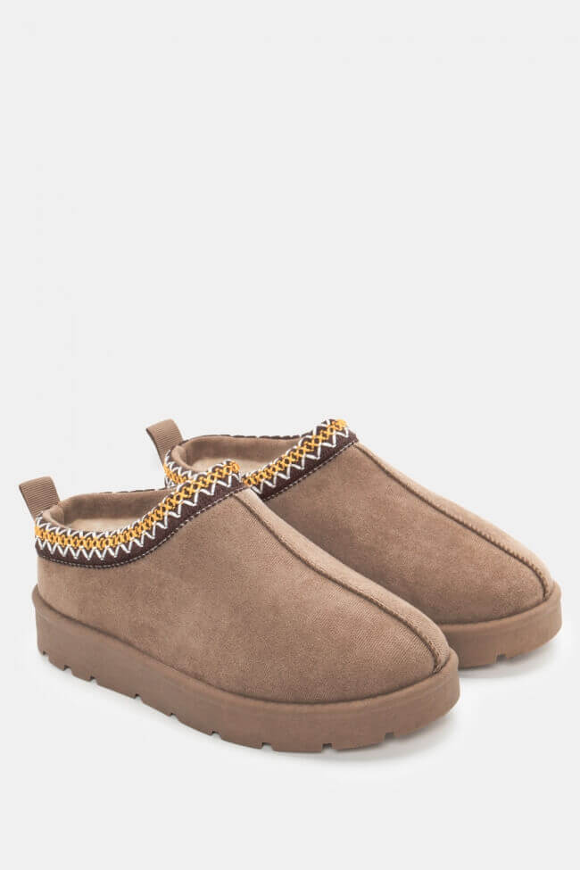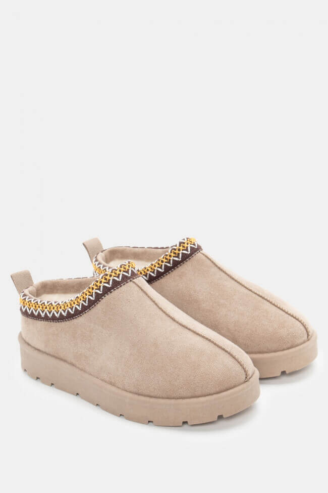 Pantofi de casă cu talpă dublă și căptușeală interioară din blană