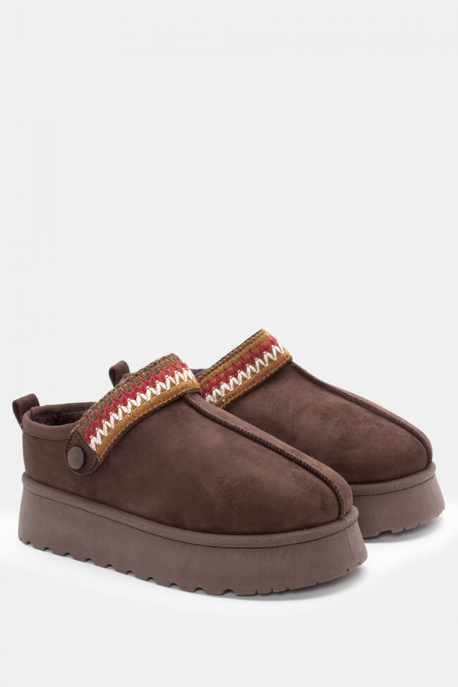 Pantofi de casă cu talpă dublă și căptușeală interioară din blană