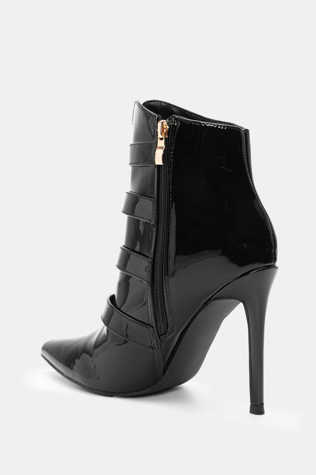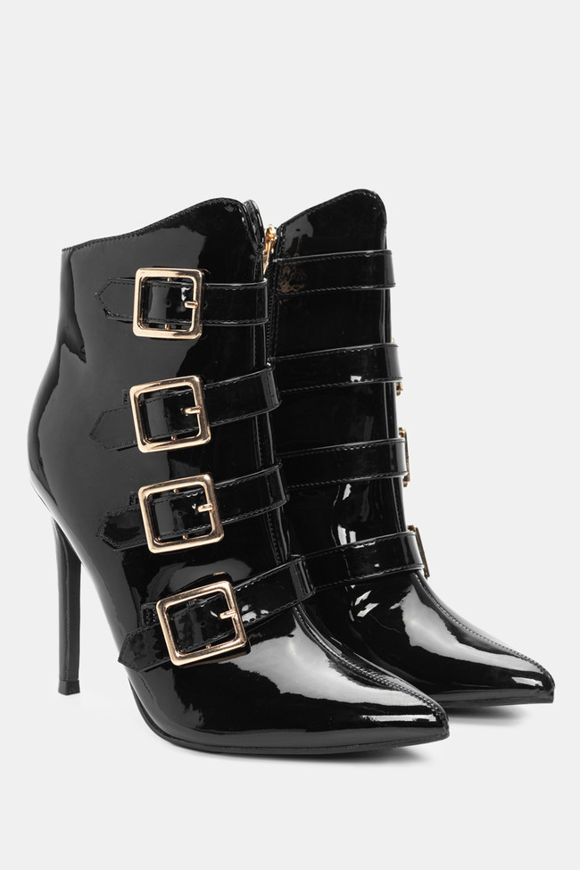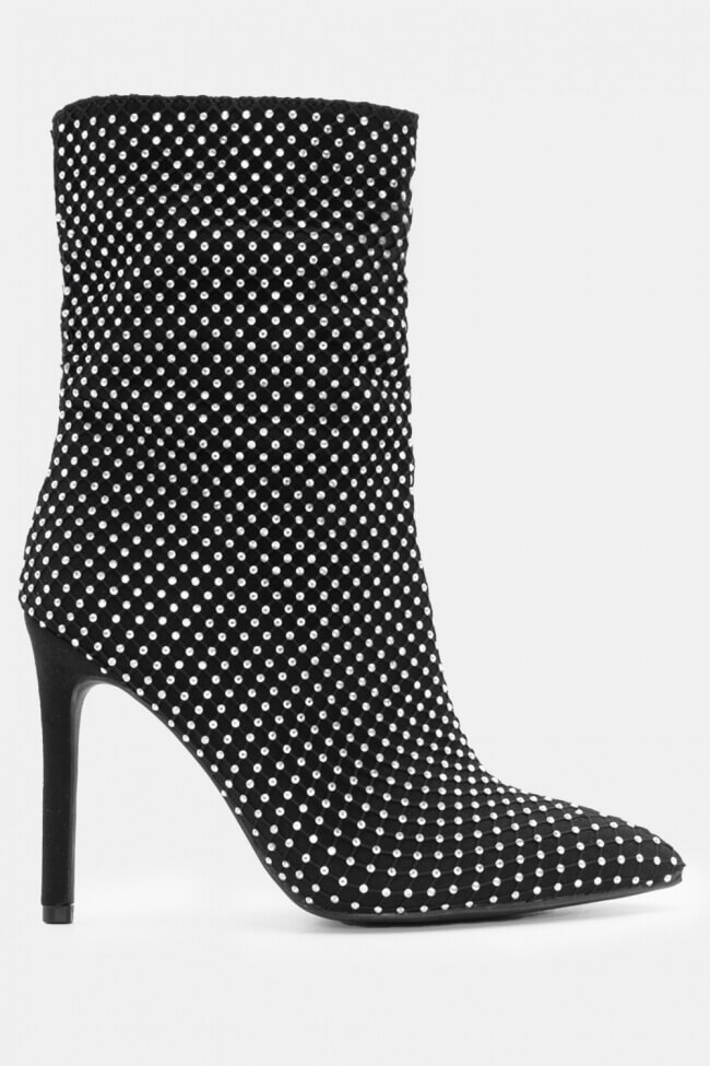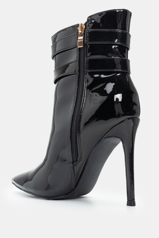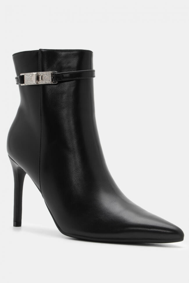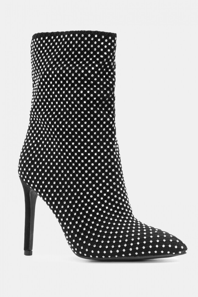 Botine cu Vârf Ascuțit cu Curea Decorativă & Strass