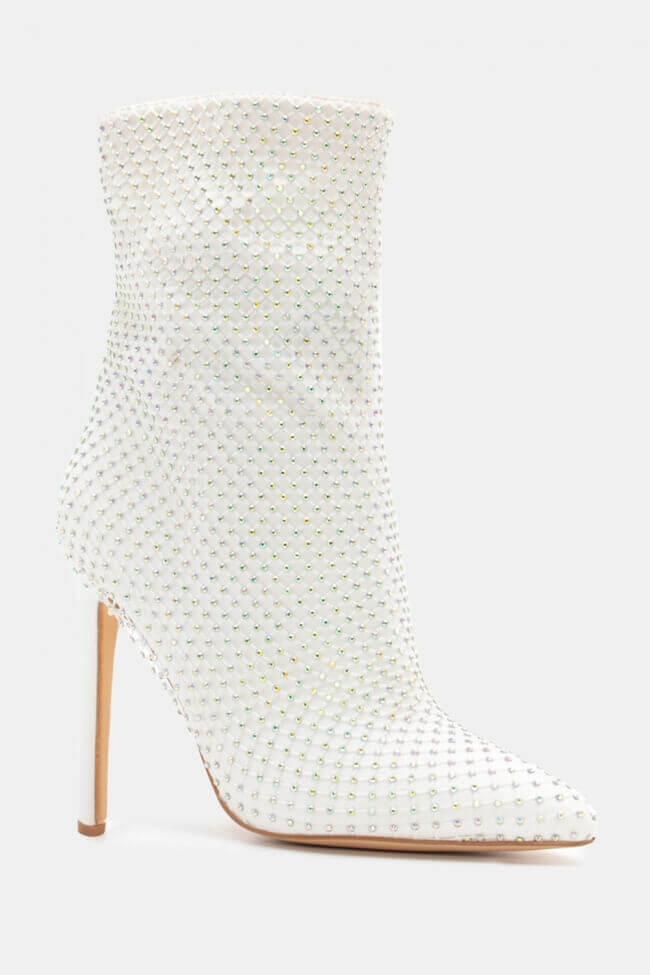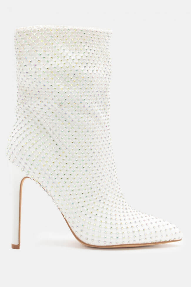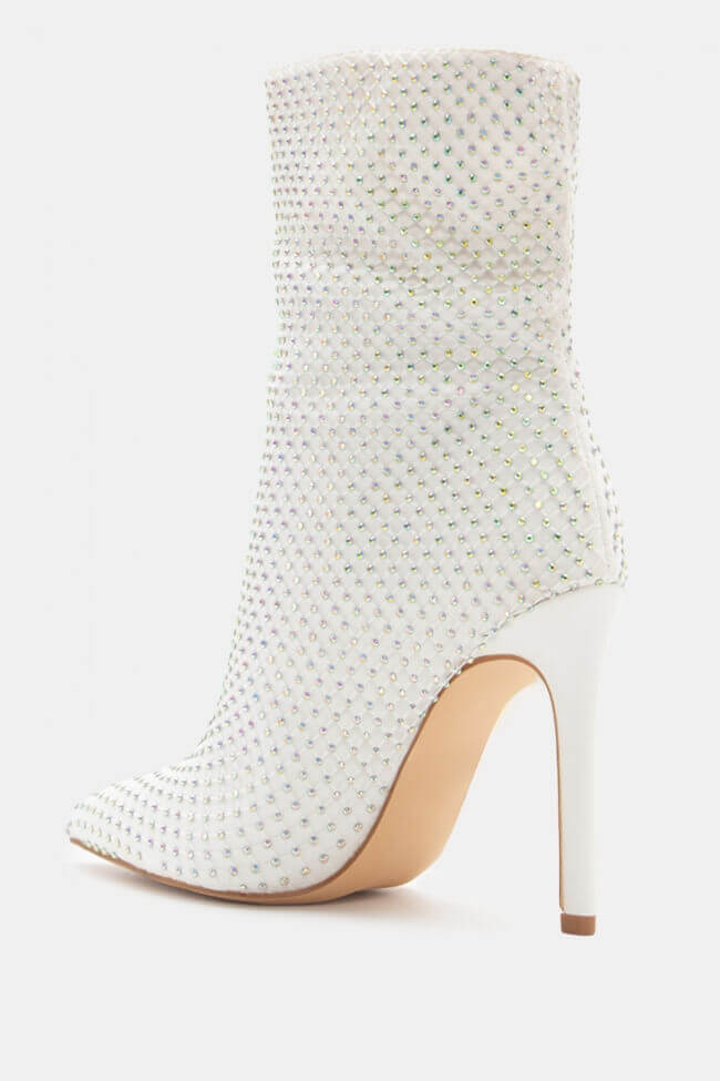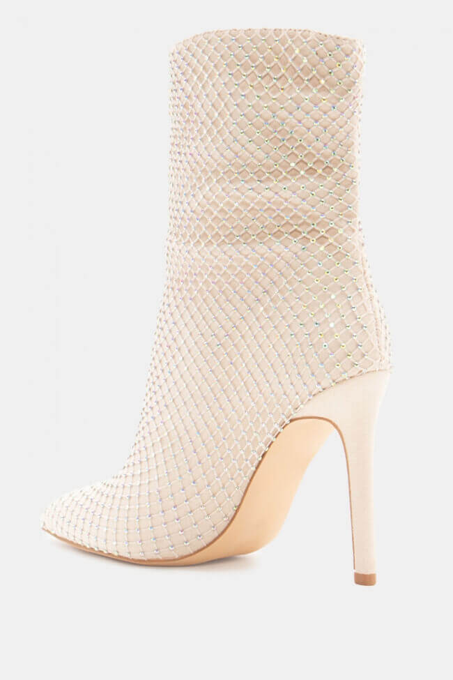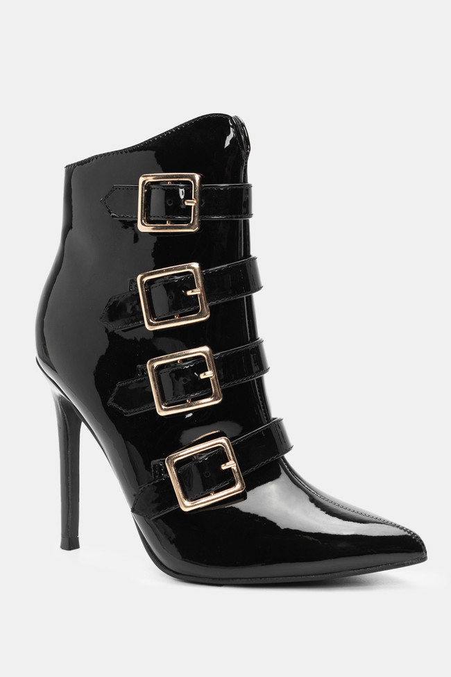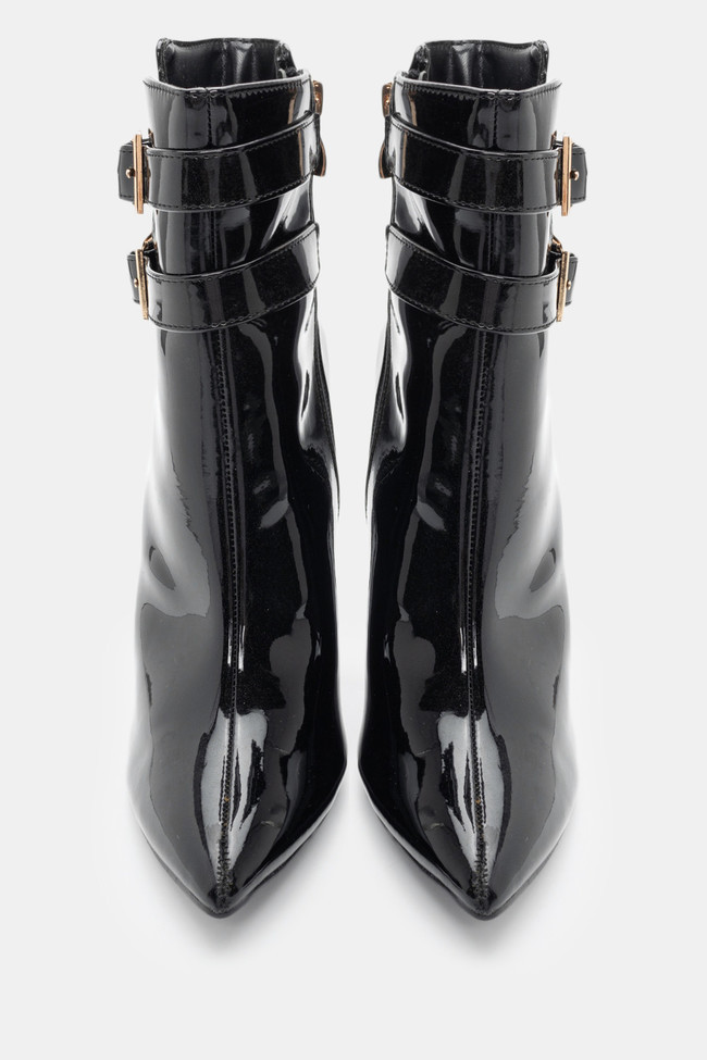 Botine cu Vârf Ascuțit cu Curea Decorativă & Strass