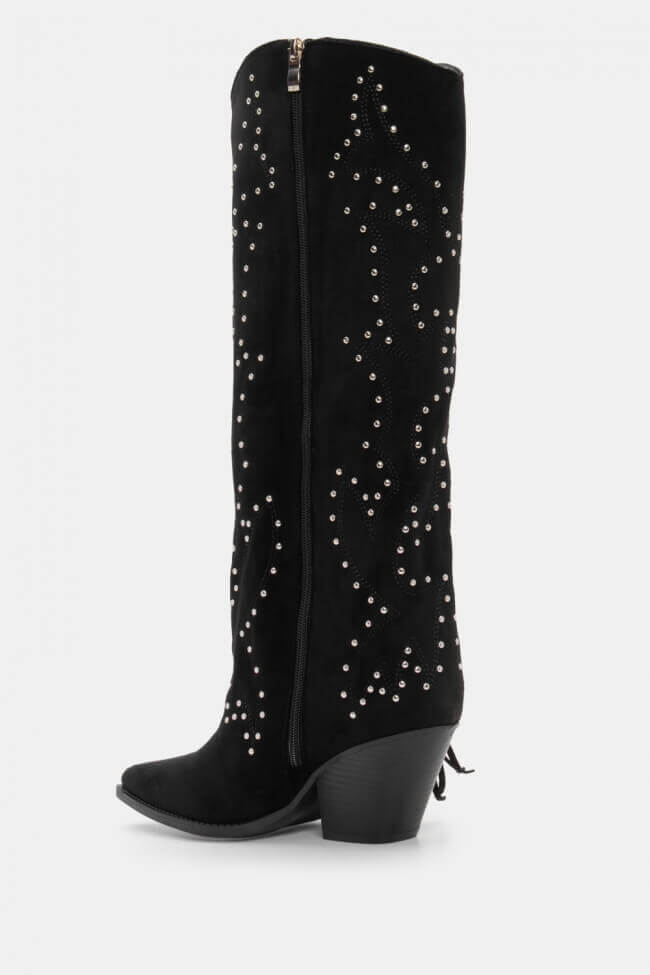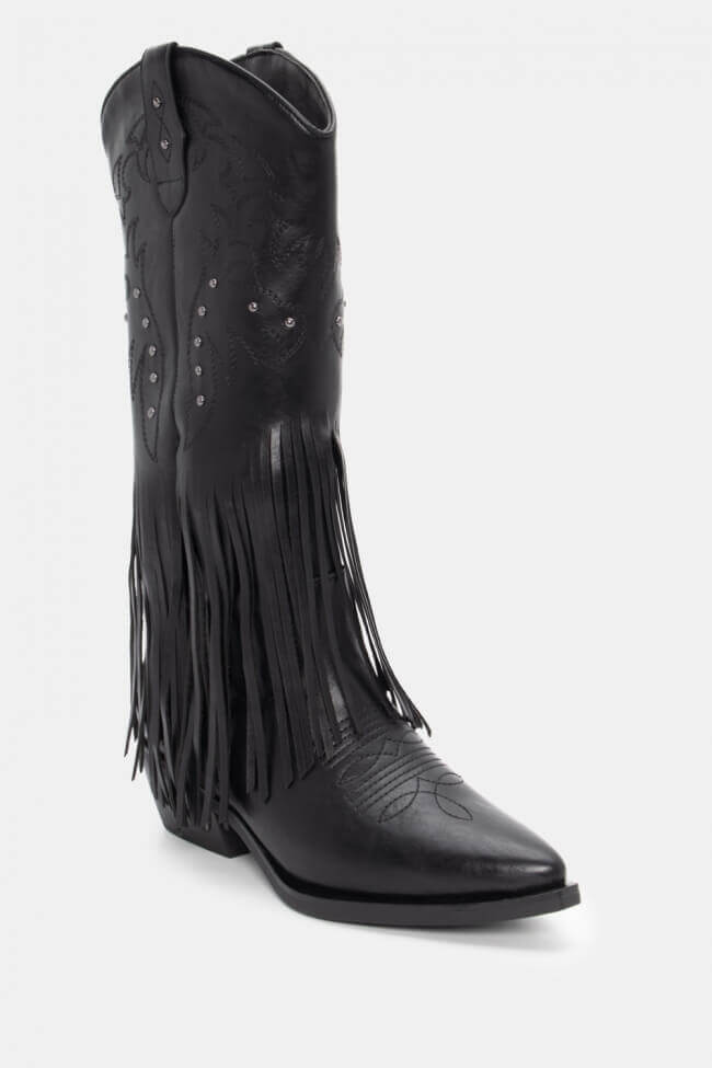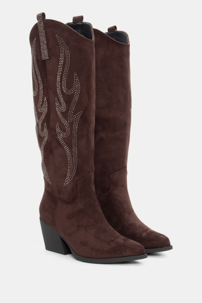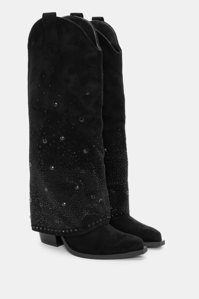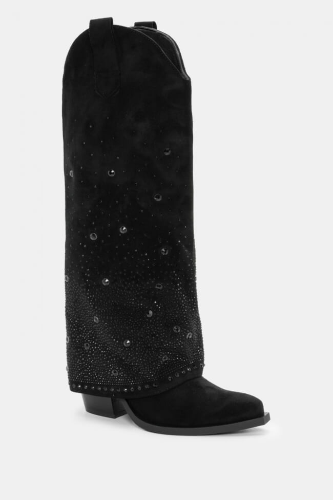 Каубойски ботуши с ефект на сгъваща се фаска и страсове